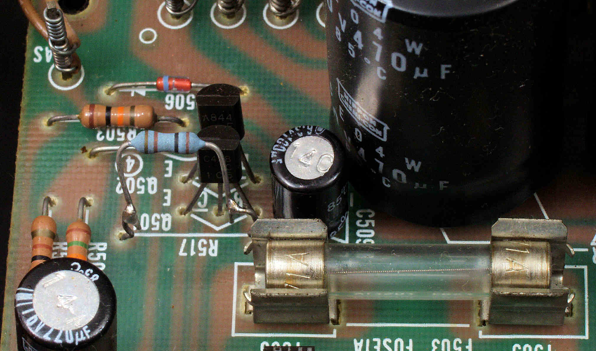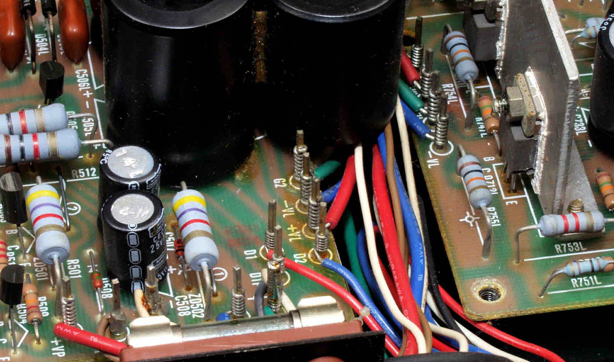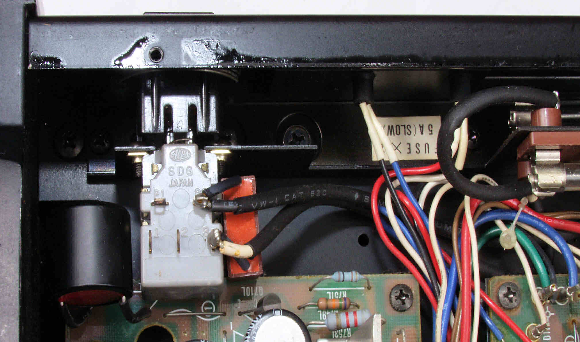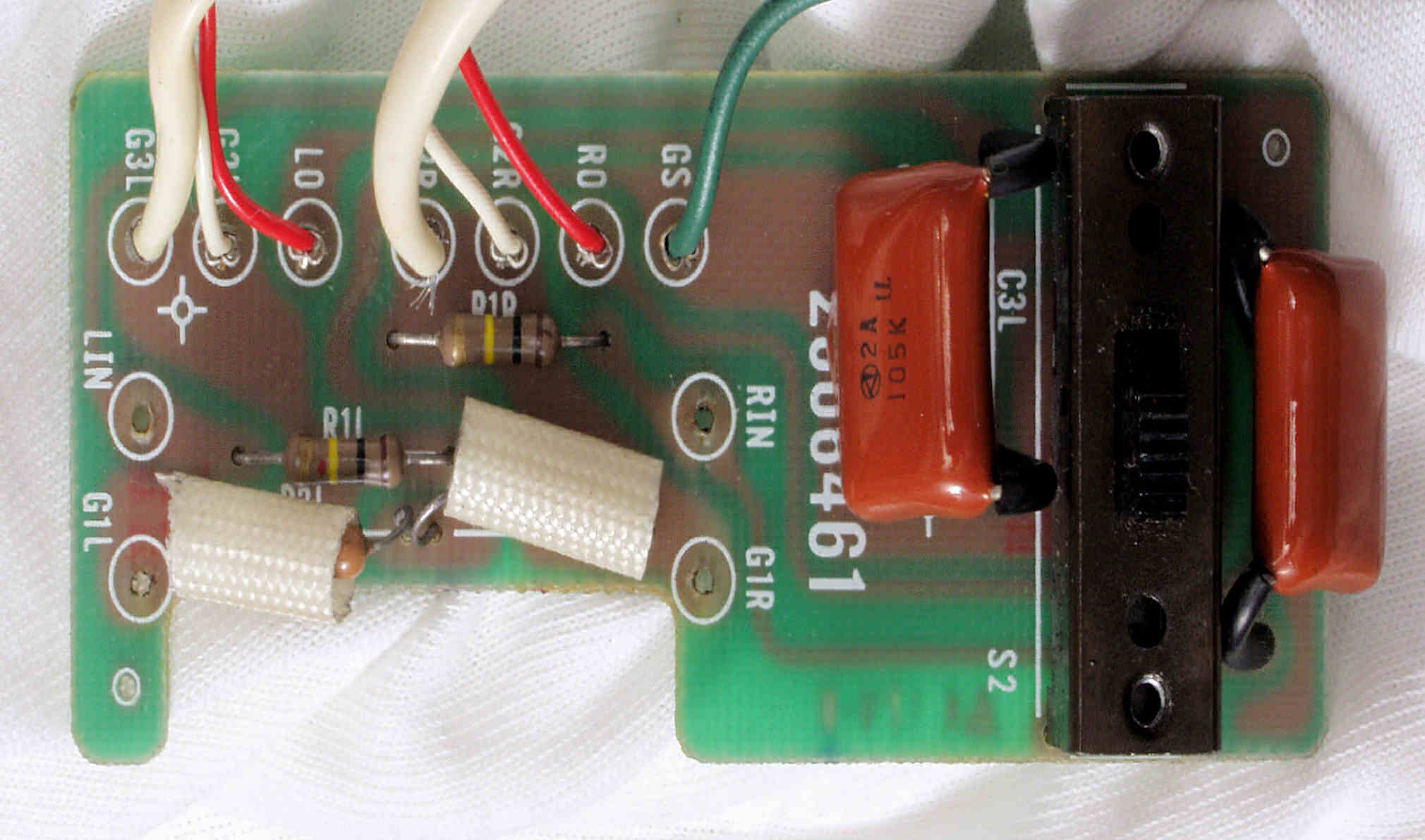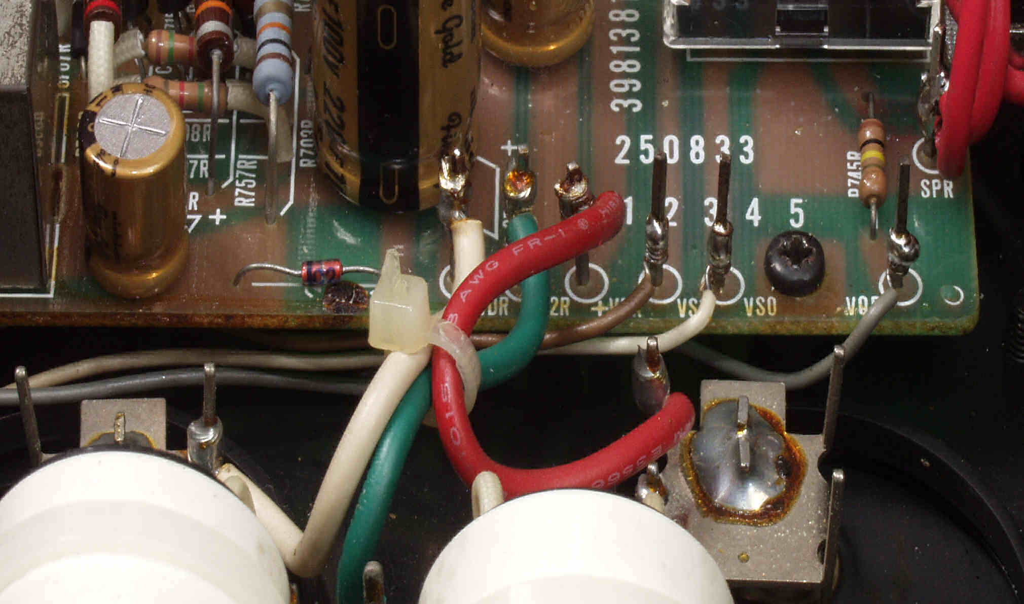 | C6E. 修理前 RCA端子基板裏、フイルムコンデンサー2個交換 |
