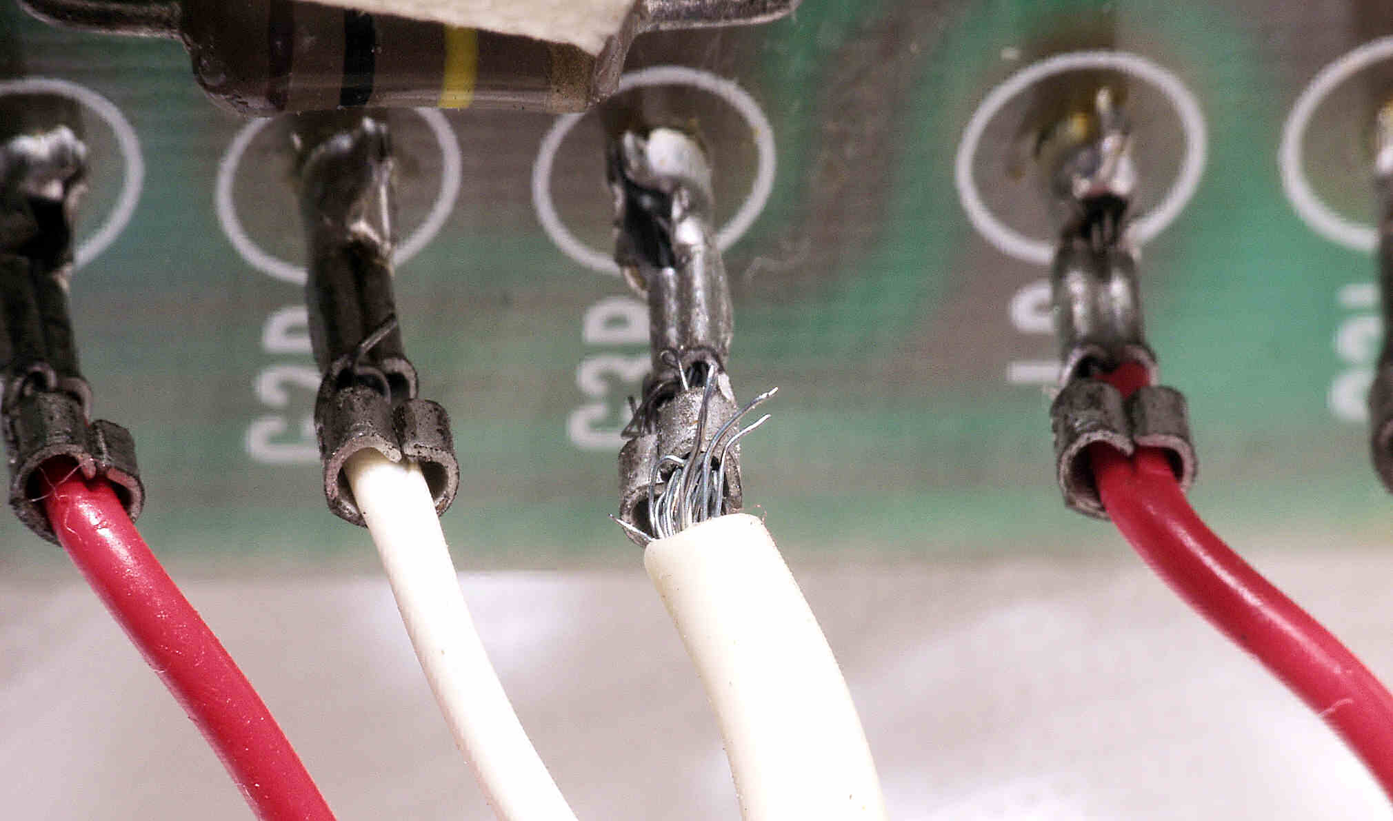 | CAE. 修理前 R側ドライブ基板−電源基板へのラッピング線 |