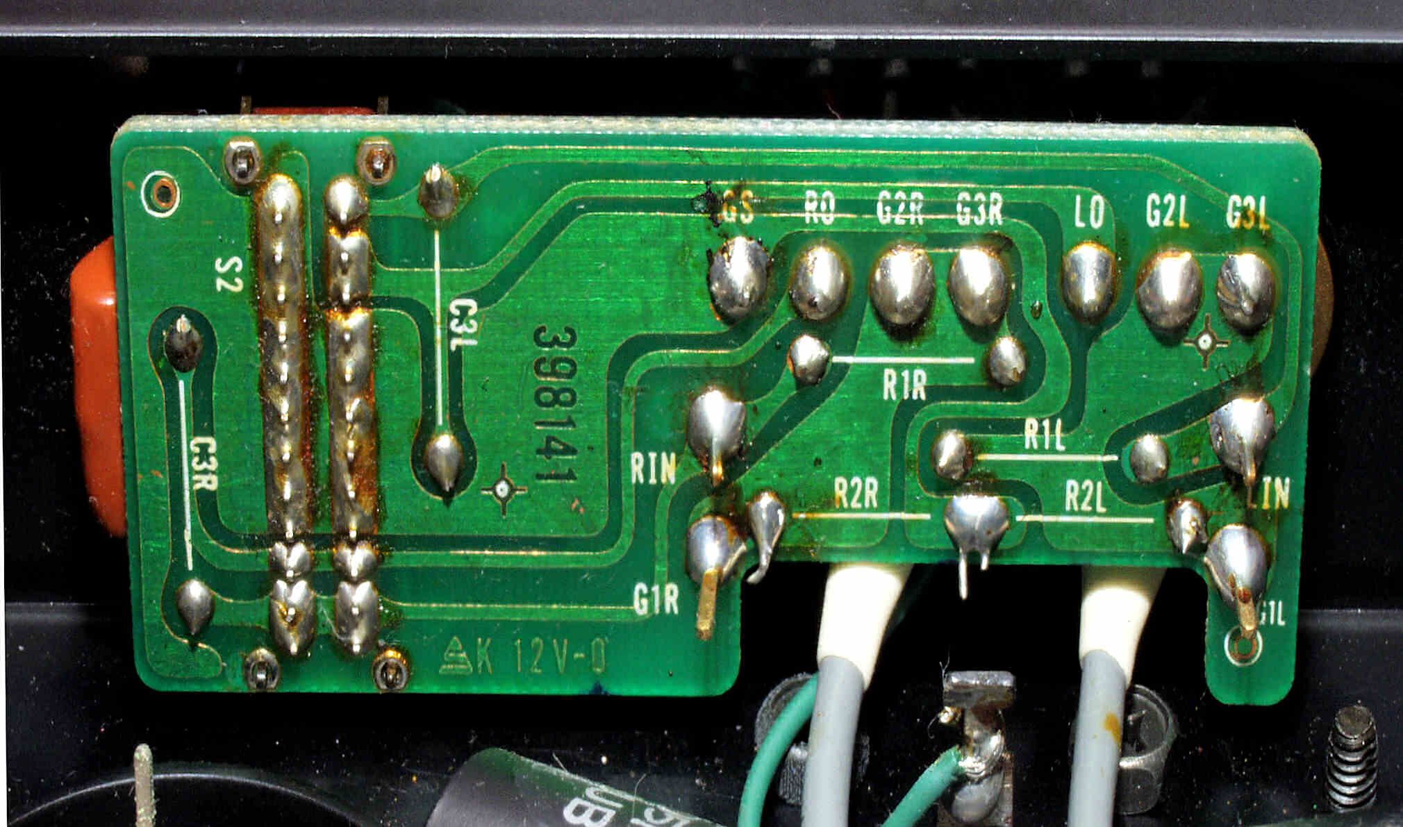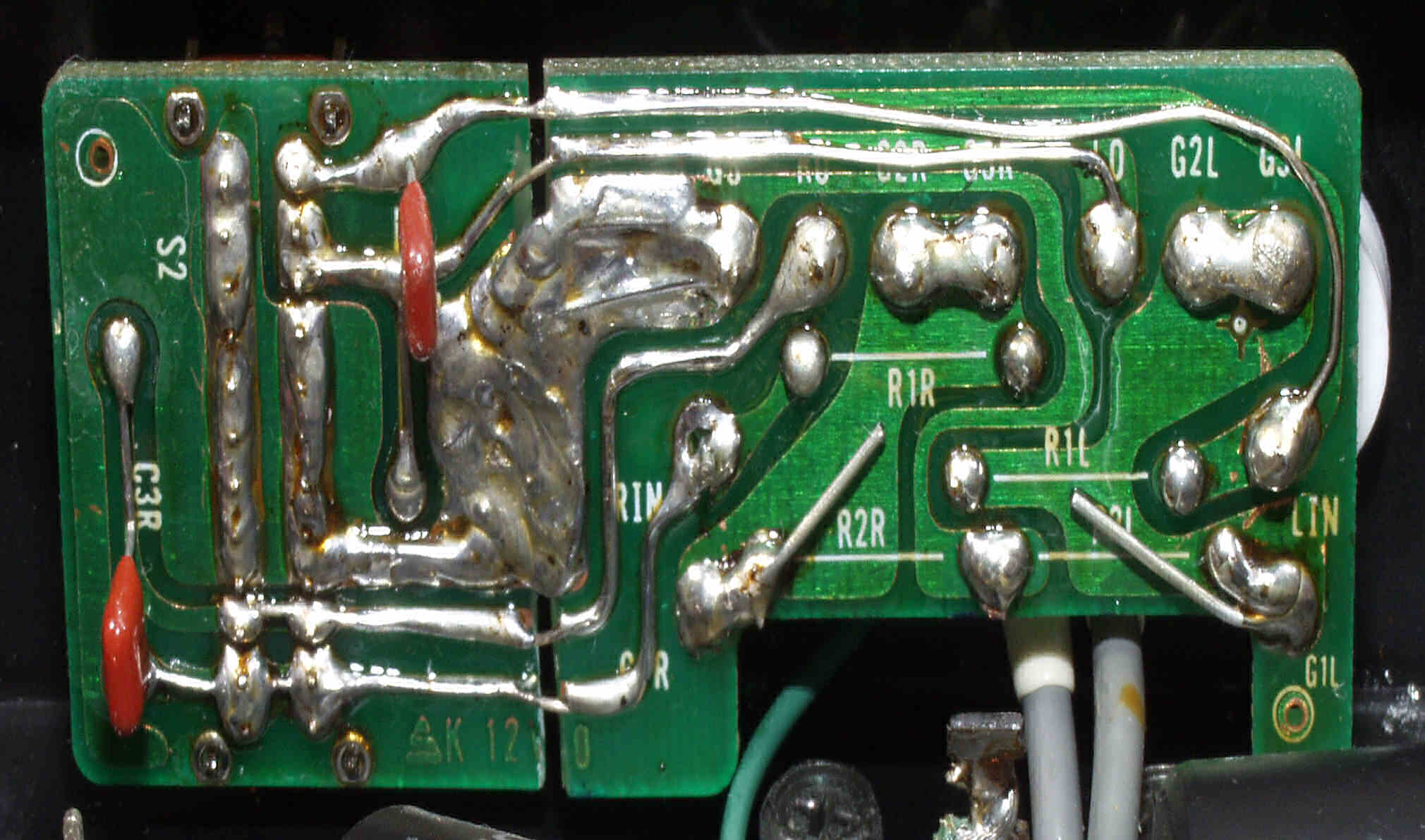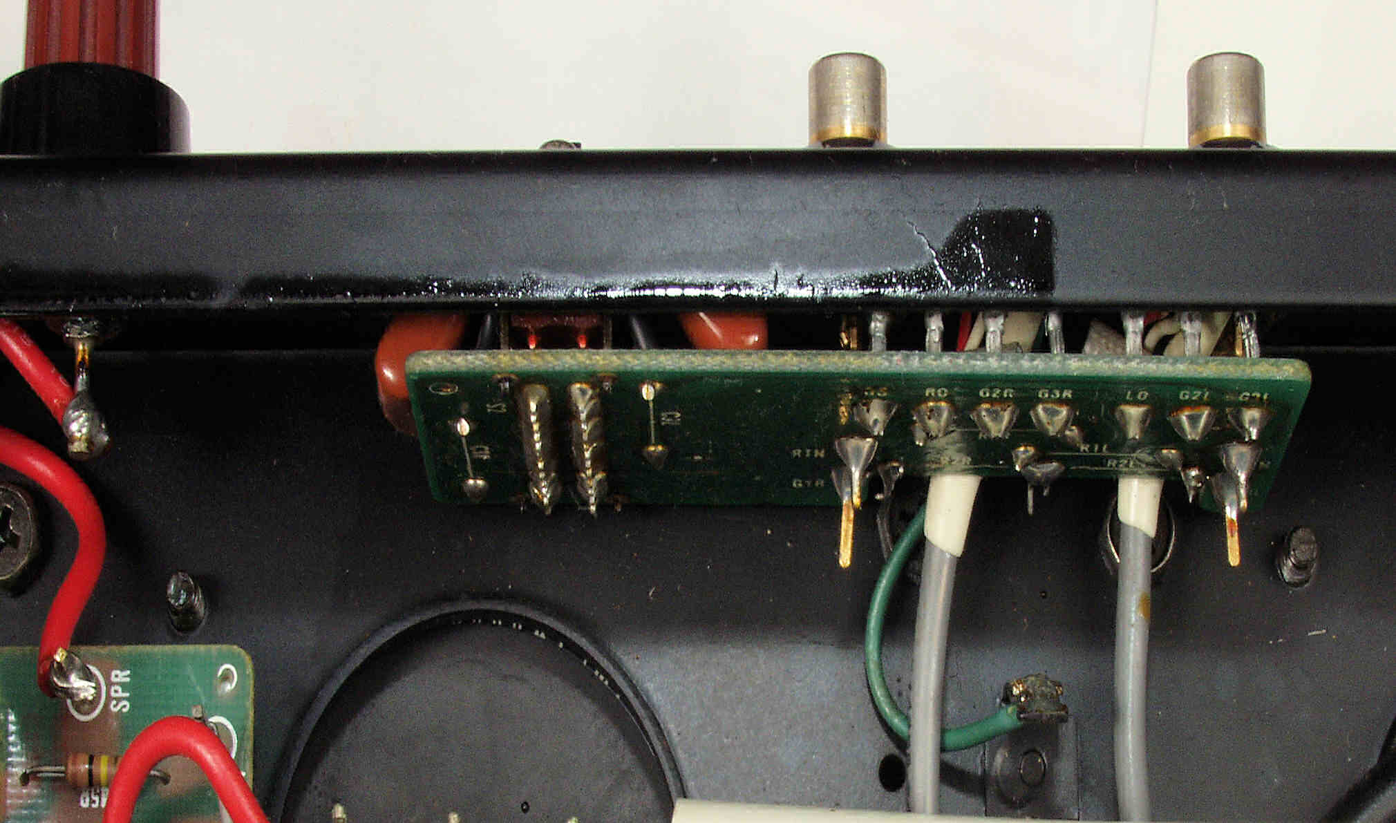 | A2B. 点検中 RCA端子付近の接点復活材の跡、多分フイルターSWから流れ出た。 |