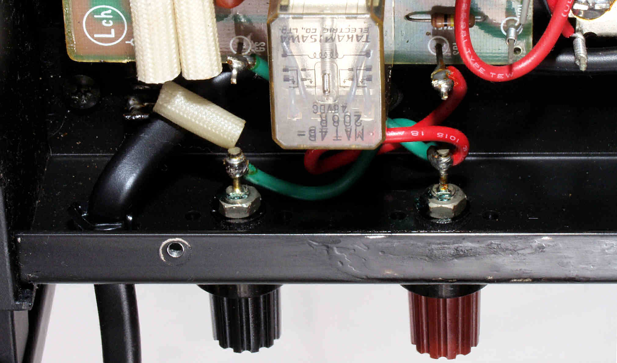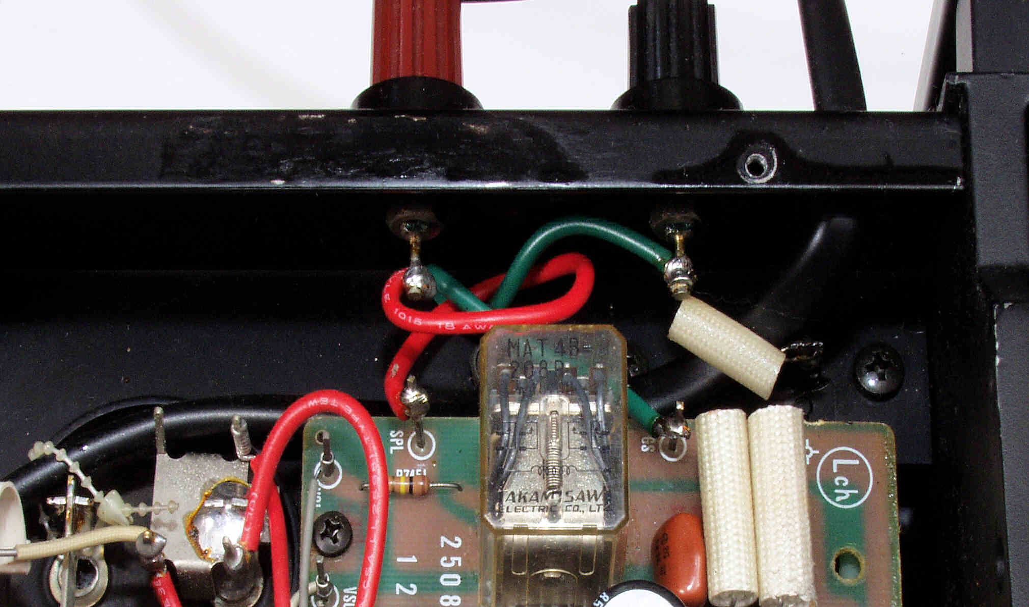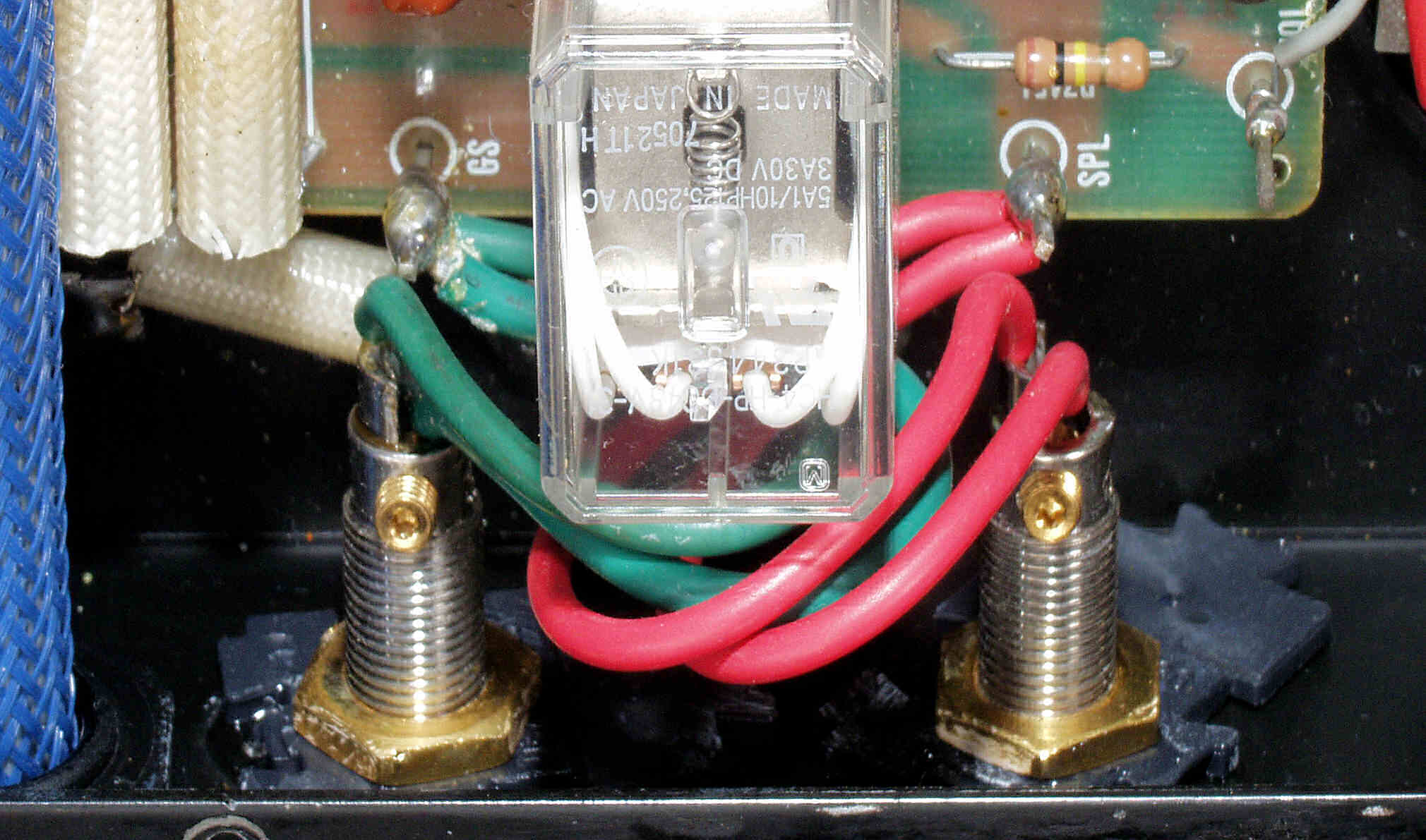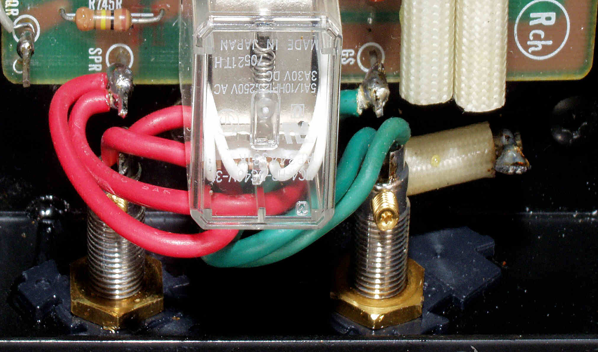 | A5. 点検中 L側ドライブ基板裏、SP接続リレーの半田、もう少し半田のノリが欲しい |