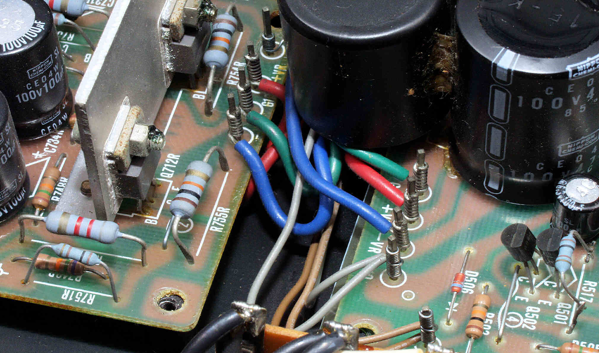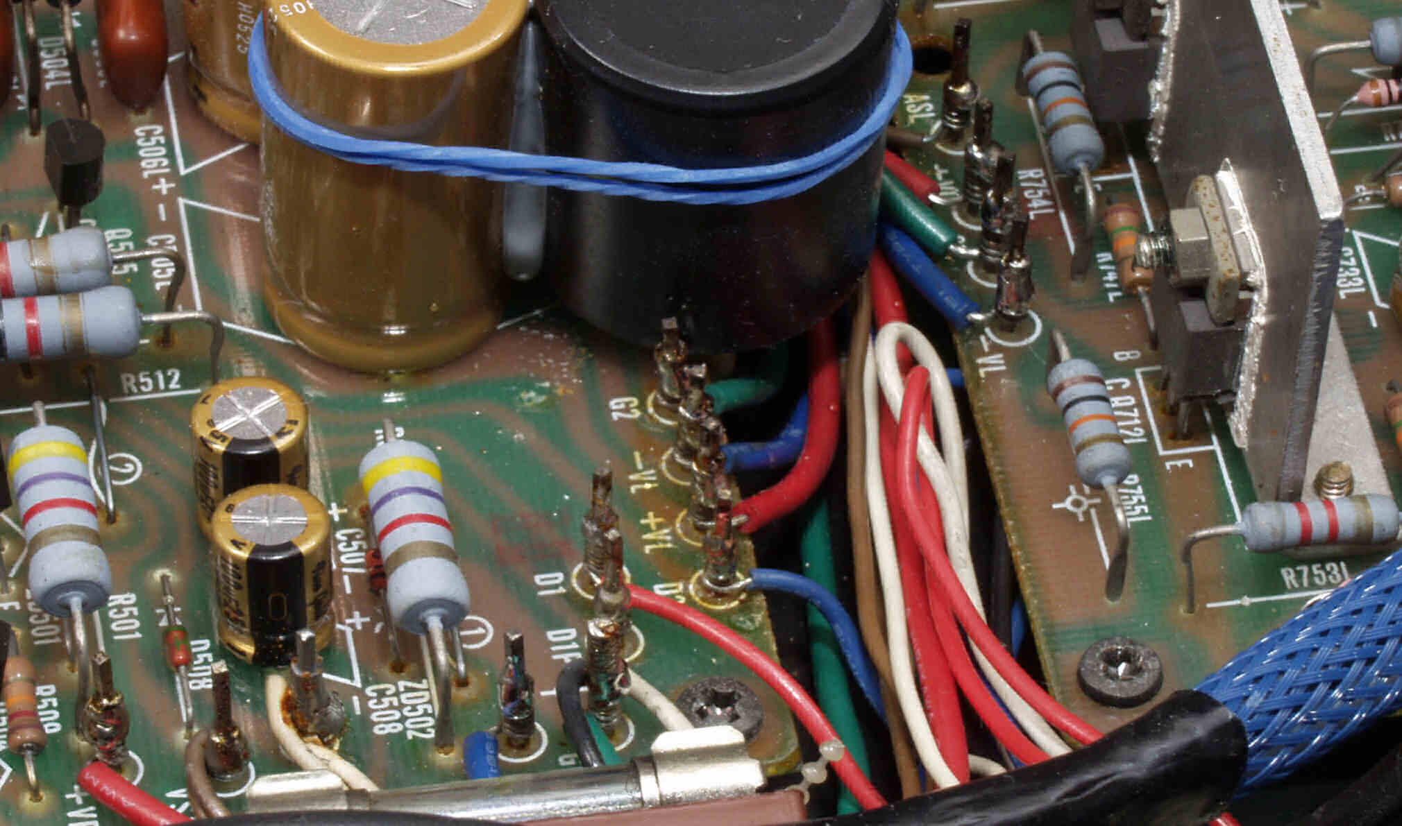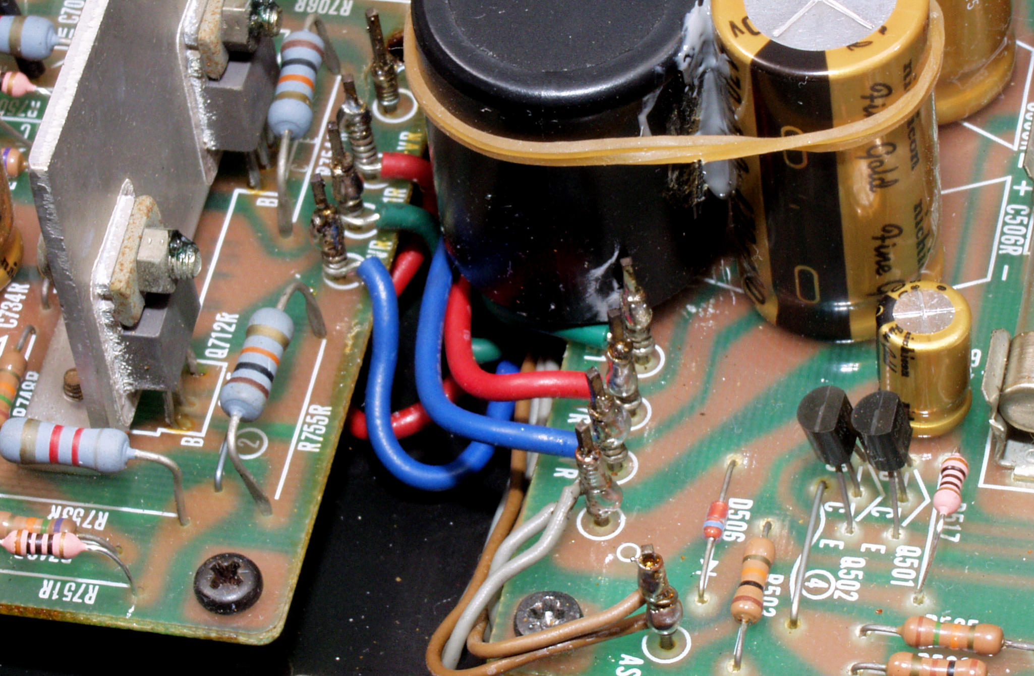 | CAF. 修理後 R側ドライブ基板−電源基板へのラッピング線に半田を浸み込ませる |