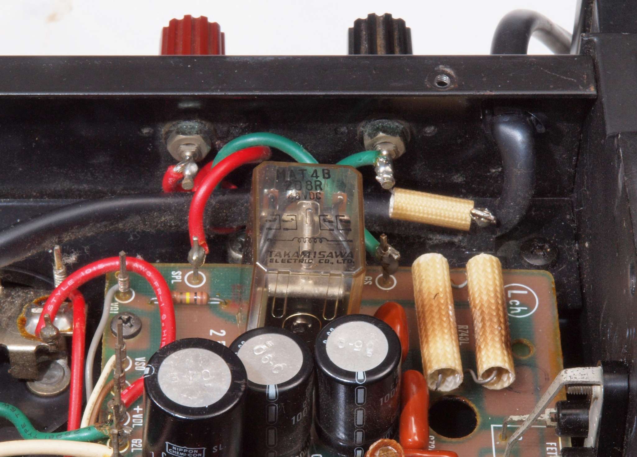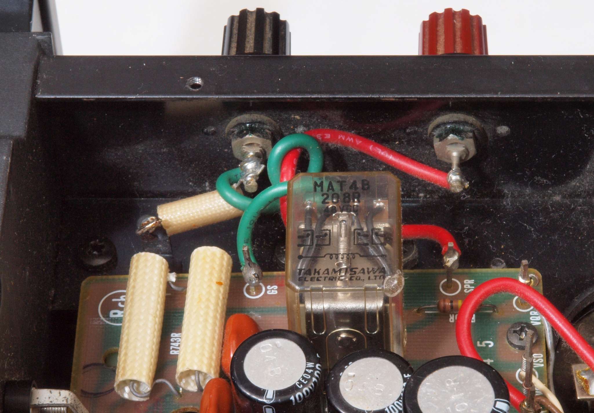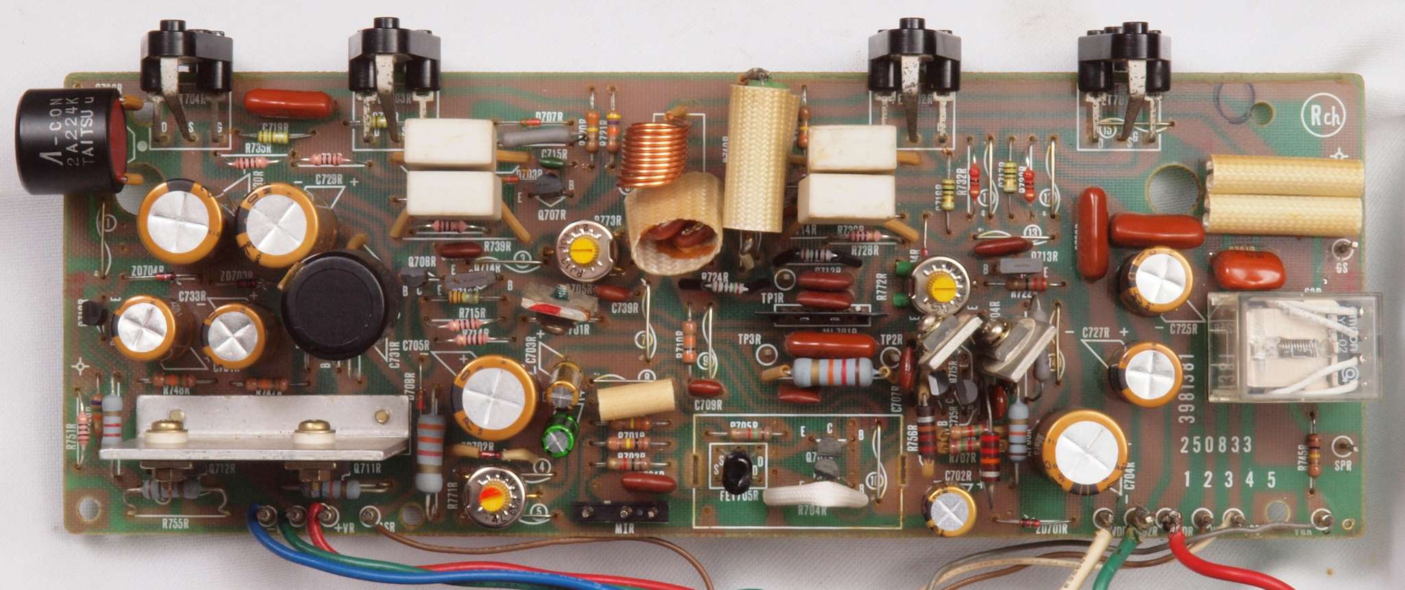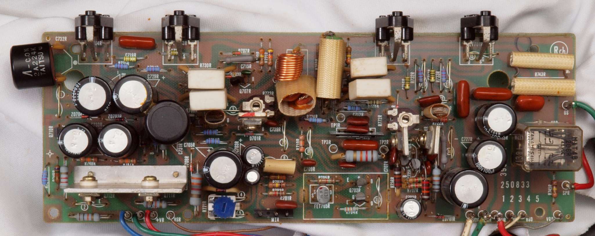 ヒューズ入り抵抗全部、電解コンデンサー11個、足黒TR(トランジスター)1個交換。