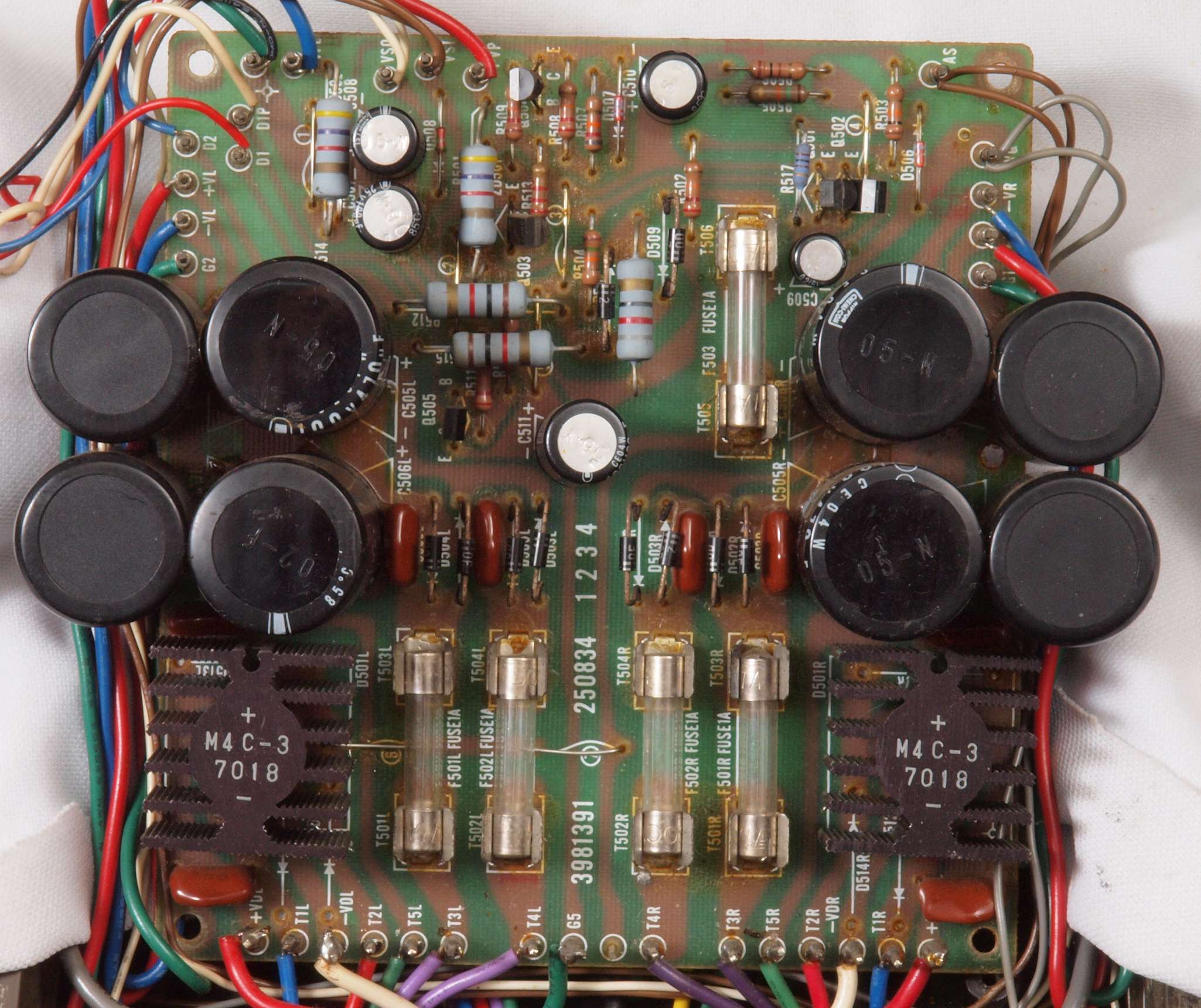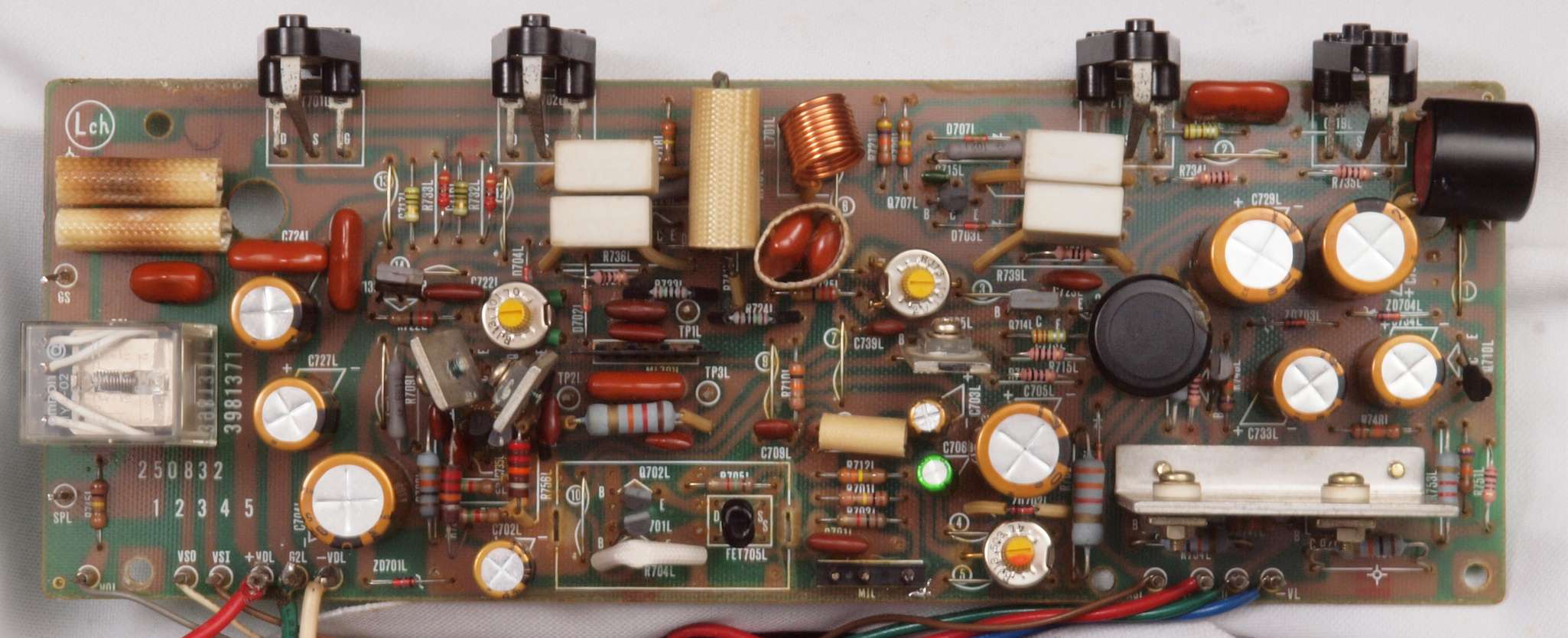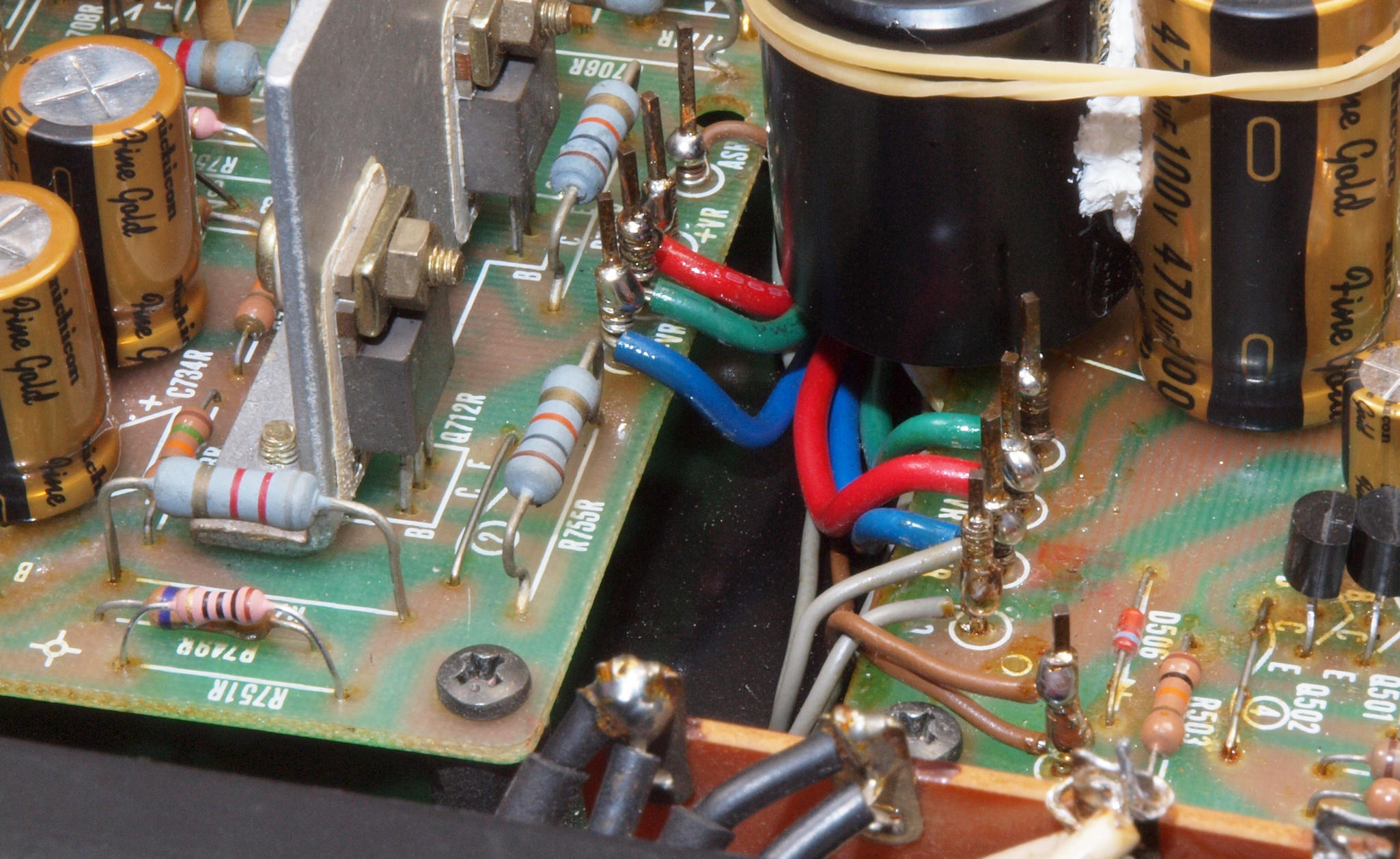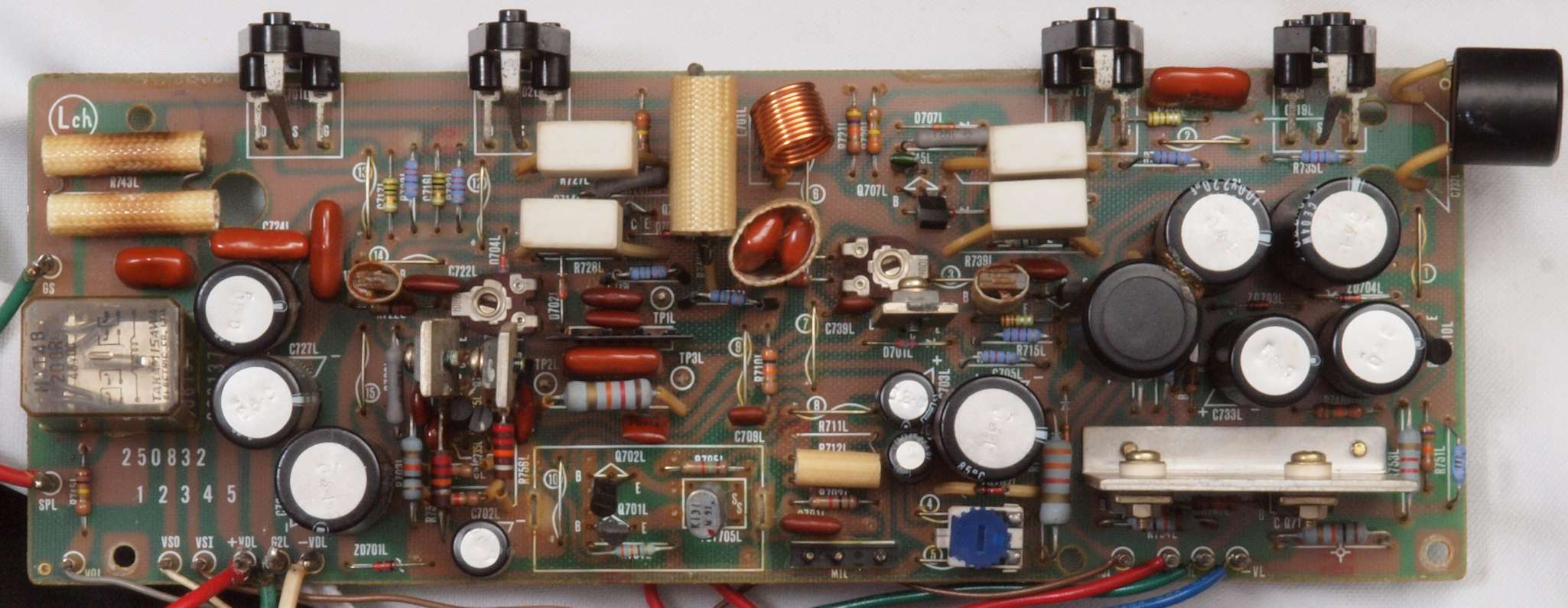 ヒューズ入り抵抗全部、電解コンデンサー11個、足黒TR(トランジスター)1個交換。