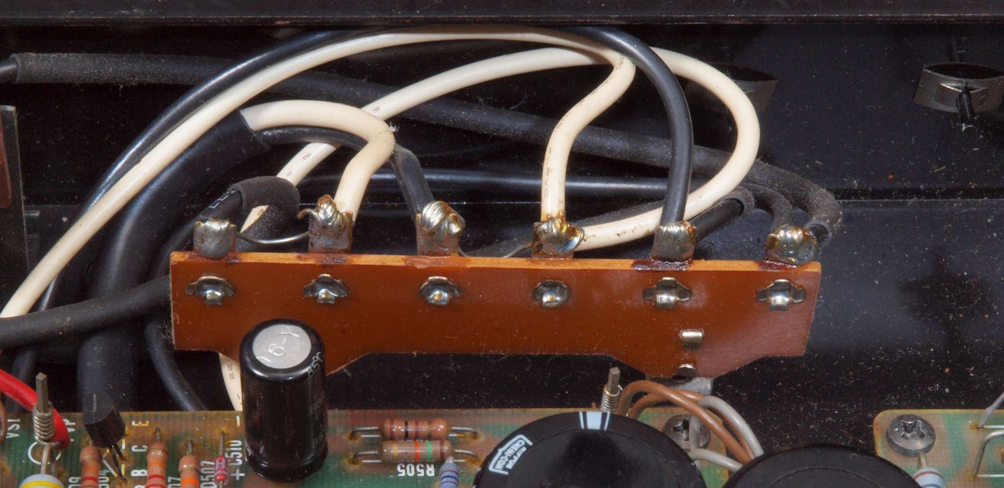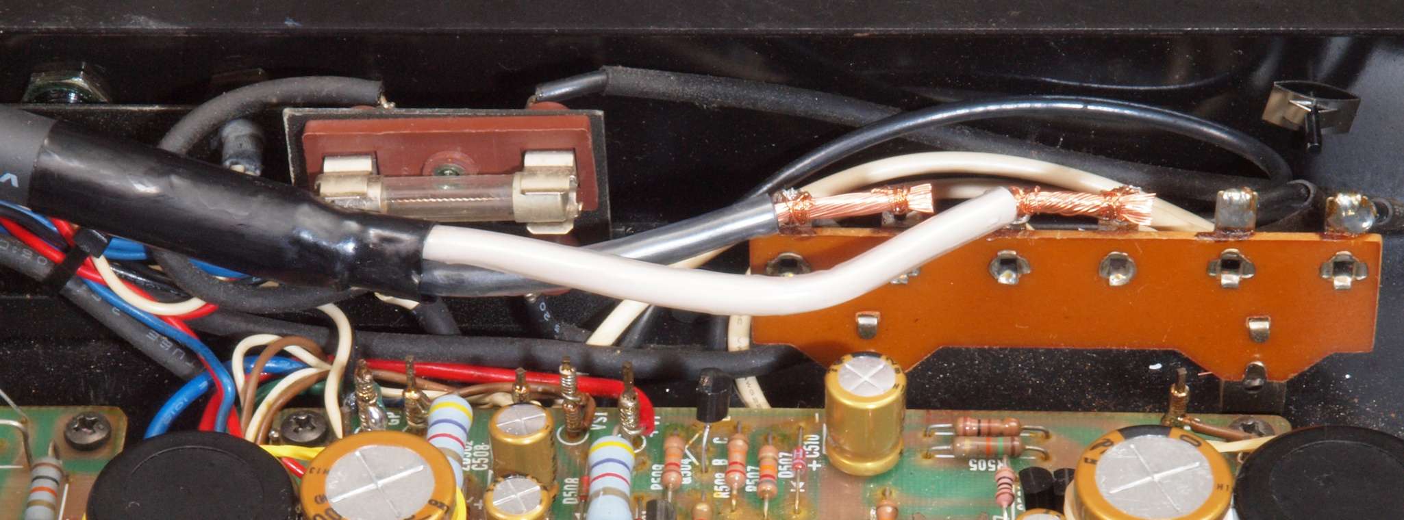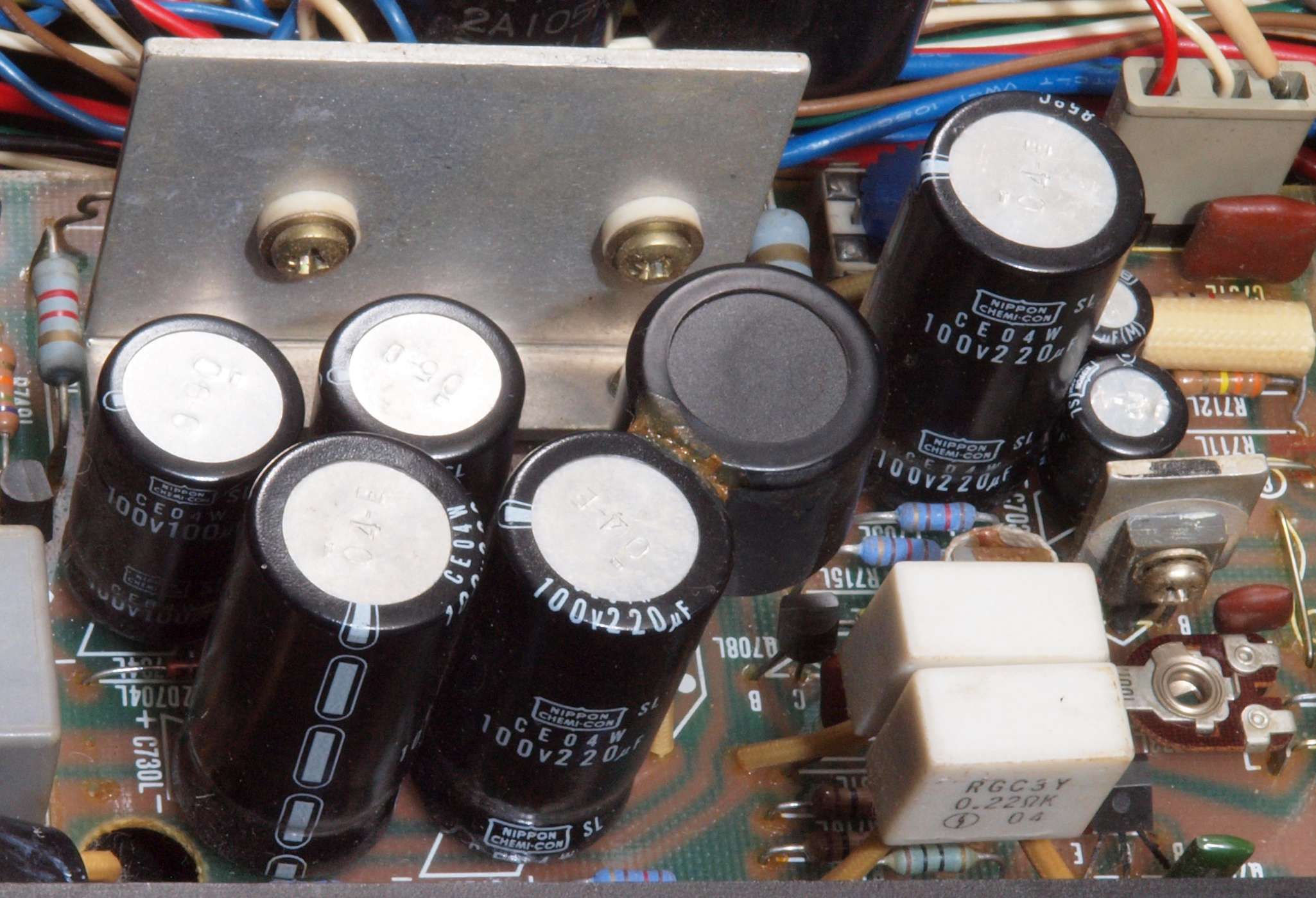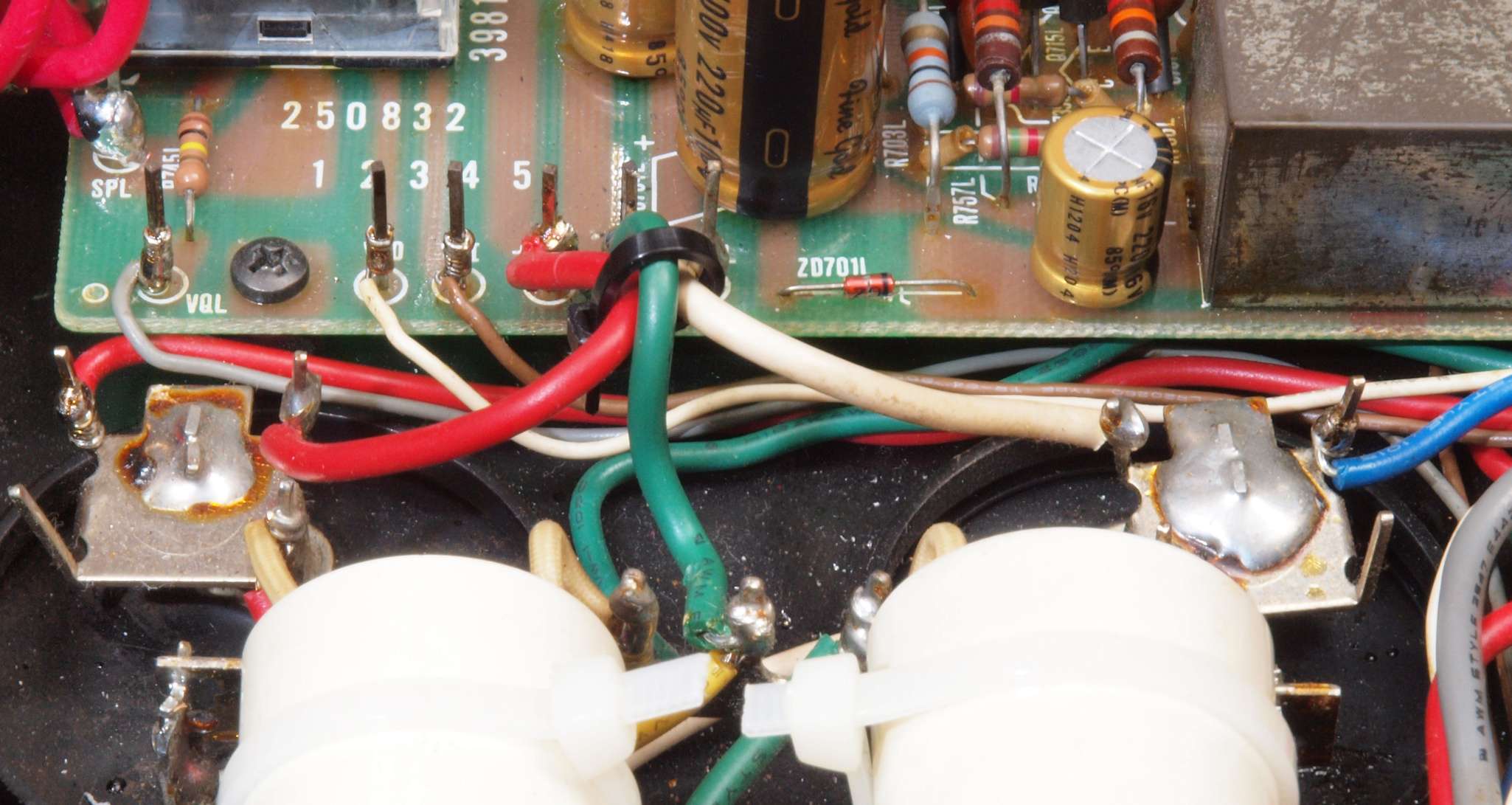 ヒューズ入り抵抗全部、電解コンデンサー11個、足黒TR(トランジスター)1個交換。