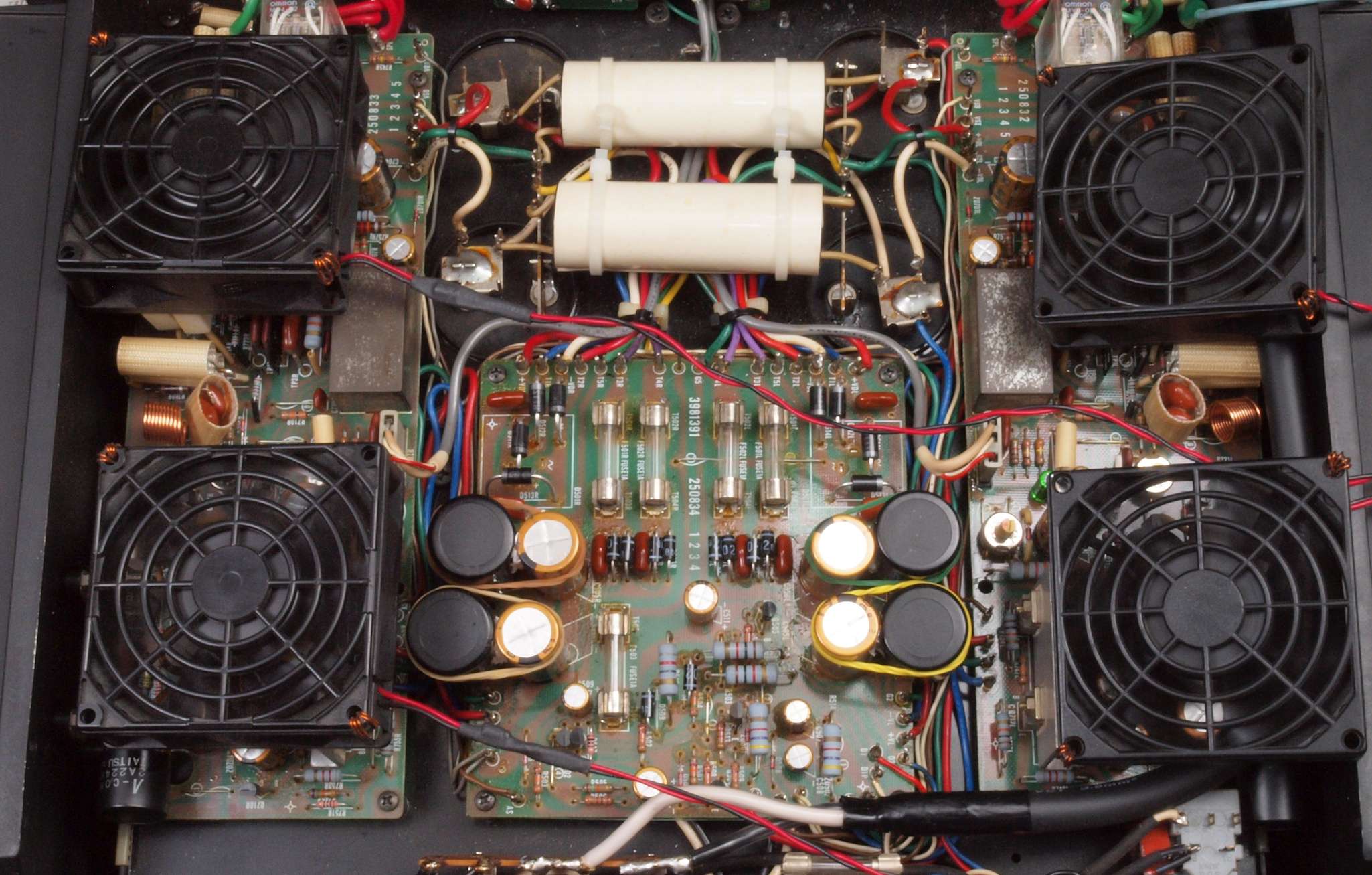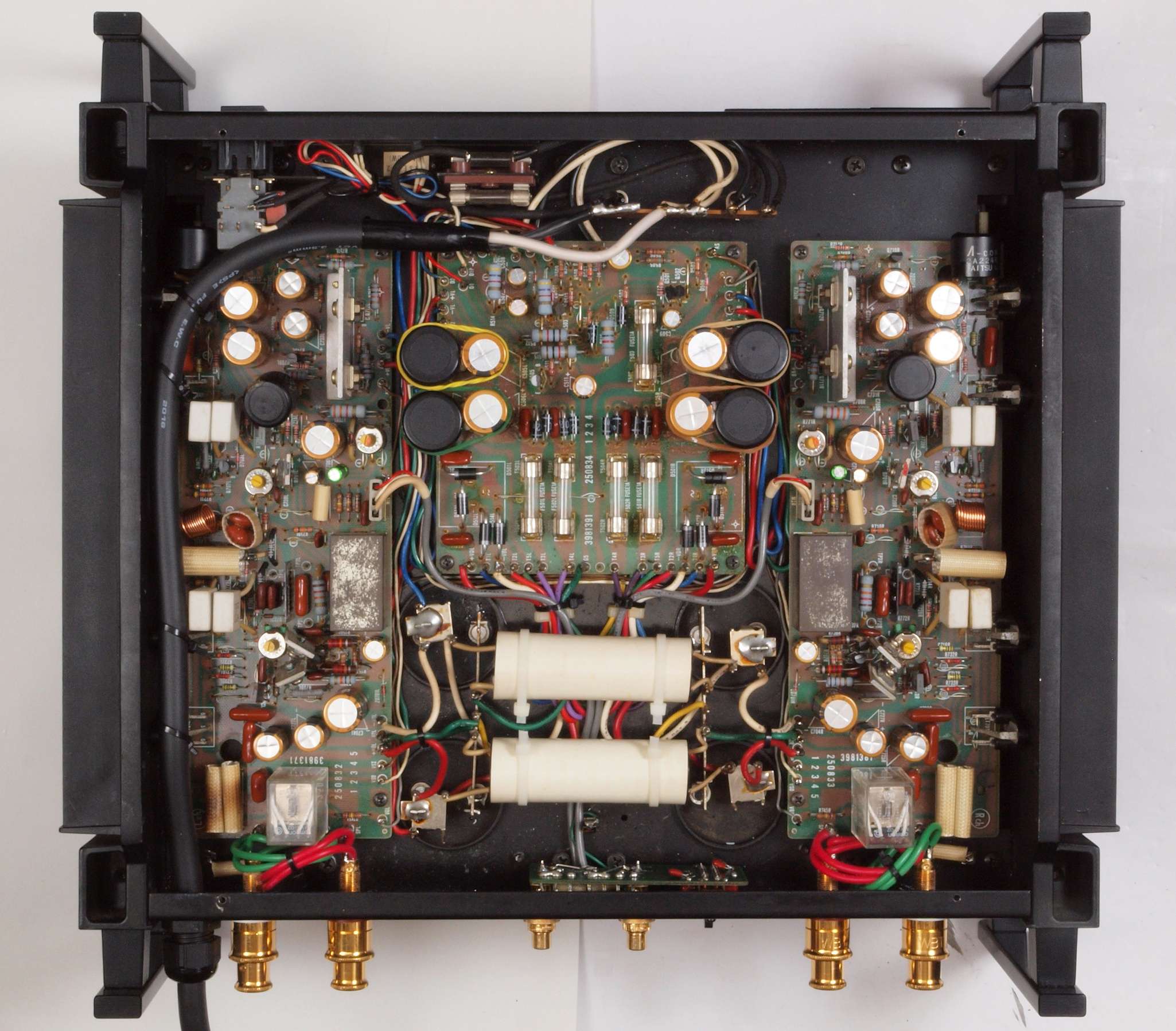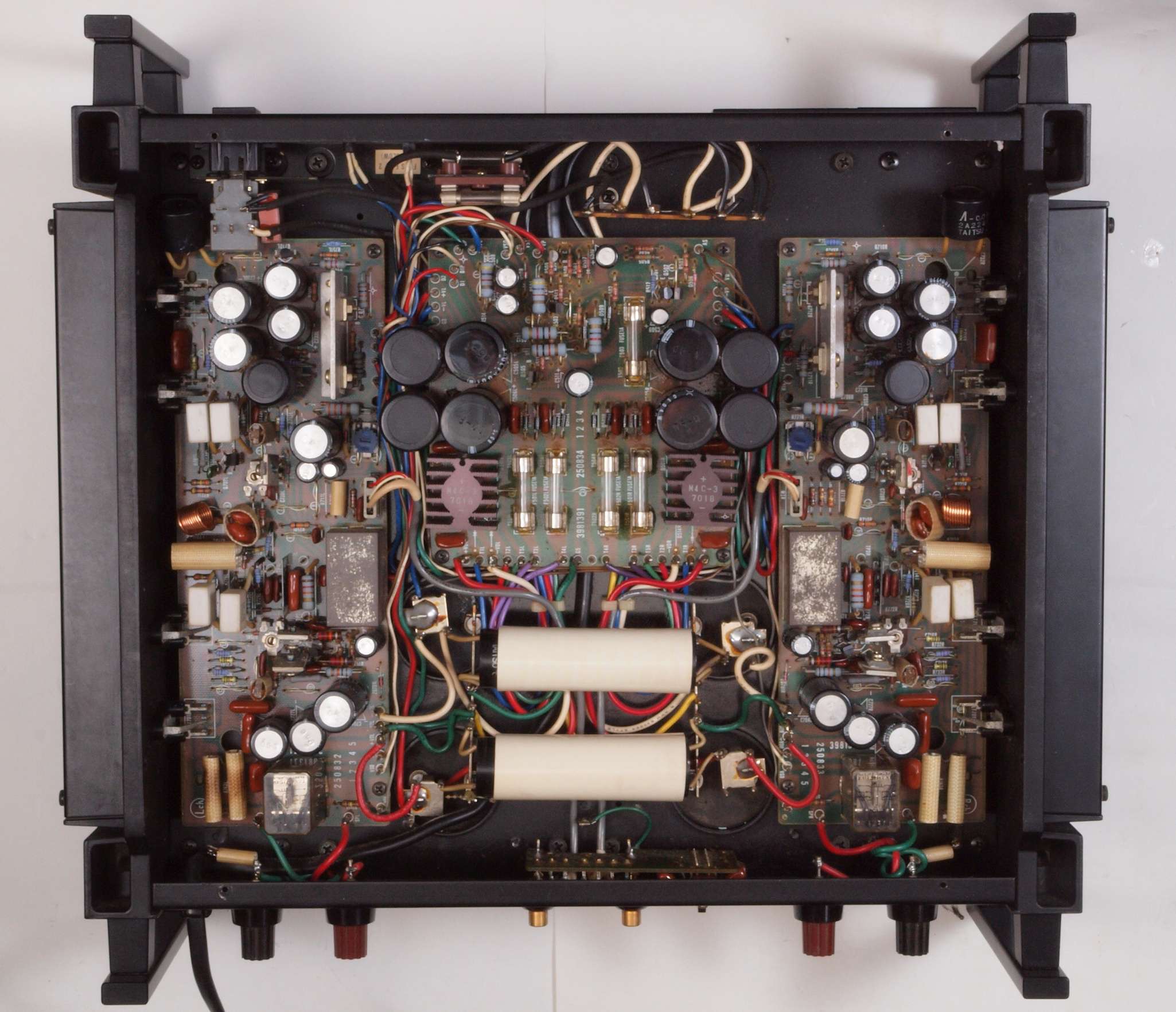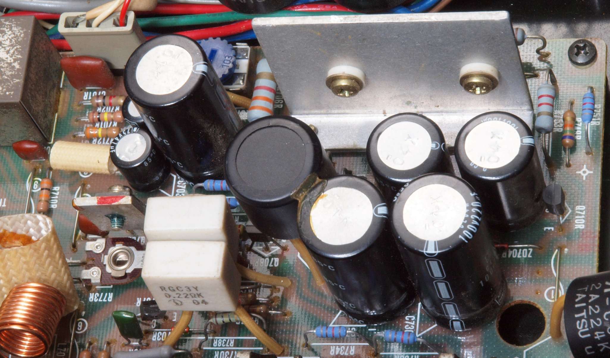 ヒューズ入り抵抗全部、電解コンデンサー11個、足黒TR(トランジスター)1個交換。