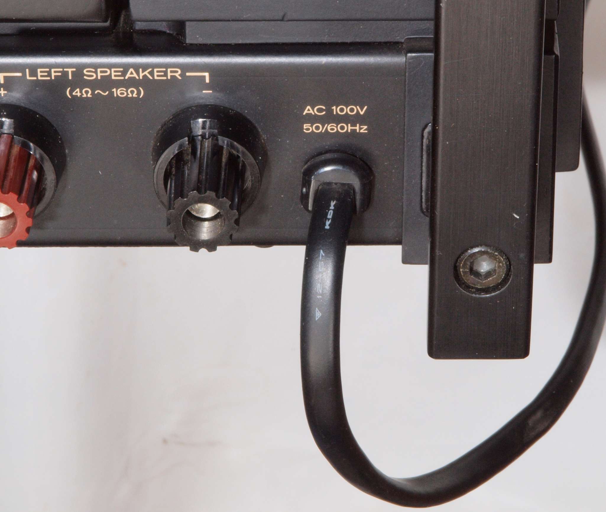 C9A. 修理中 3Pプラグにケーブル取り付。差し込み固定が一般ですが、時計方向に巻き付けると良い、反対側。