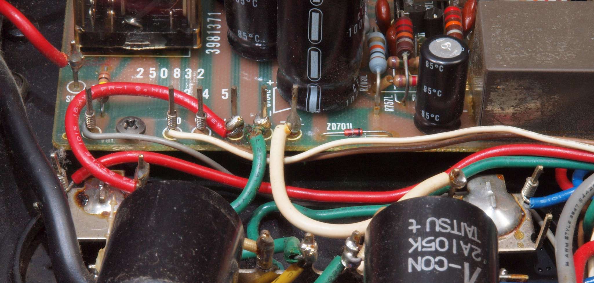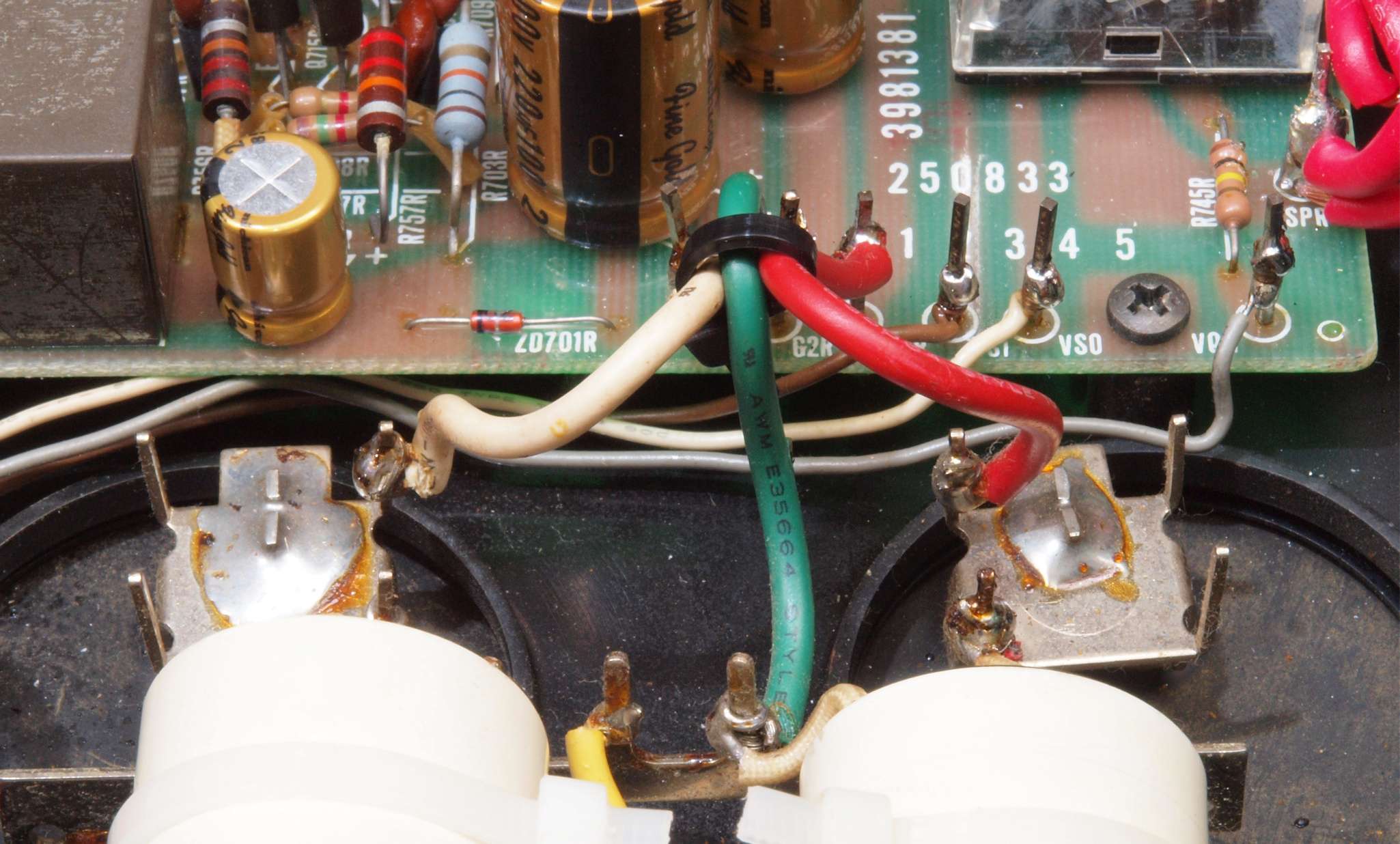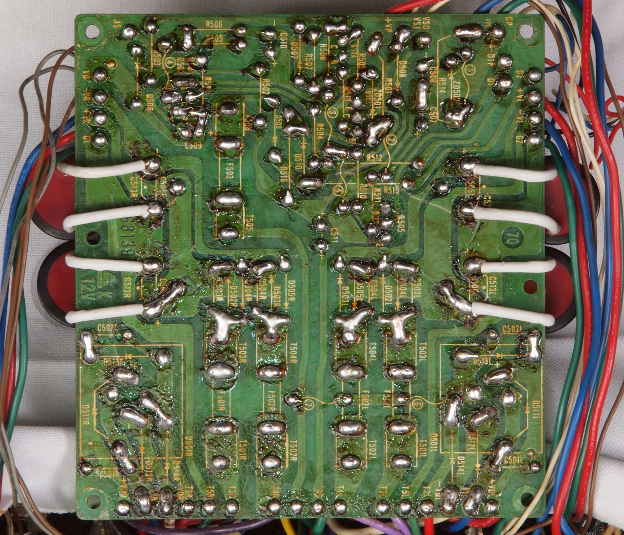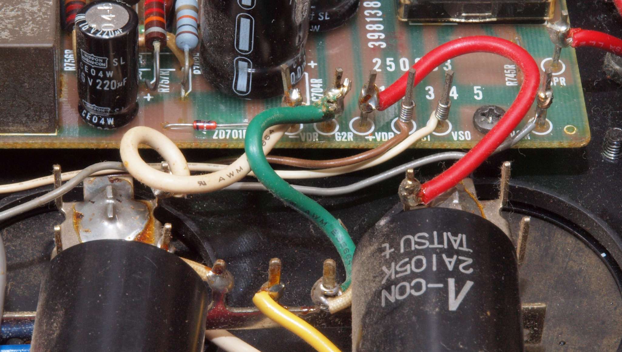 CA5. 修理前 R側ドライブ基板−電源基板へのラッピング線