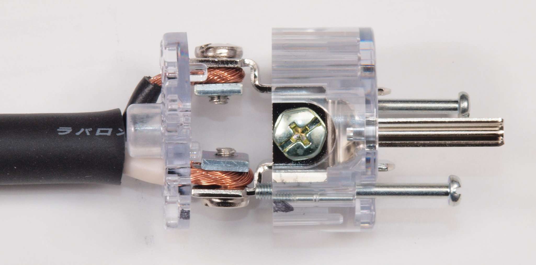 C9D. 完成 3Pプラグにケーブル取り付。 奥までしっかり芯線が入っている。