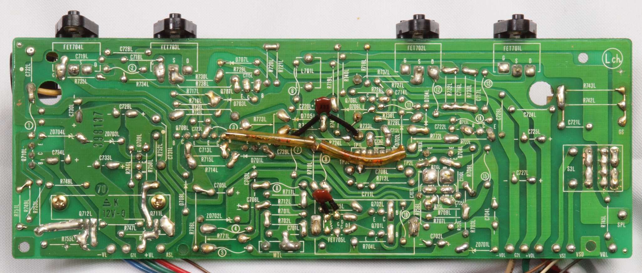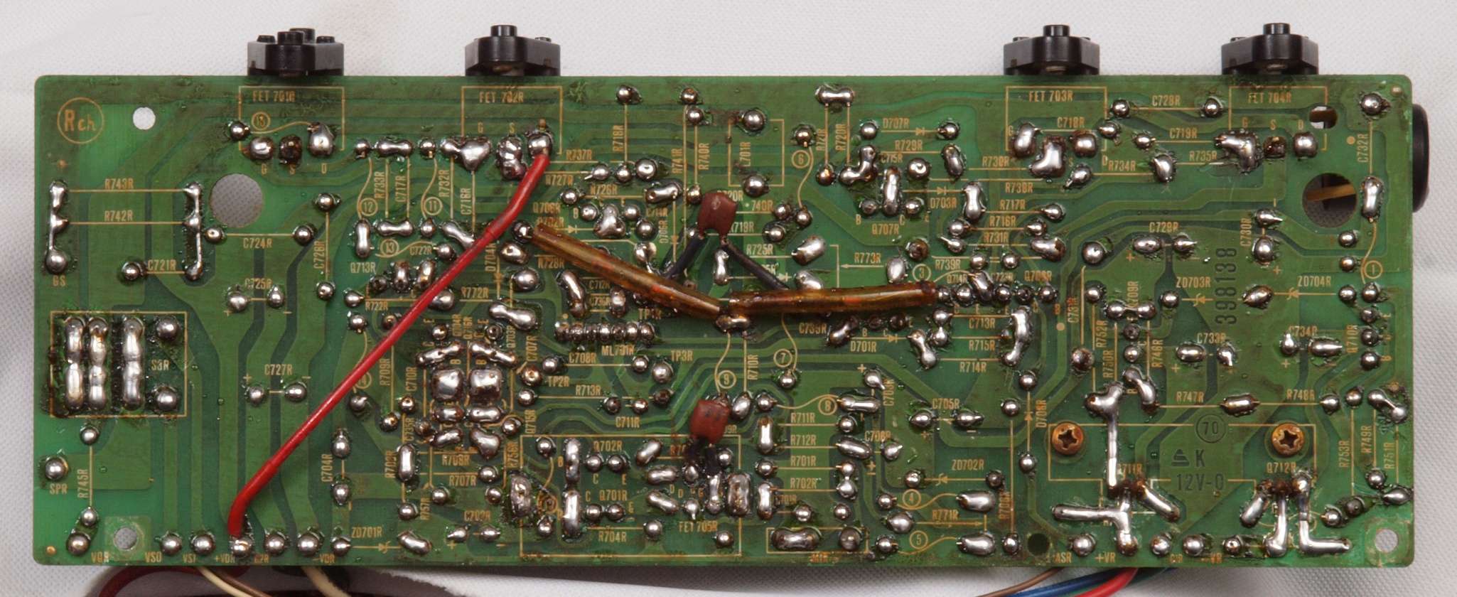 C15. 修理(半田補正)後 R側ドライブ基板裏 半田を全部やり直す。 普通はこれで完成。