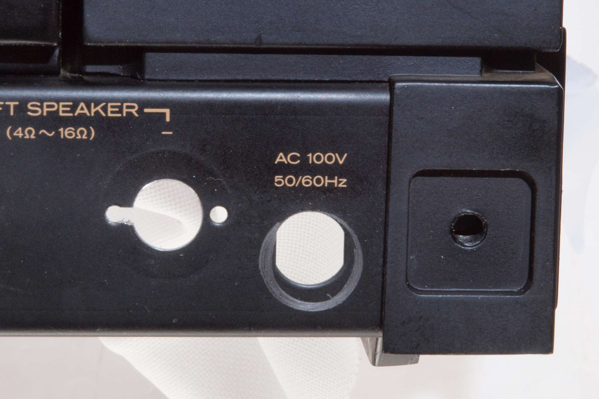 C92. 修理中 電源ケーブル取り付け部穴加工前。