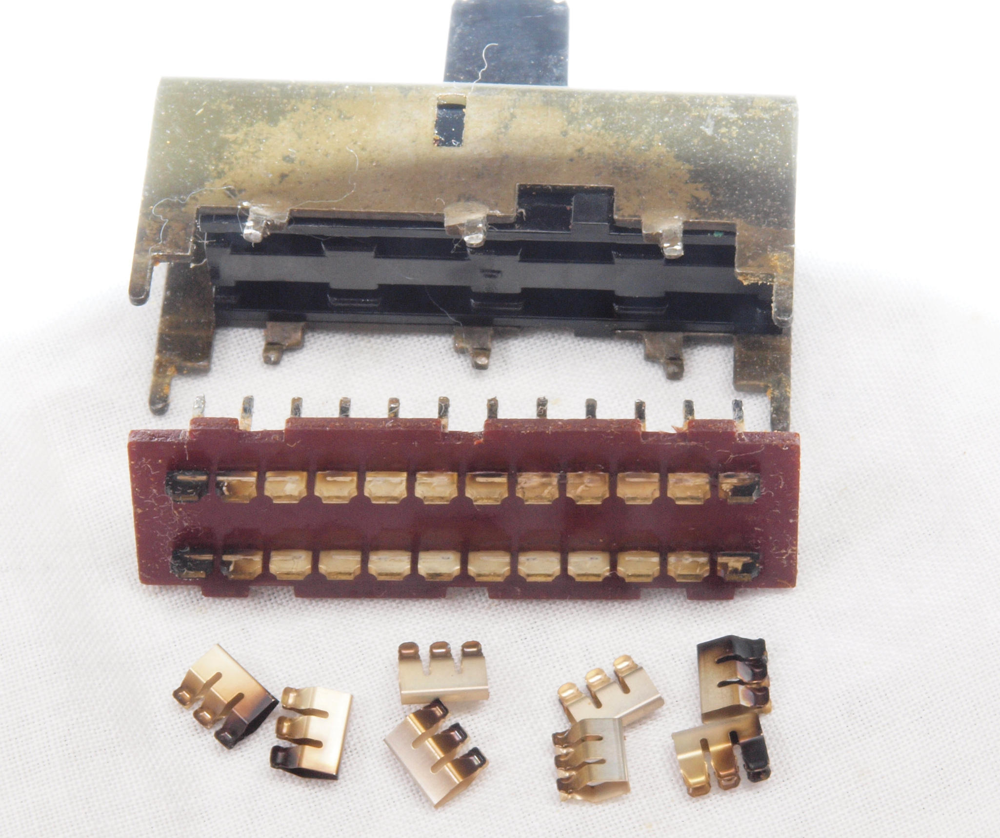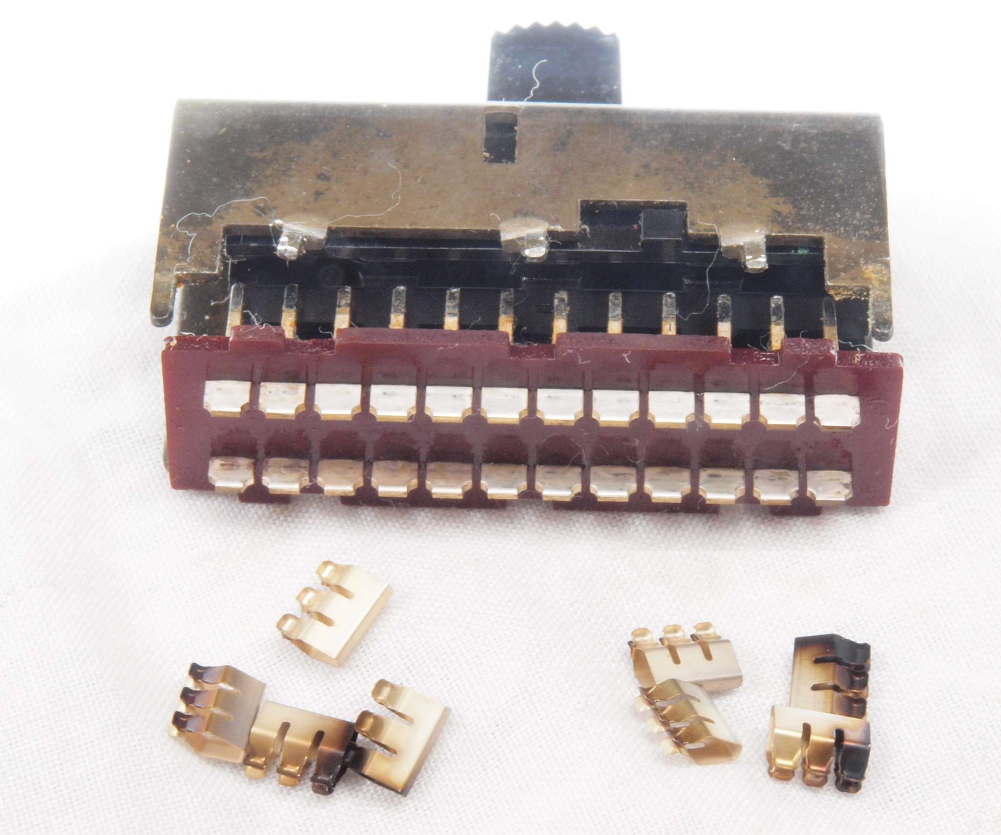 使用するのは端の1回路のみ、内側の綺麗な接触子と交換して組む。