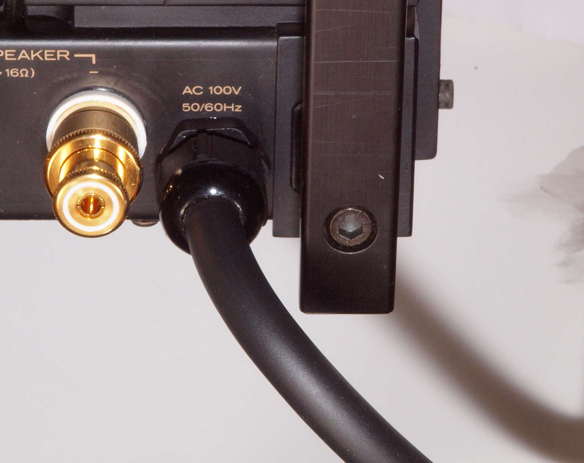 C99. 修理中 3Pプラグにケーブル取り付。 差し込み固定が一般ですが、時計方向に巻き付けると良い。