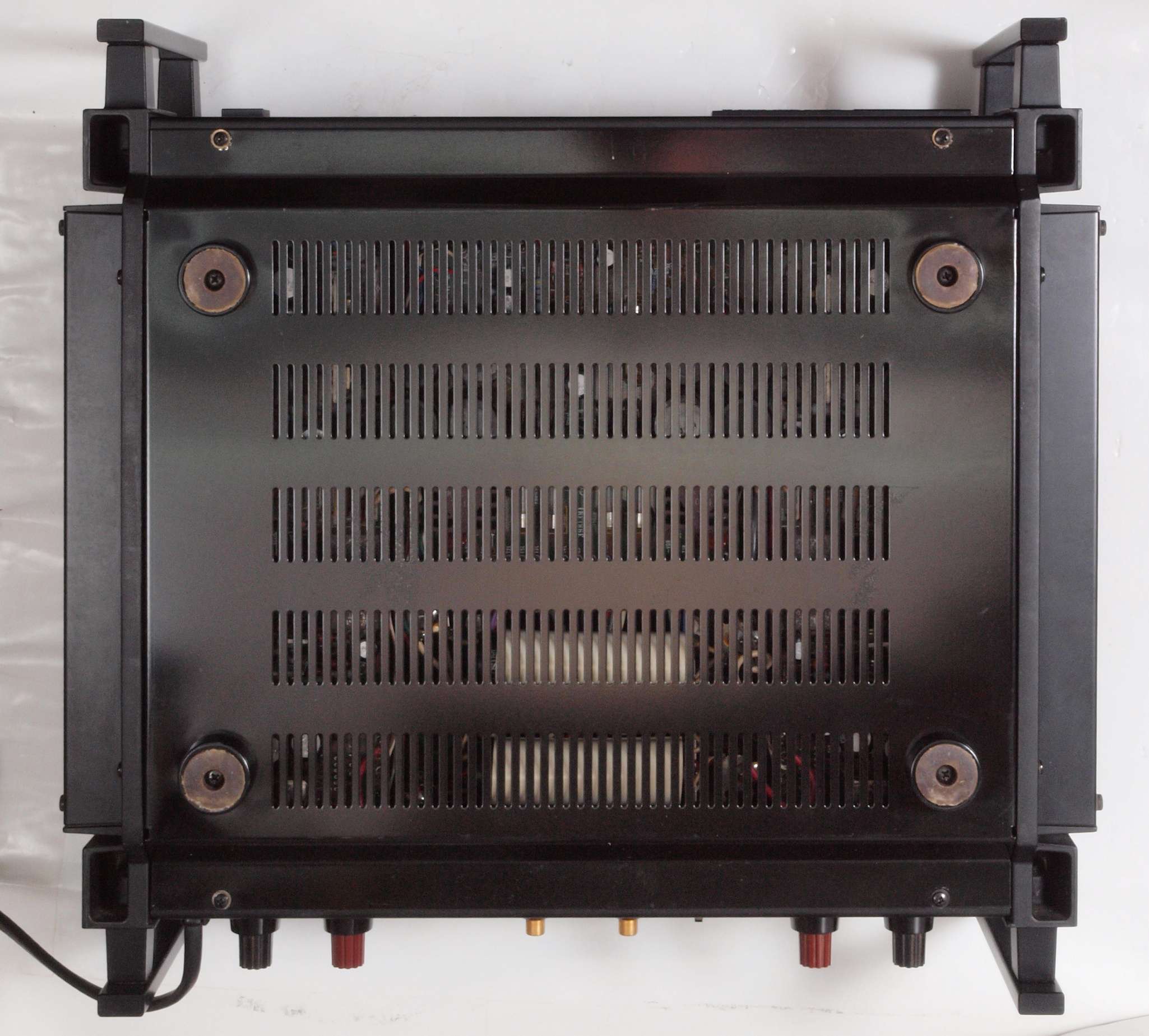 AMPのシャーシにSPの線(アース側)やプリAMPのアースもも接続してはいけません。