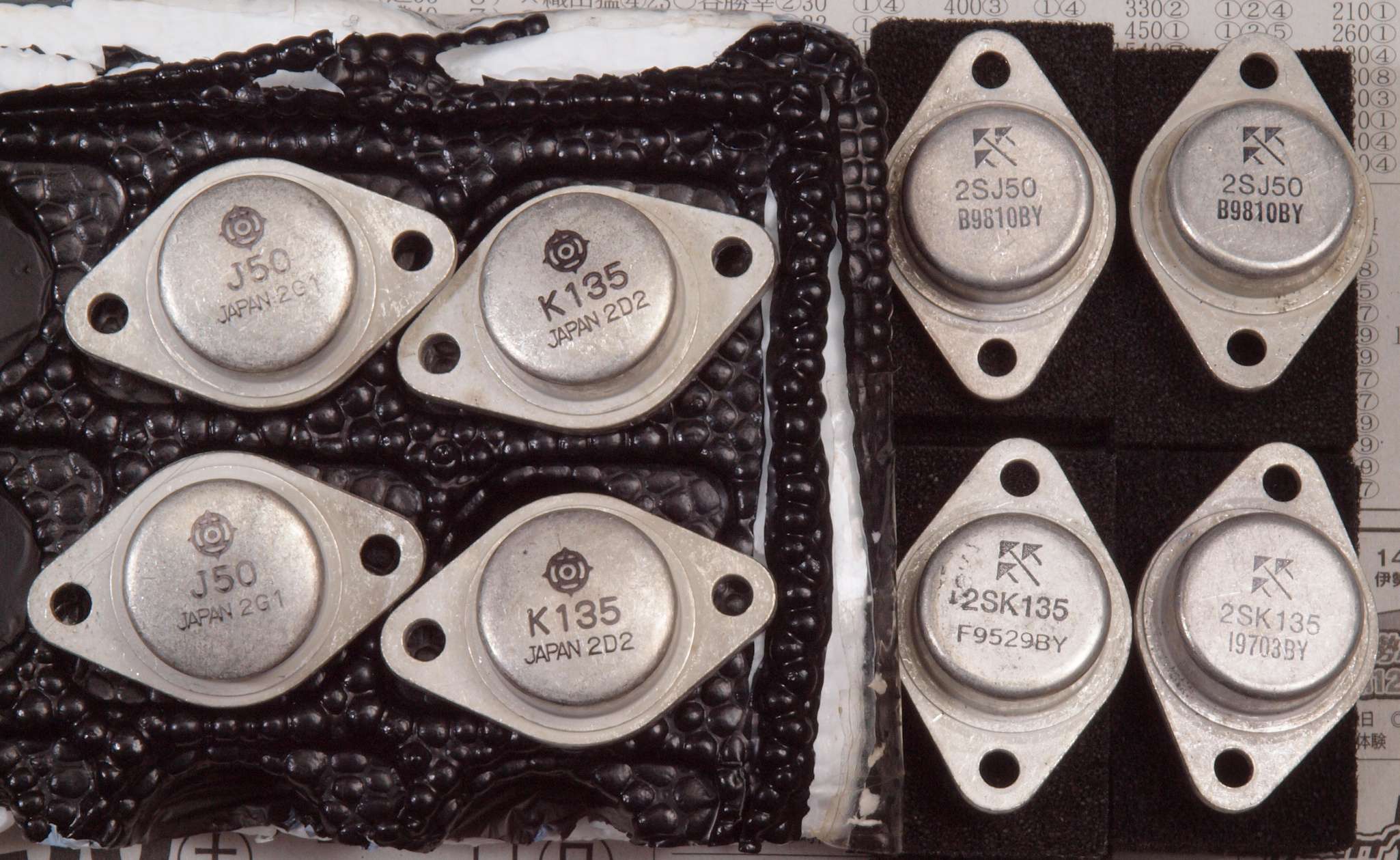 終段FET(電界効果トランジスター)の2SK135/2SJ50については、手持ちのものが4ペアほどございます。