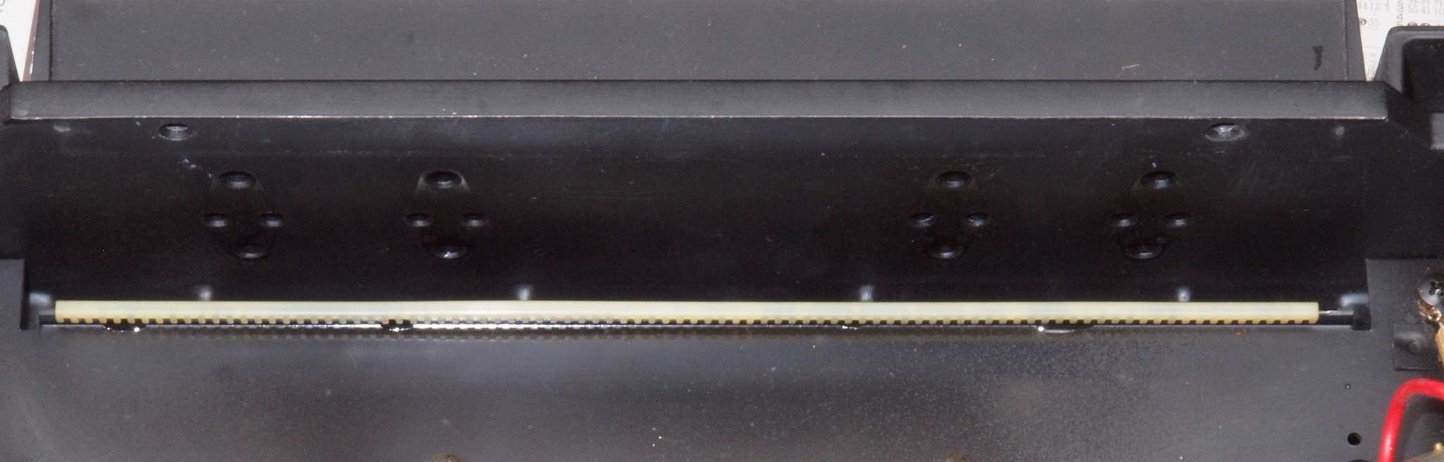 上の白線=巻き付いた端側、 下のK線=挿入した側。止めビスは未締結です。