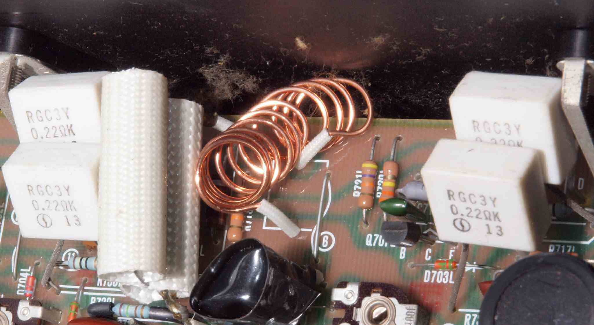 C31. 修理中 R側終段FET(電界効果トランジスター)周りの埃。