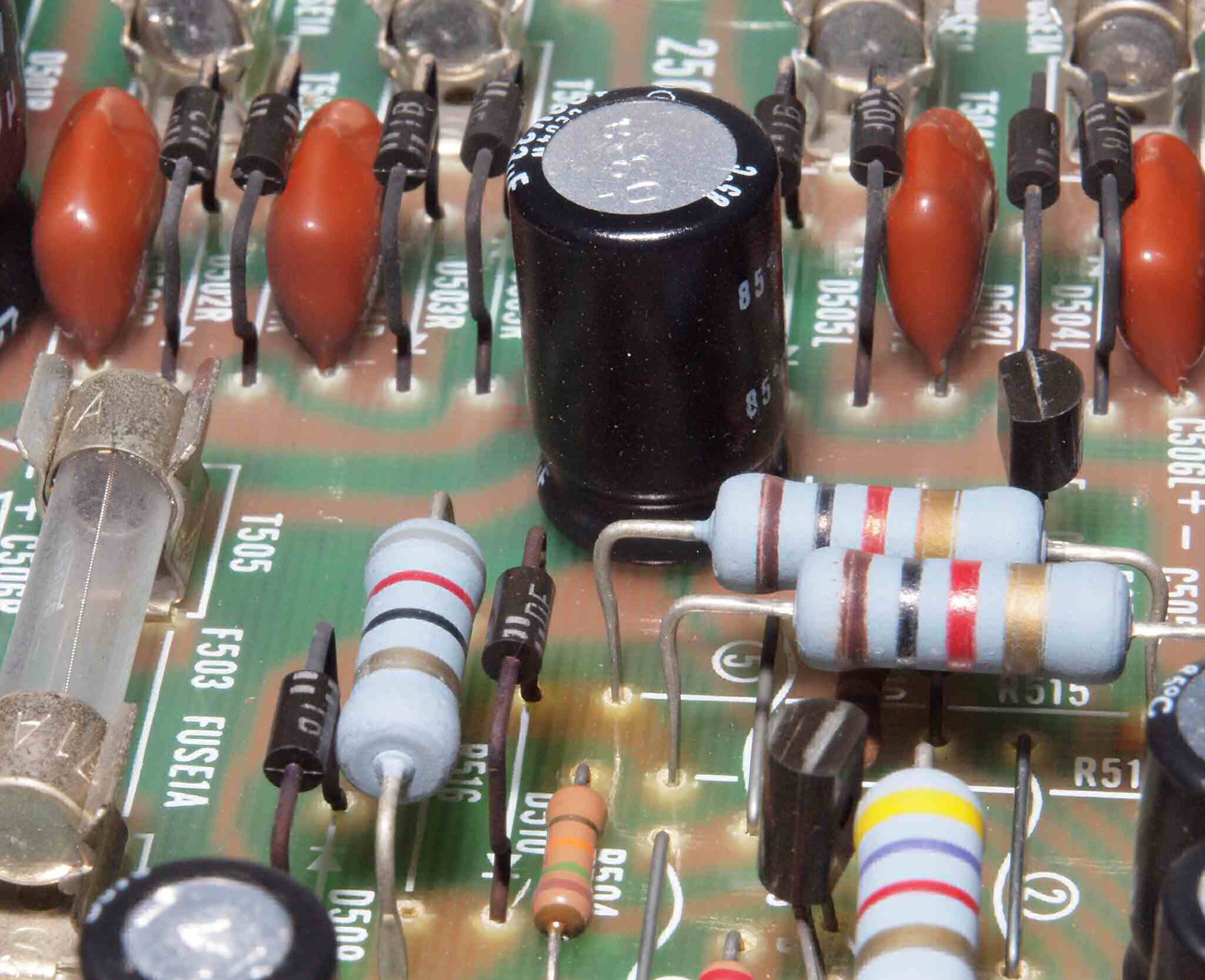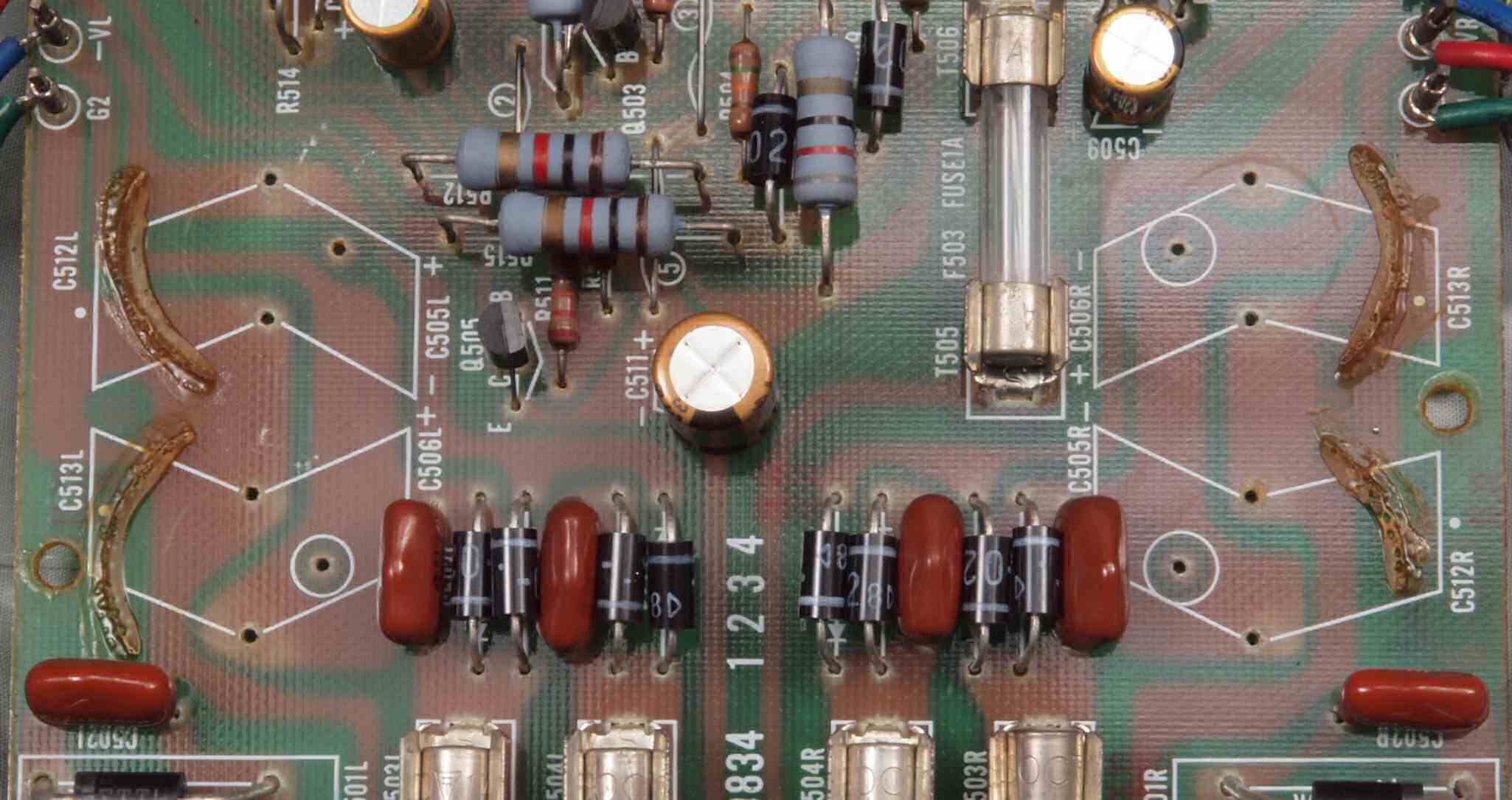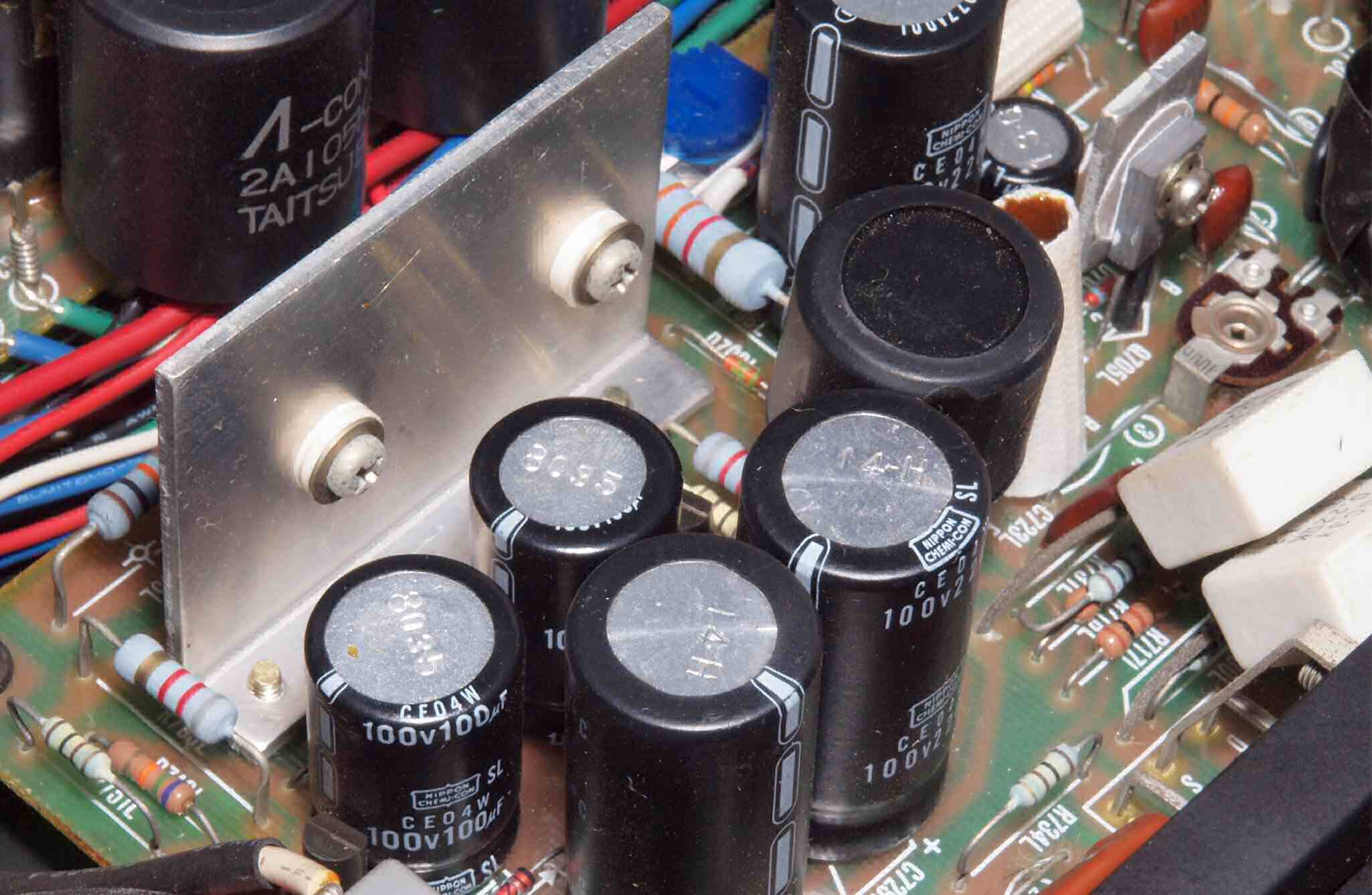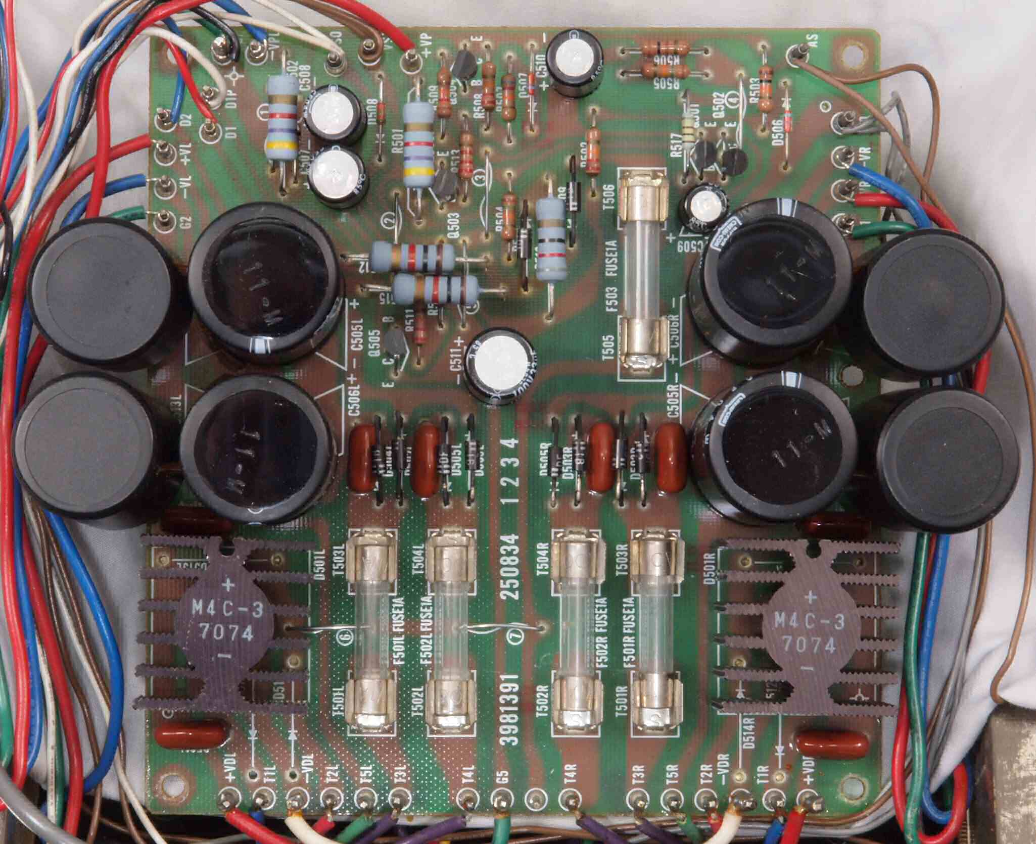 ヒューズ入り抵抗全部、電解コンデンサー11個、TR(トランジスター)2個交換、モジュール修理交換部品は除く。