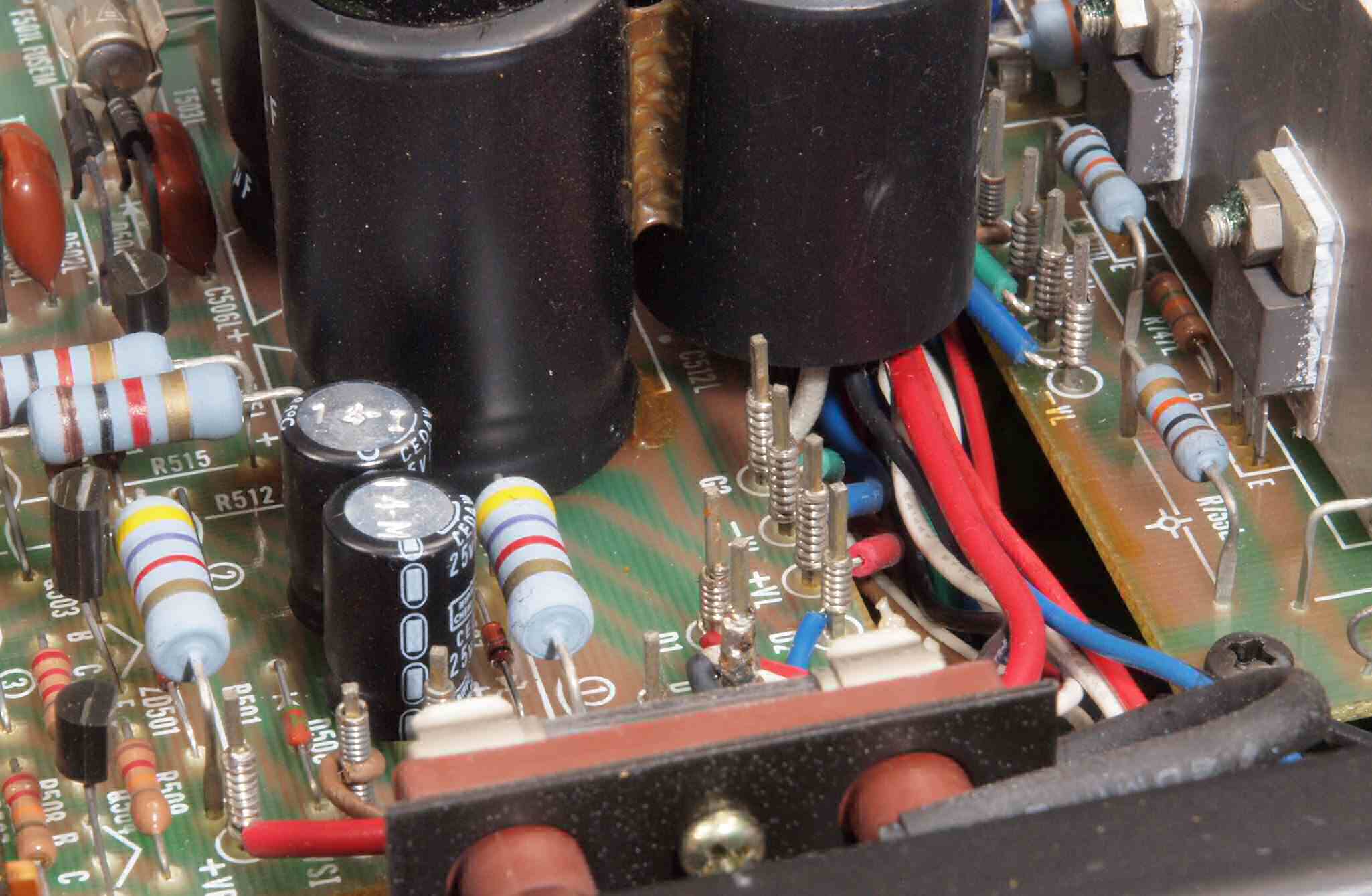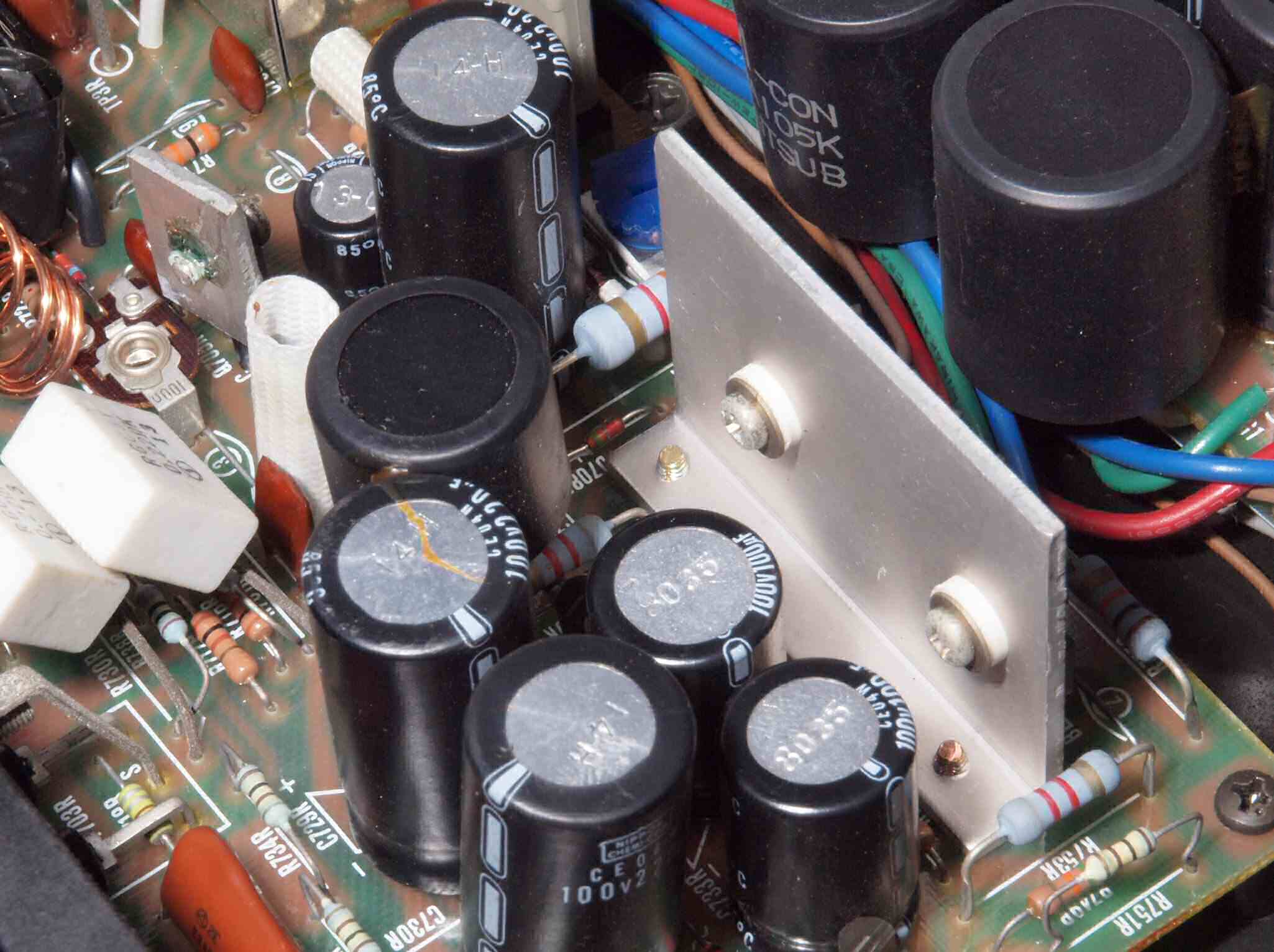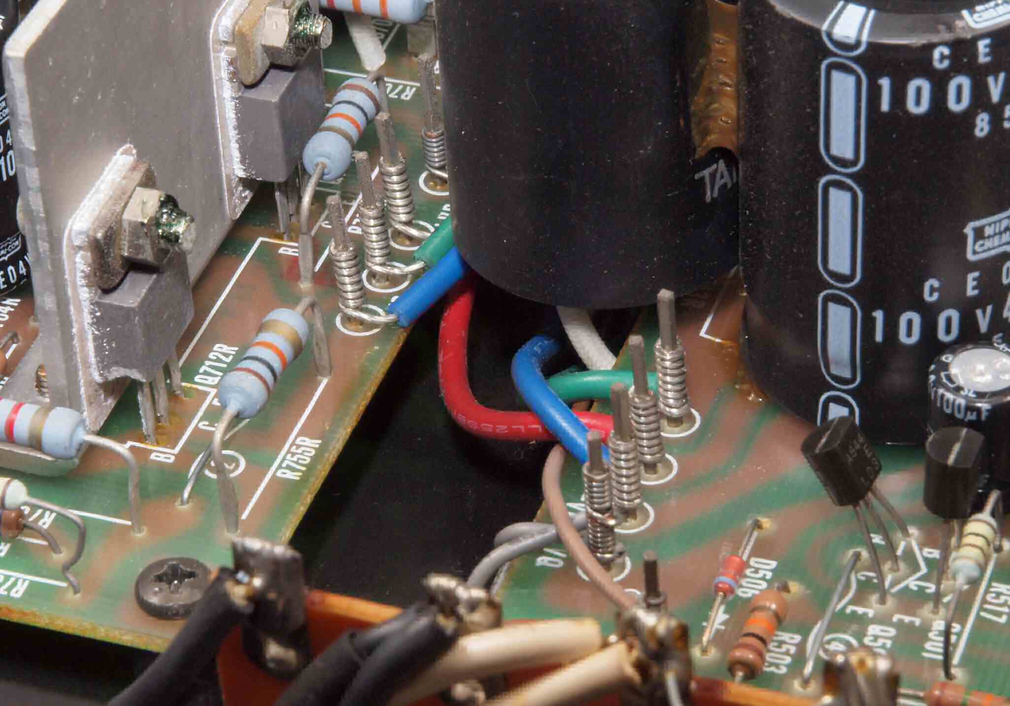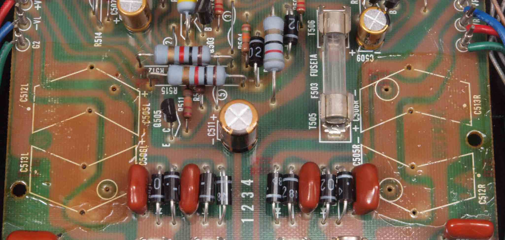 ヒューズ入り抵抗全部、電解コンデンサー11個、TR(トランジスター)2個交換、モジュール修理交換部品は除く。