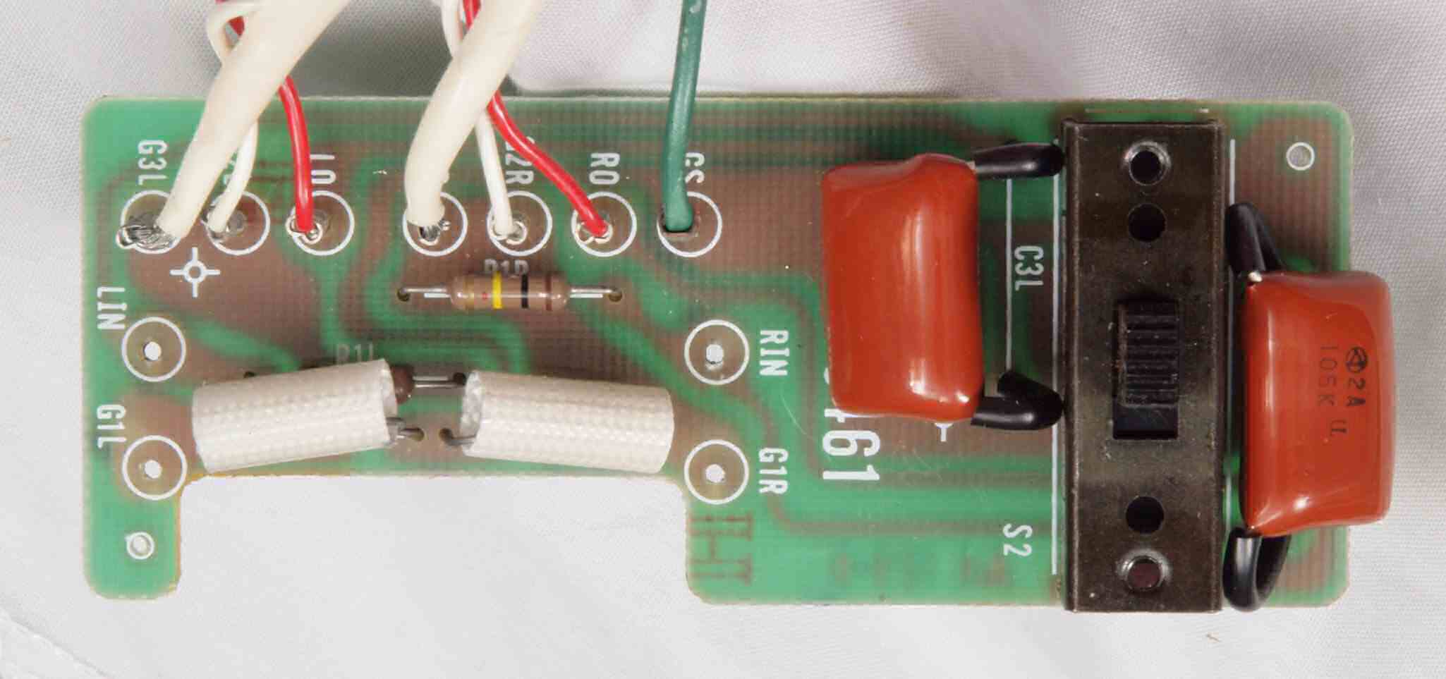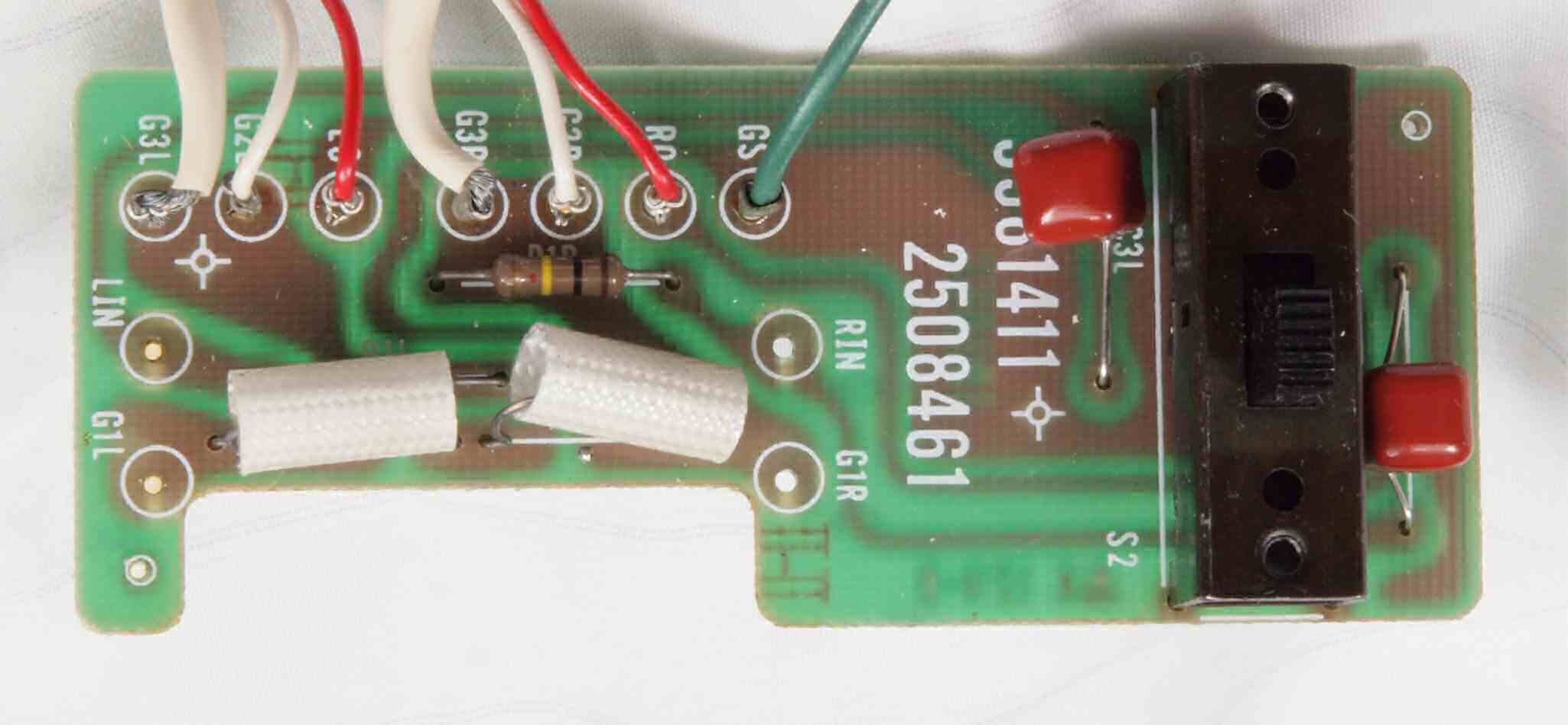 C72. 修理後 入力RCA端子基板。 フイルムコンデンサー2個交換。
