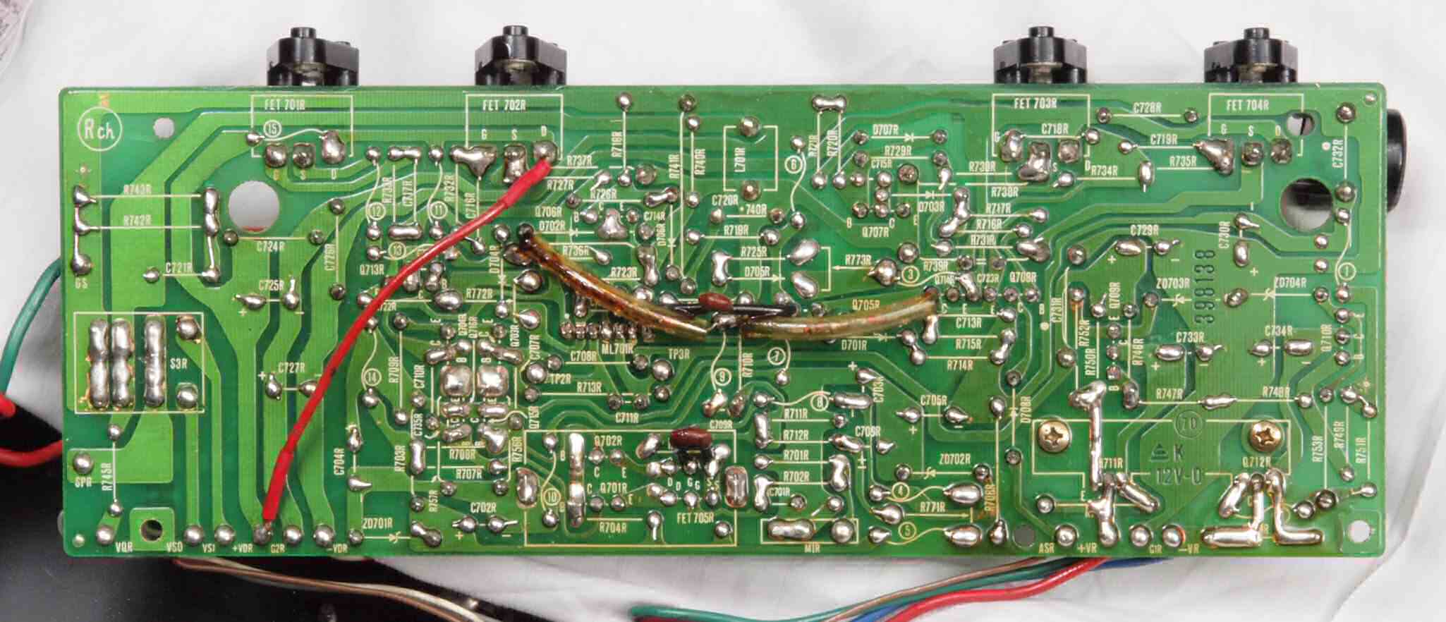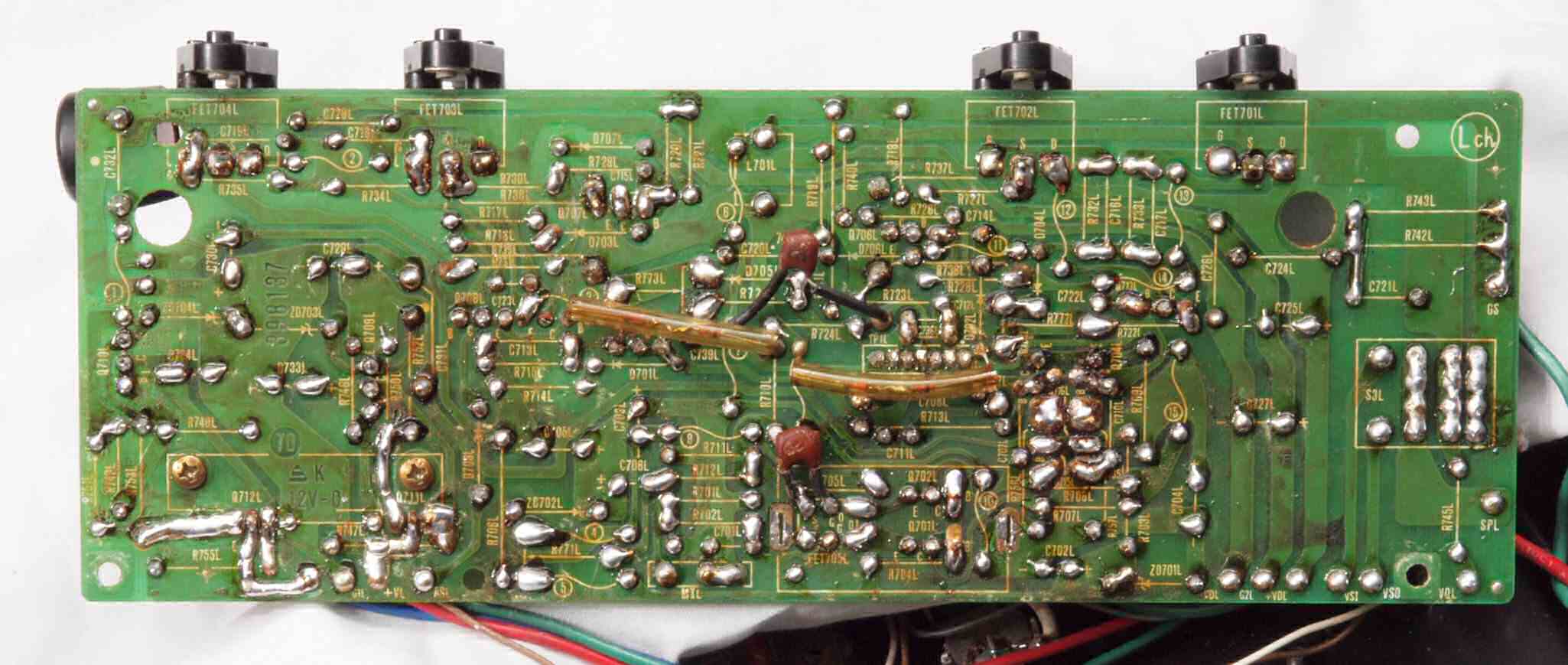 C15. 修理(半田補正)後 R側ドライブ基板裏 半田を全部やり直す。 普通はこれで完成。