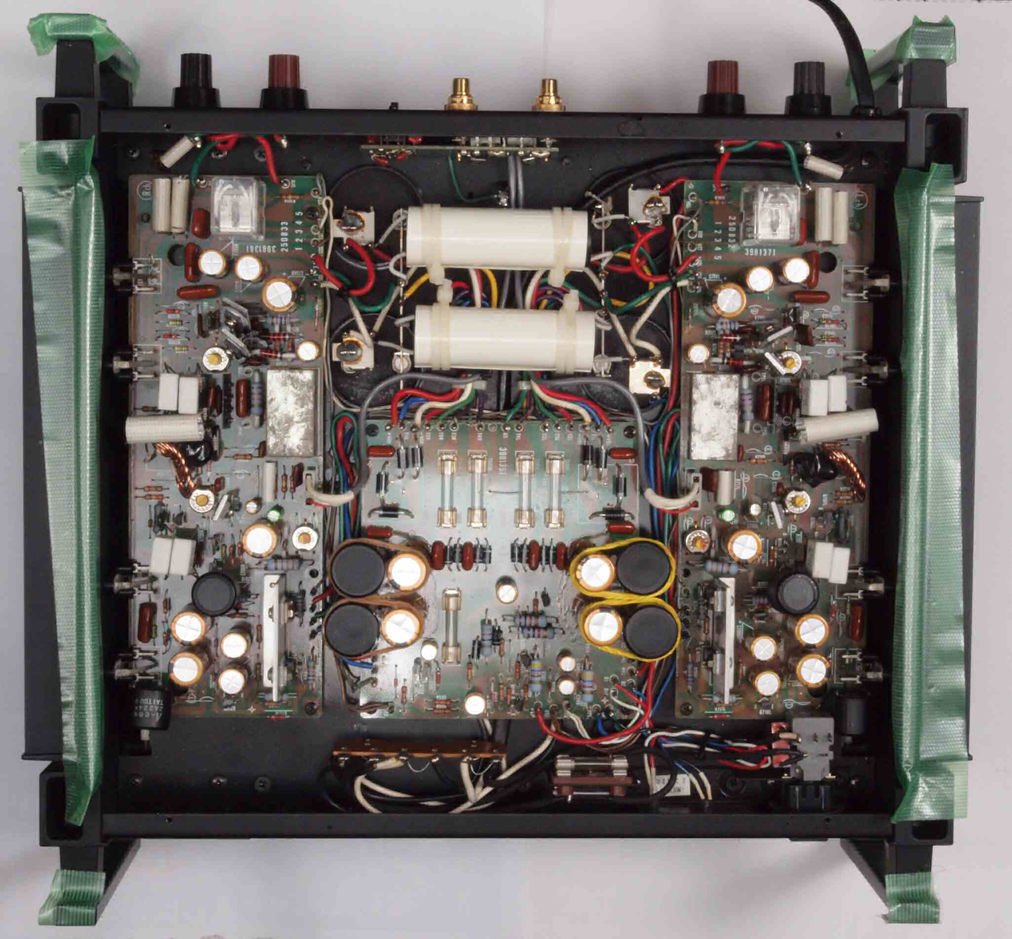 初段FET(電界効果トランジスター)、バランス/バイアス調整用半固定VR3個、SP接続リレー交換