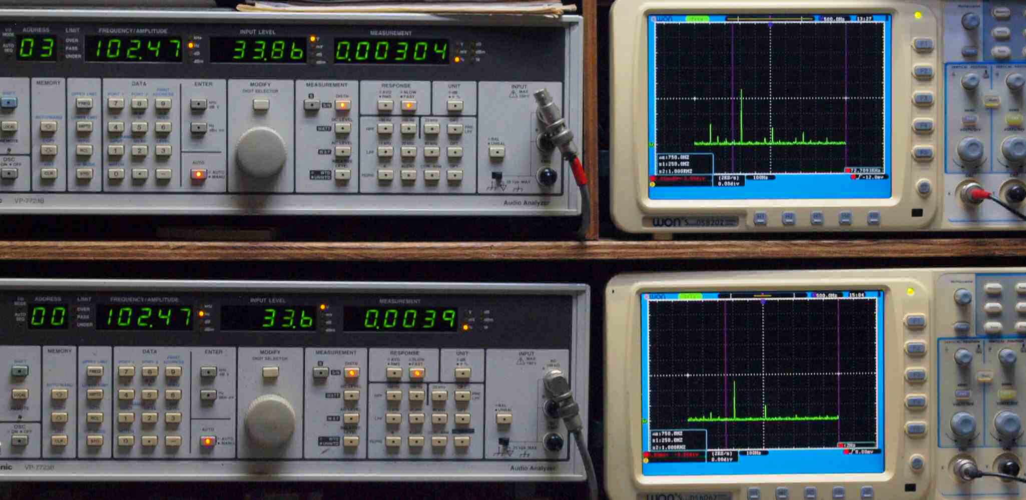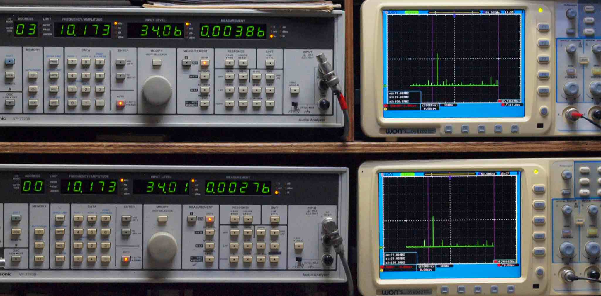 よって、ダイアル設定出力レベルより低なります。測定機器の仕様や整備の様子はこちら、「VP−7723B」「VP−7201A」。 FFT画面の見方はこちら。