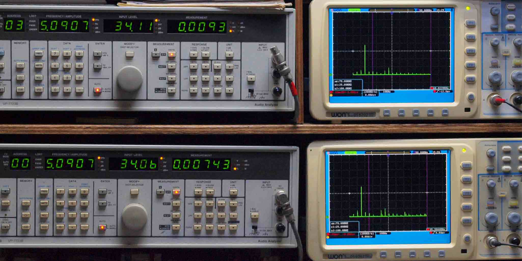 E5. 5kHz入力、R側SP出力電圧34V=145W出力、 0.0093%歪み。