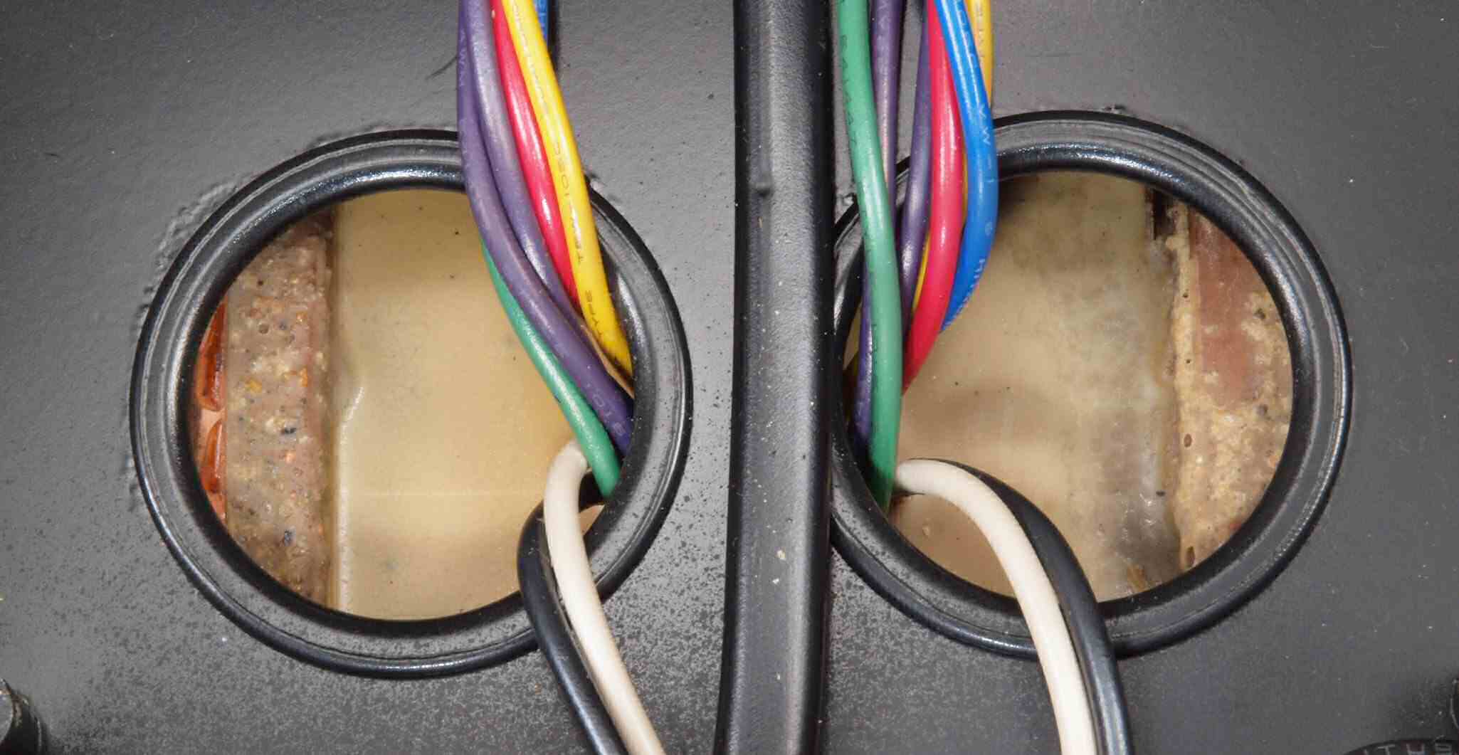A86. 点検中 R−SP端子。 WBT−0735に交換可能です、但し既存の取り付け穴が見えます。