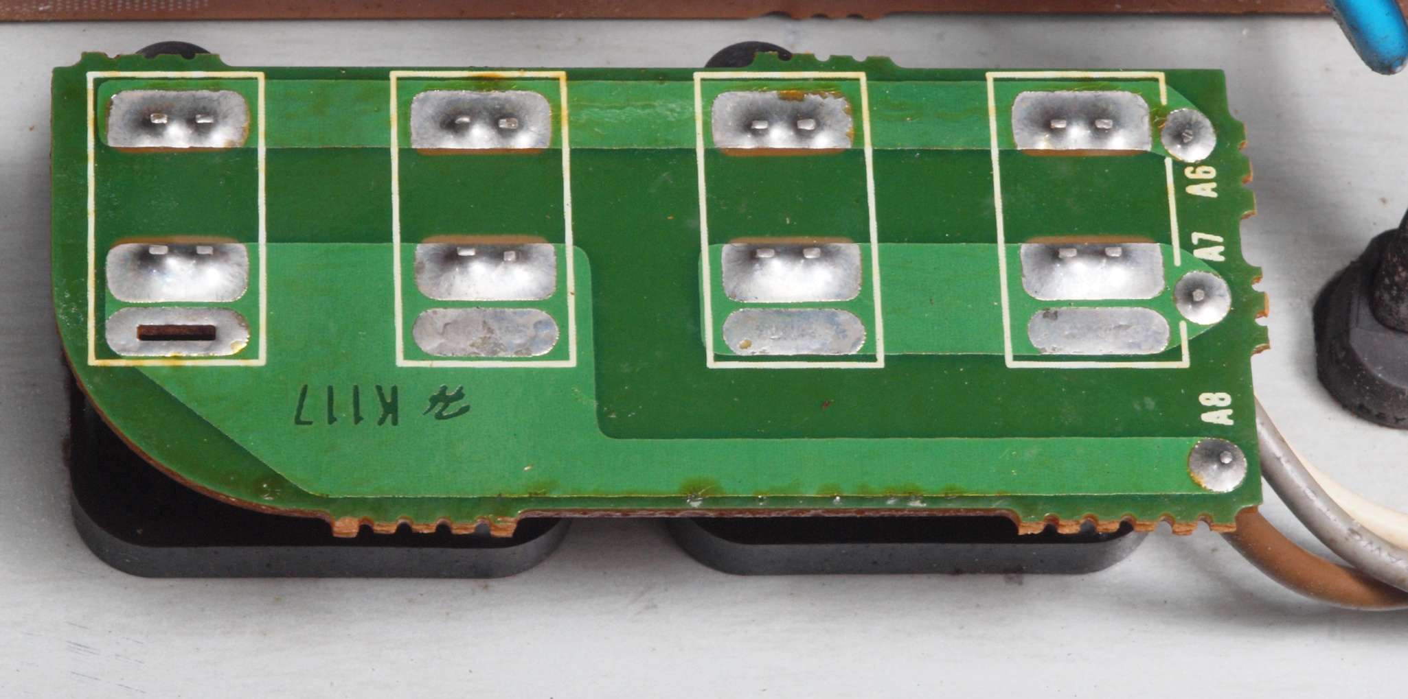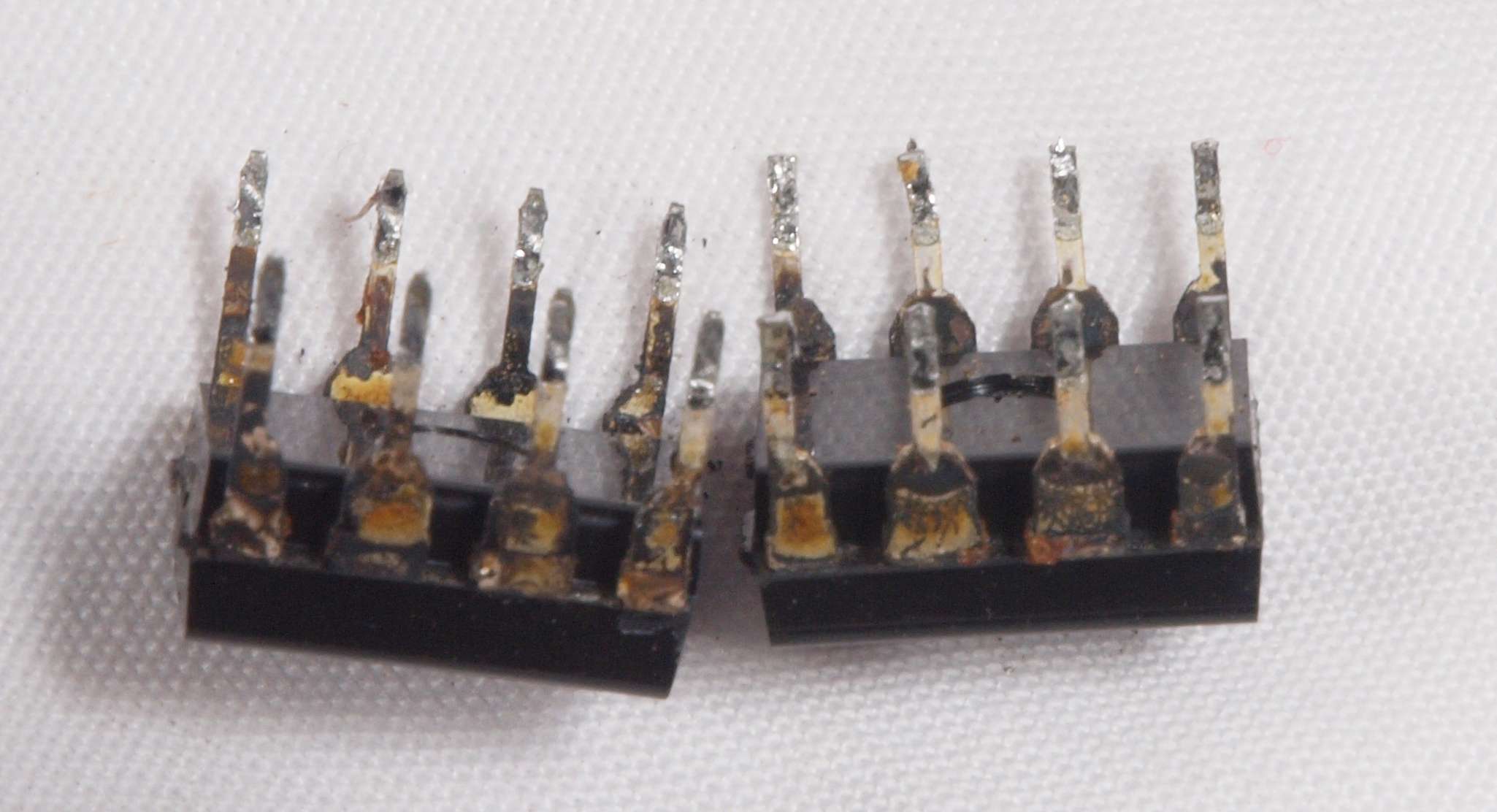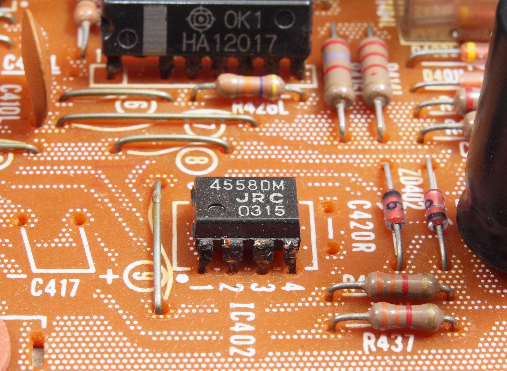 A19. 点検中 OP−AMPの足が酸化して真っ黒、上のICも同様。