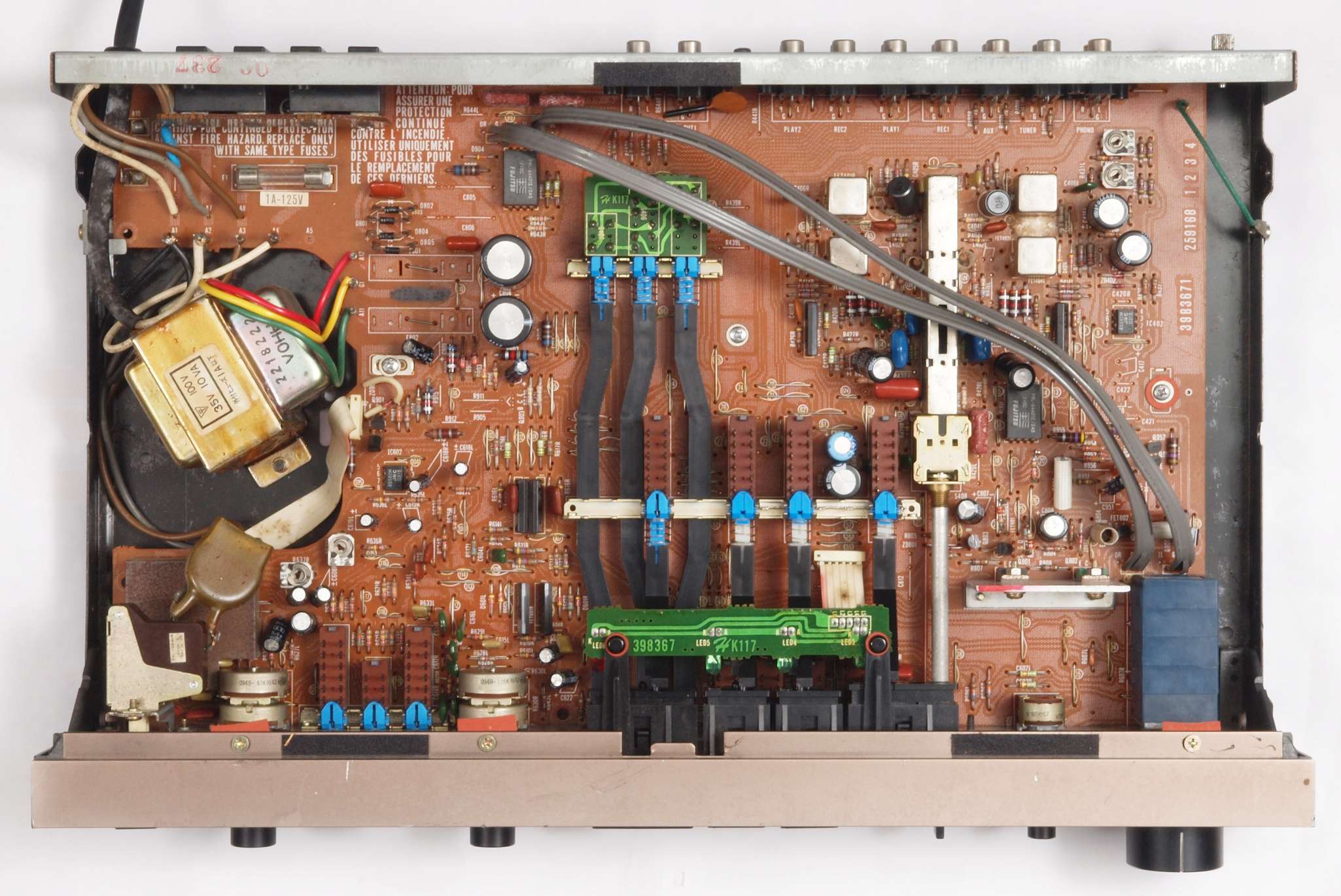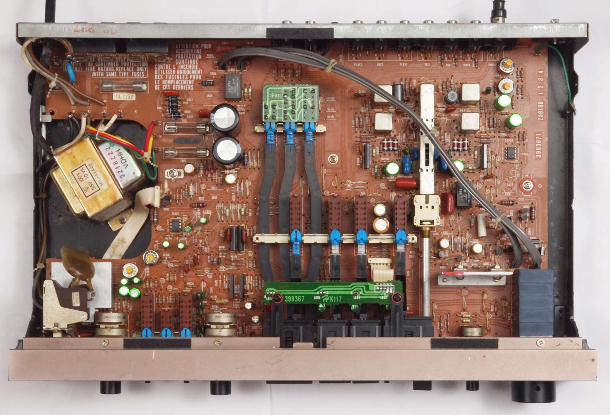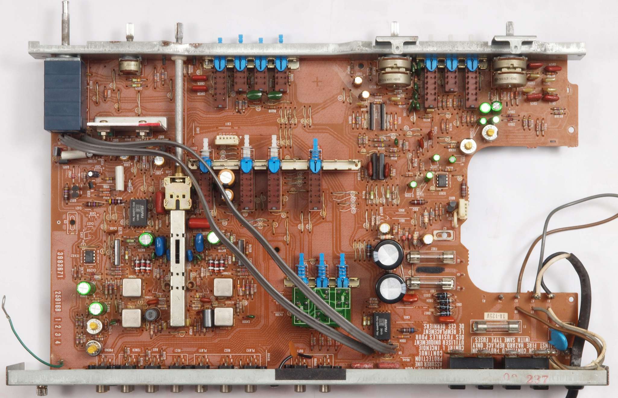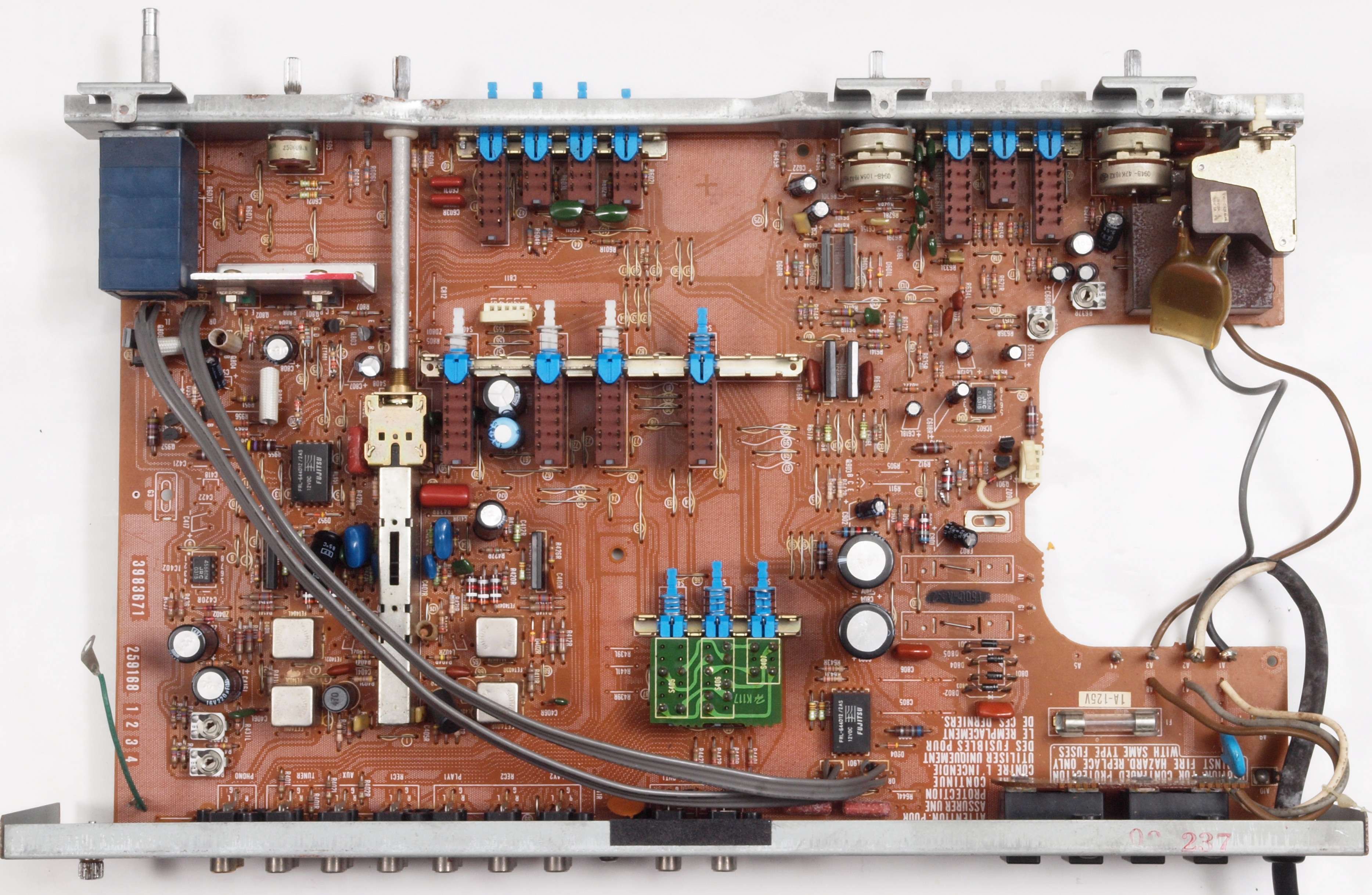 C22. 修理後 EQ−AMP部。 FETモジュール2個、半固定VR2個、電解コンデンサー6個、ヒューズ入り抵抗3個交換。