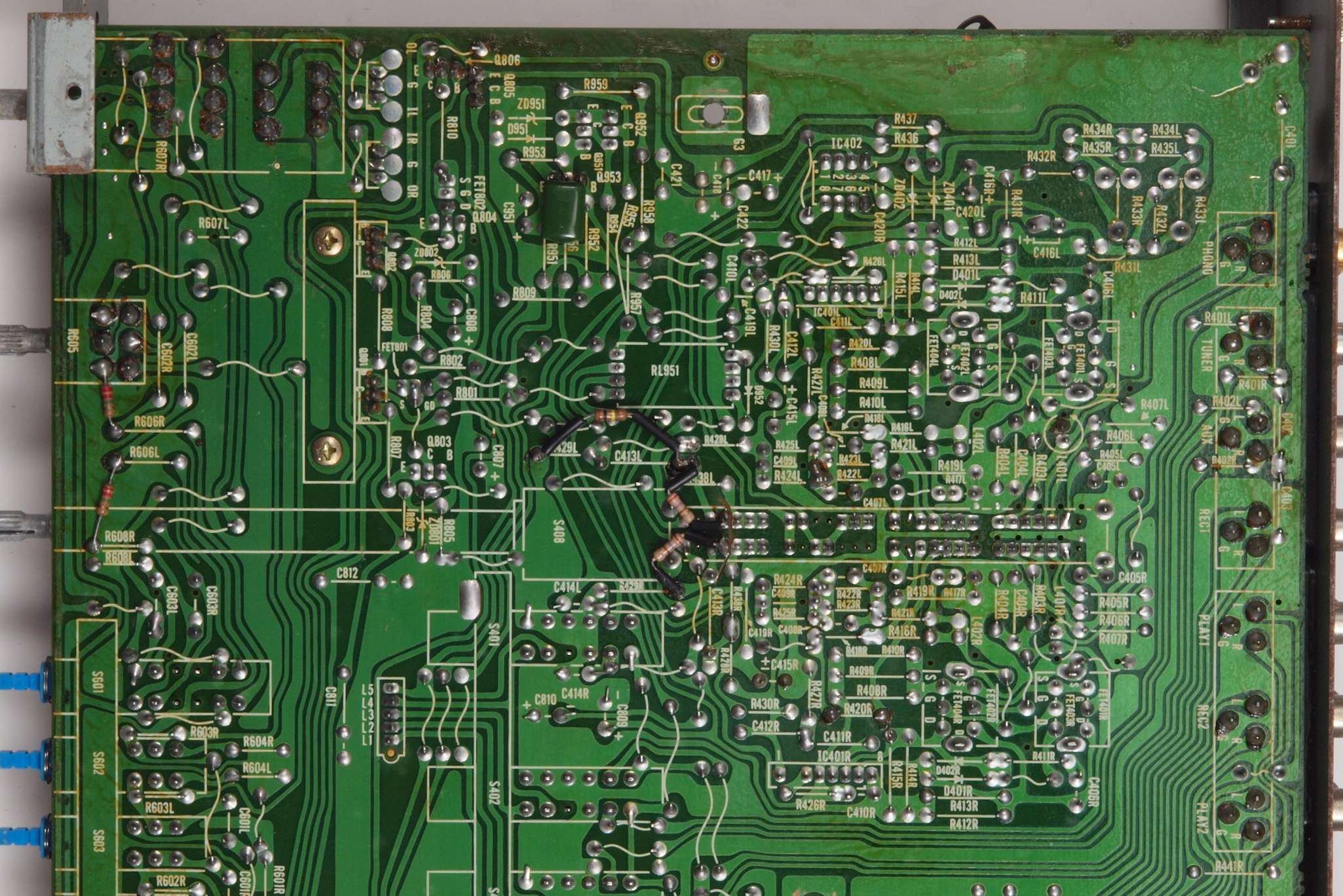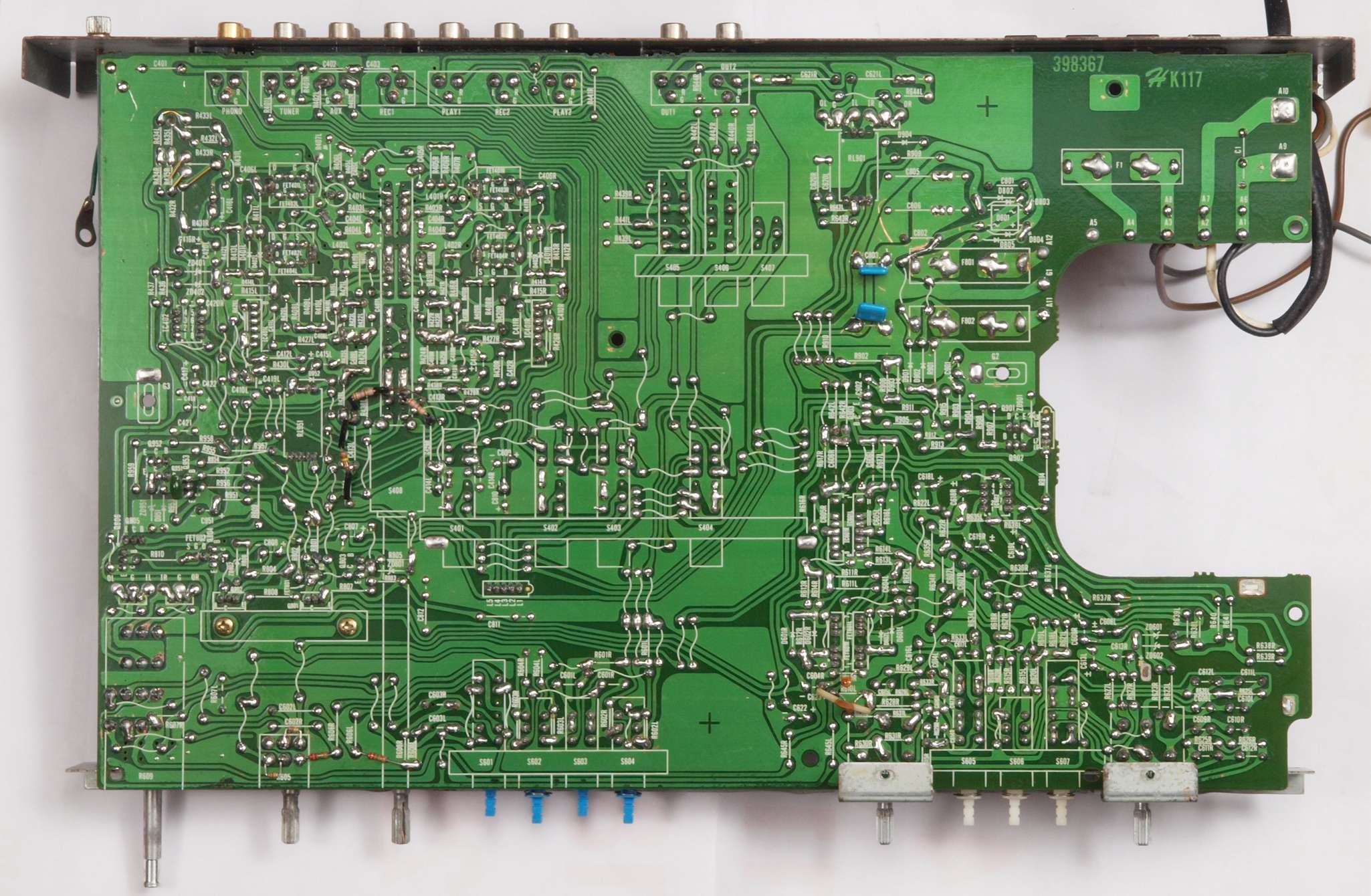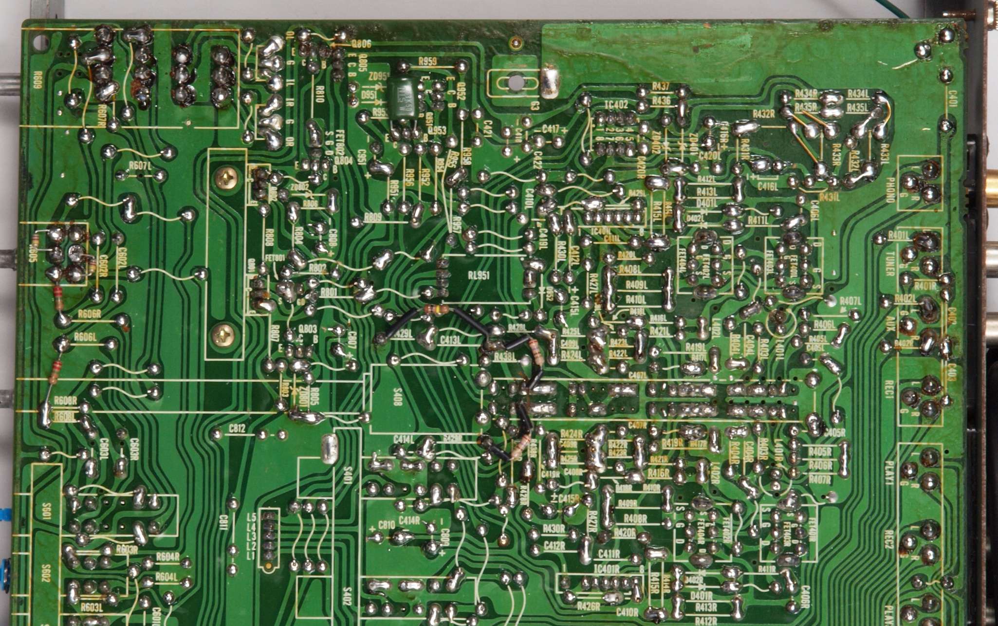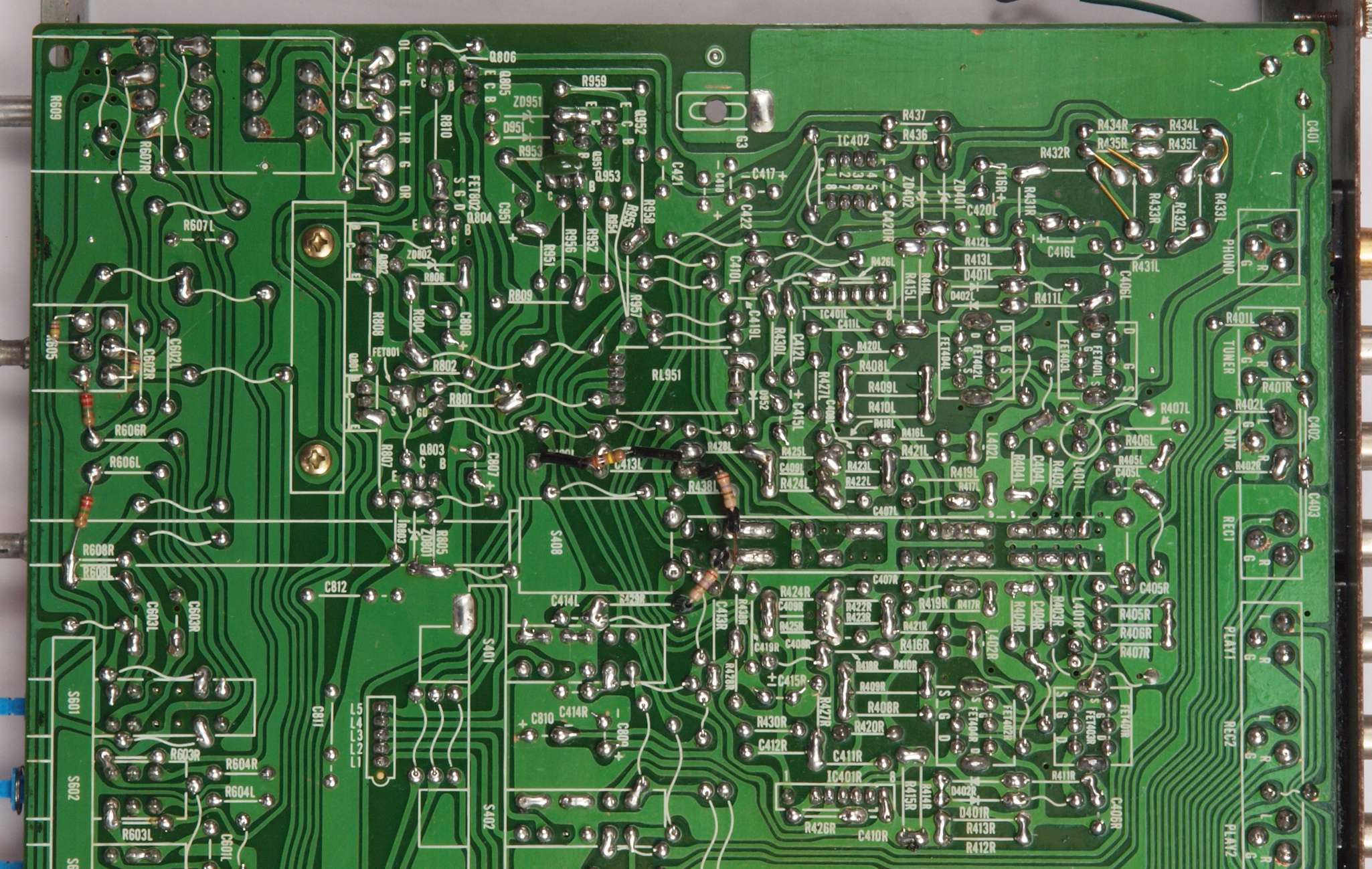 C24. 修理(半田補正)後 EQ−AMP部裏 、 全ての半田をやり修す。