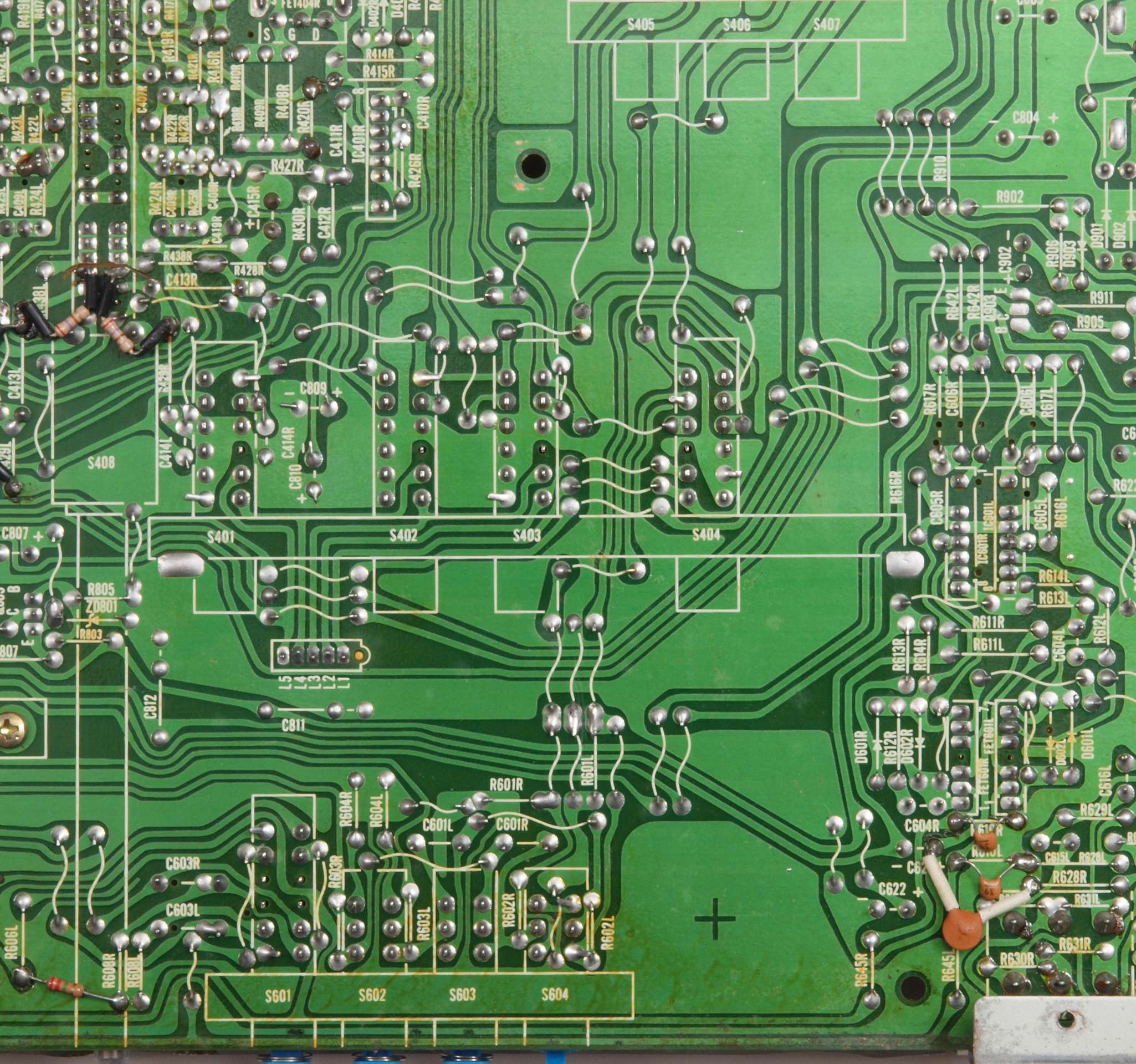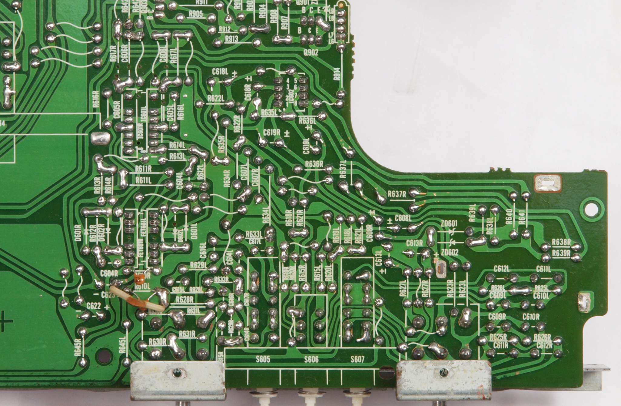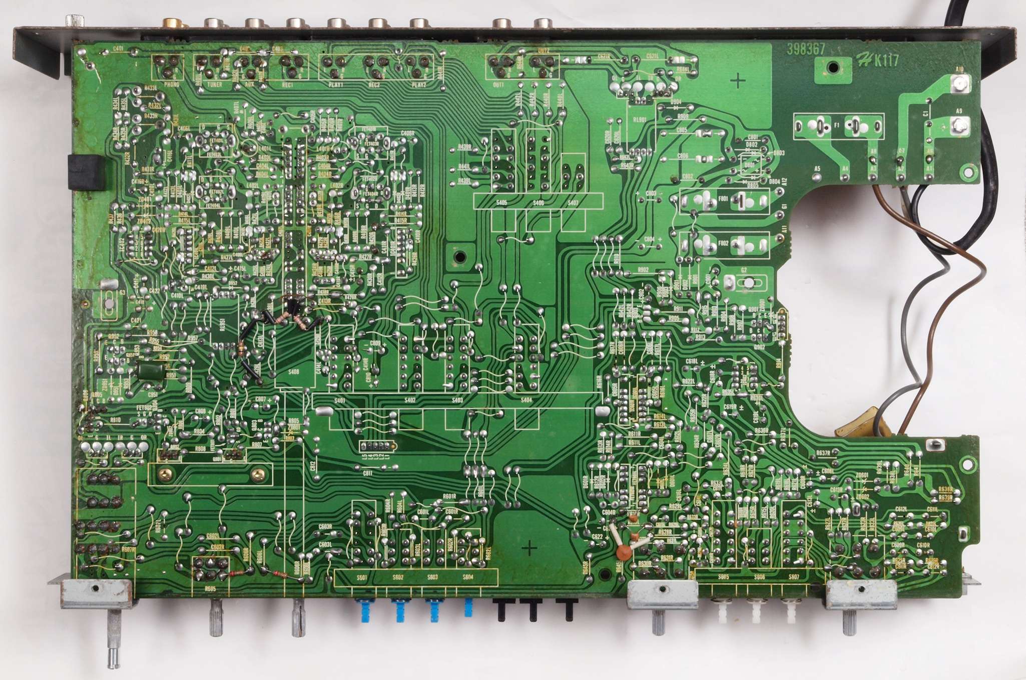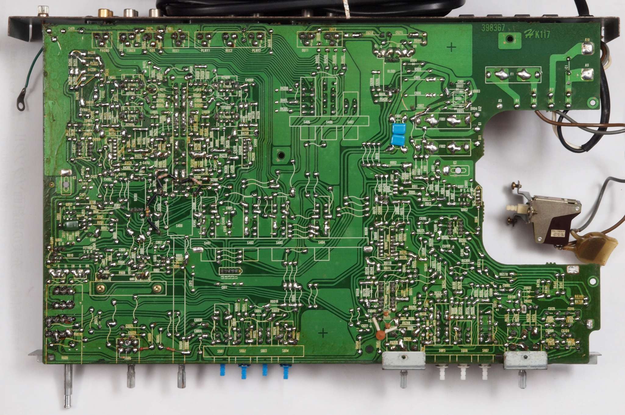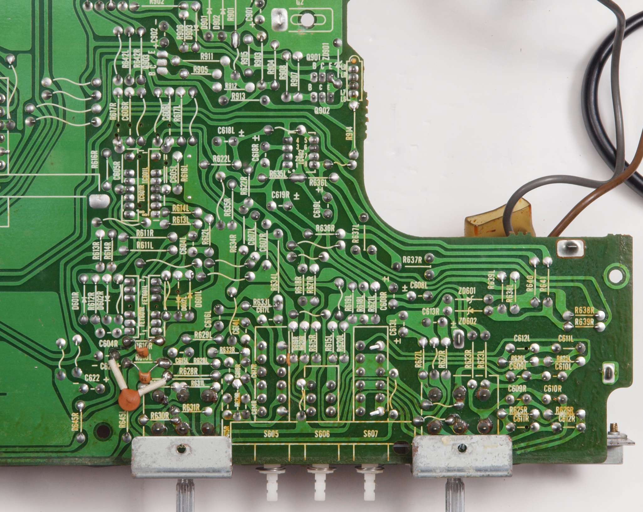 C24. 修理(半田補正)後 EQ−AMP部裏 、 全ての半田をやり修す。