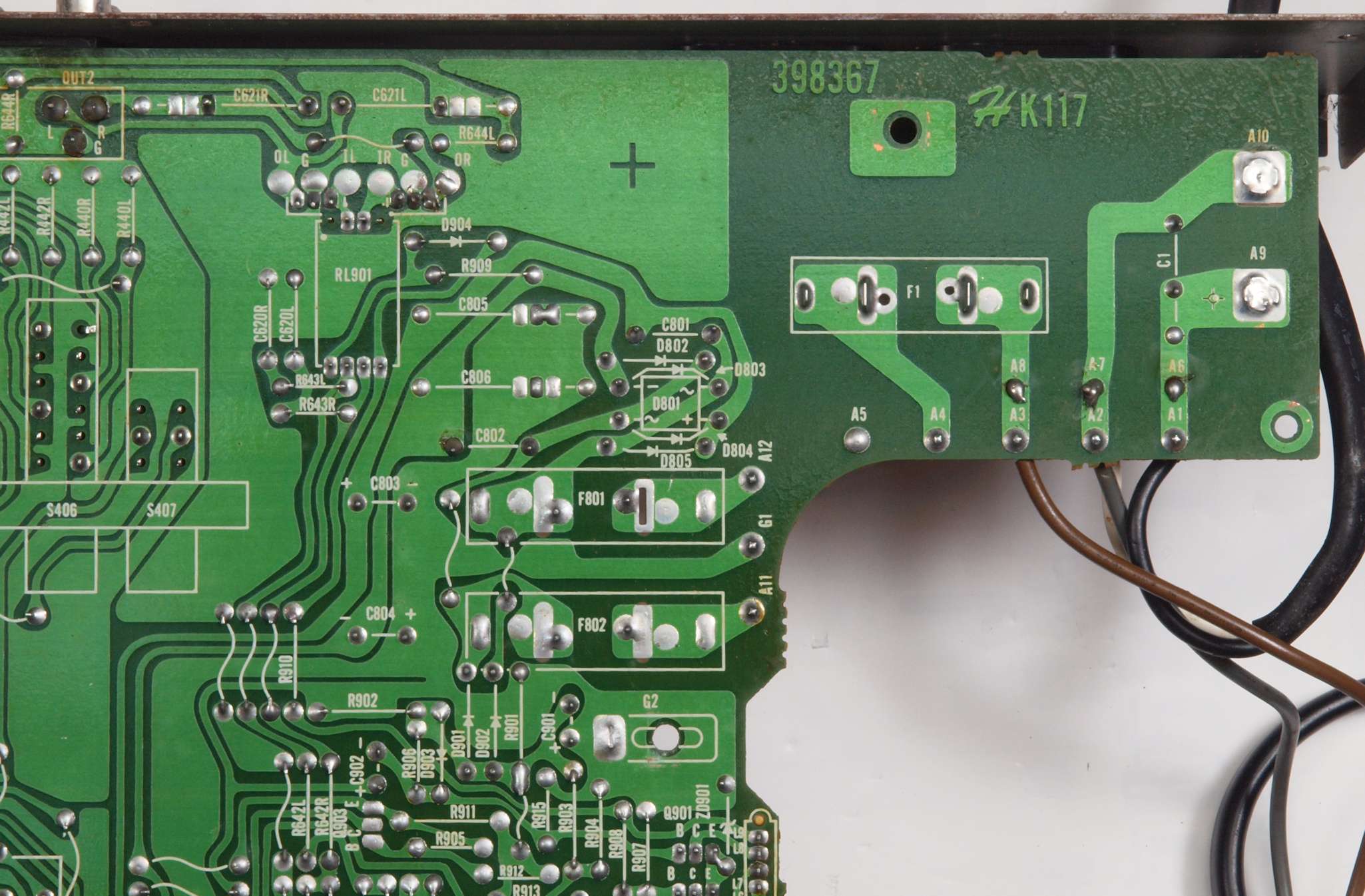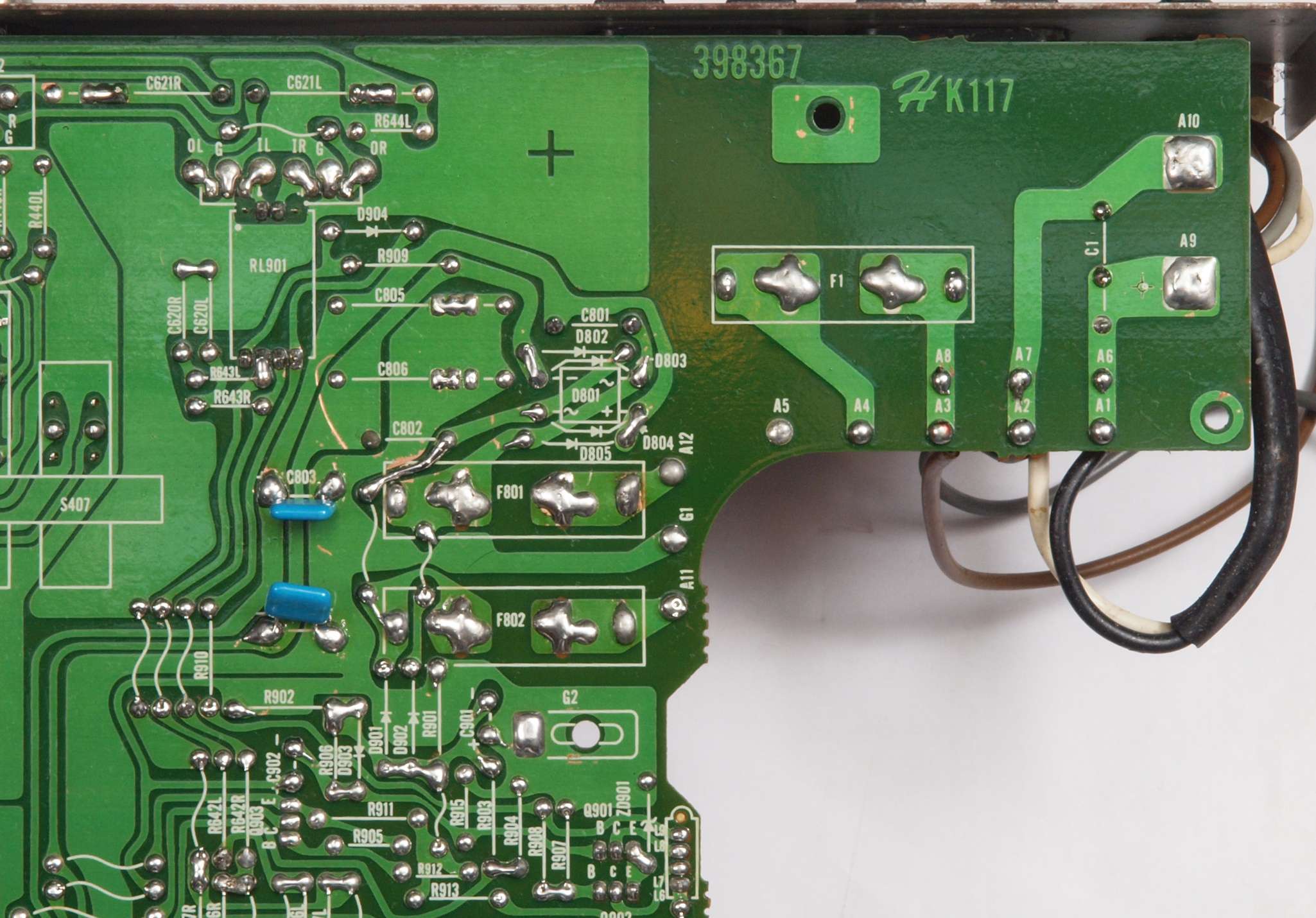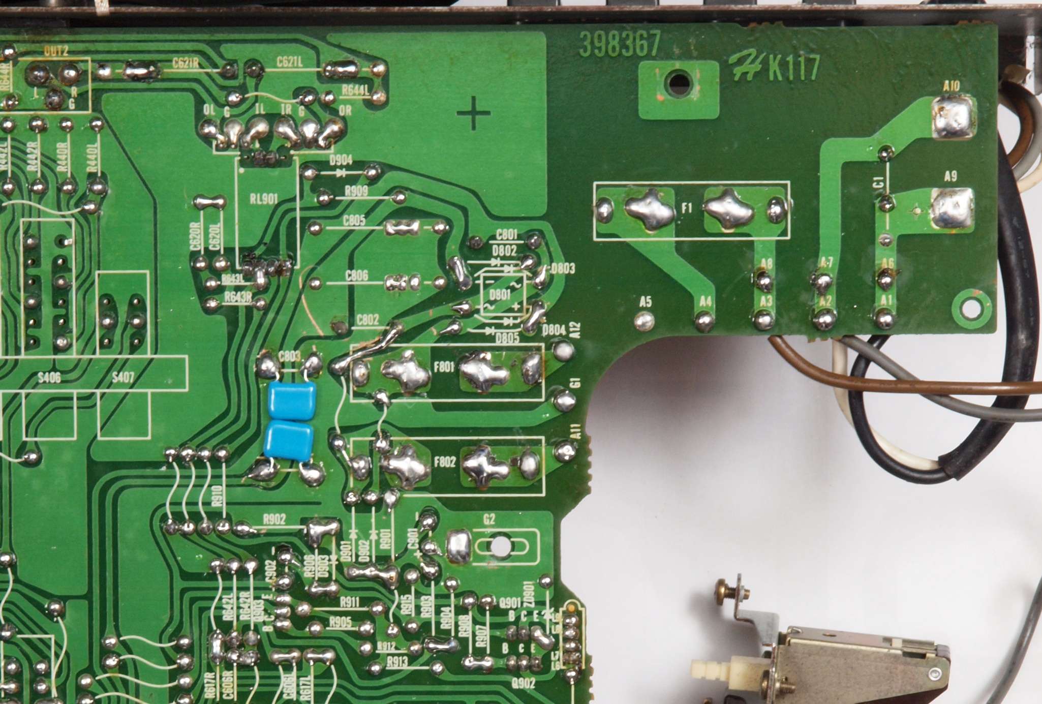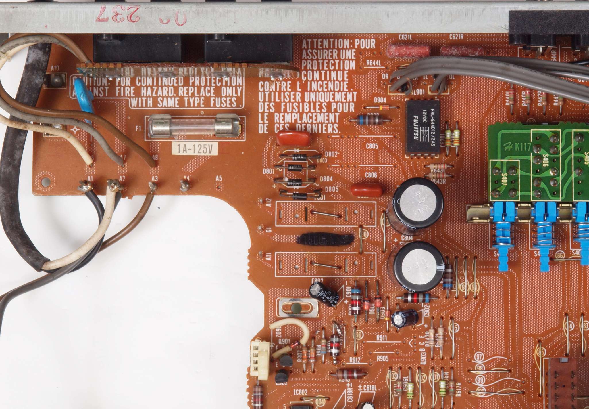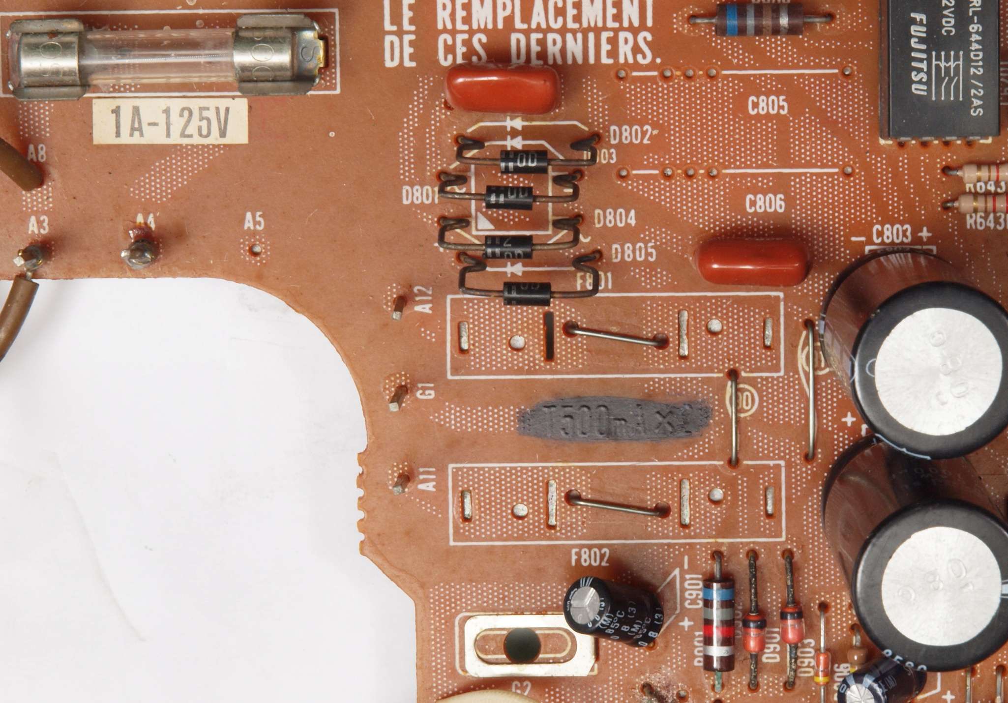 C53. 修理前 電源部2次側ヒューズ。省かれている!!
