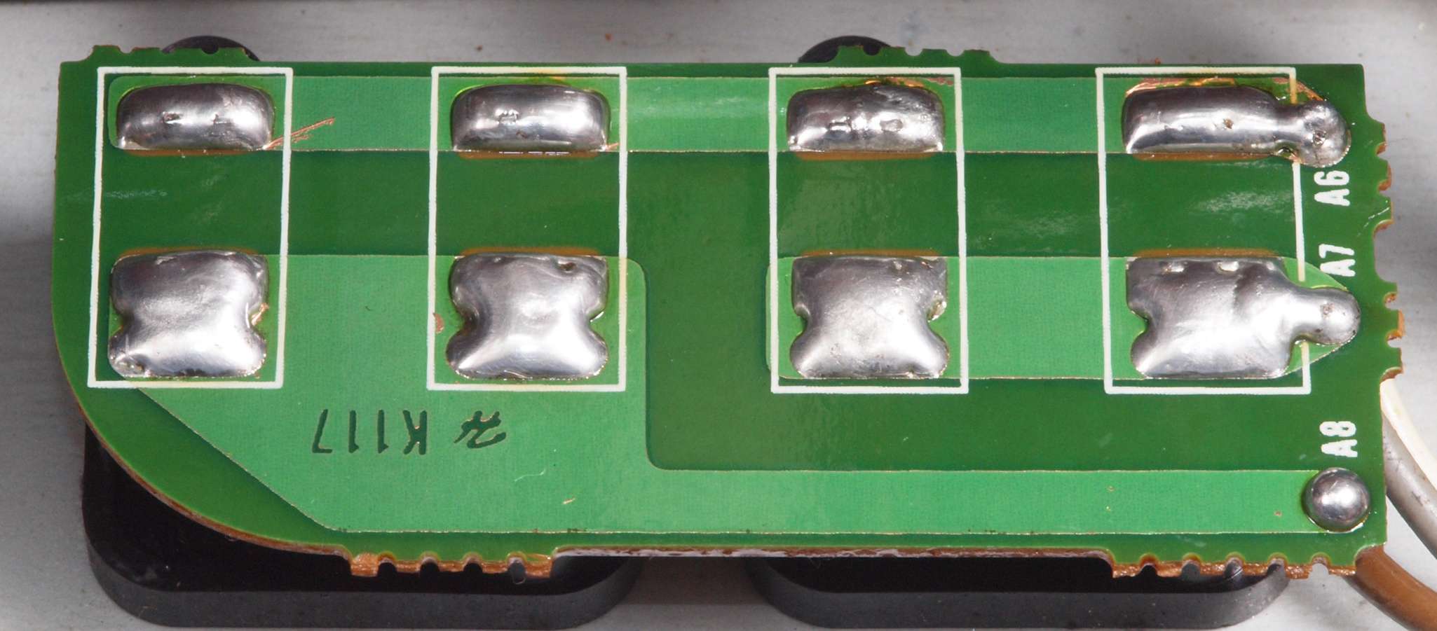 C62. 修理(半田補正)後 TAPE−SW基板裏、  全ての半田をやり修す。