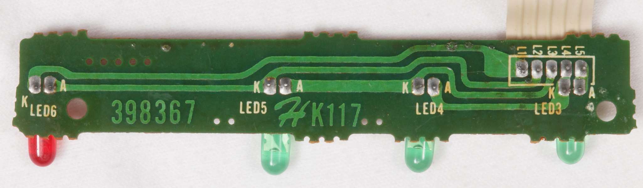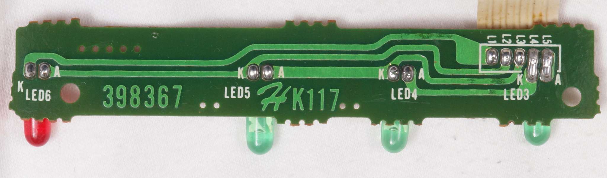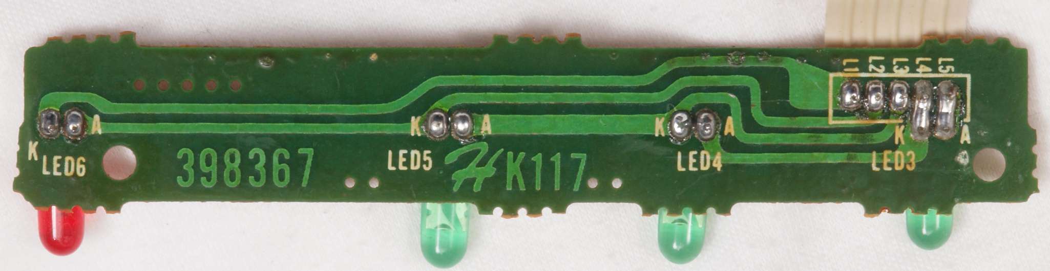 C73. 修理(半田補正)後 入力切替表示LED基板裏。  全ての半田をやり修す。