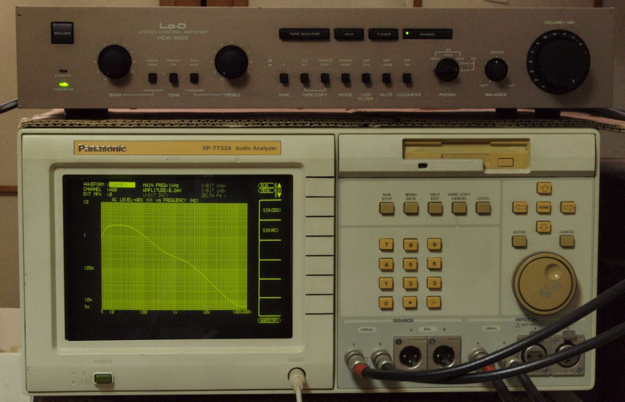 F0. 下のオーディオアナライザーVP−7732Aで自動測定。
