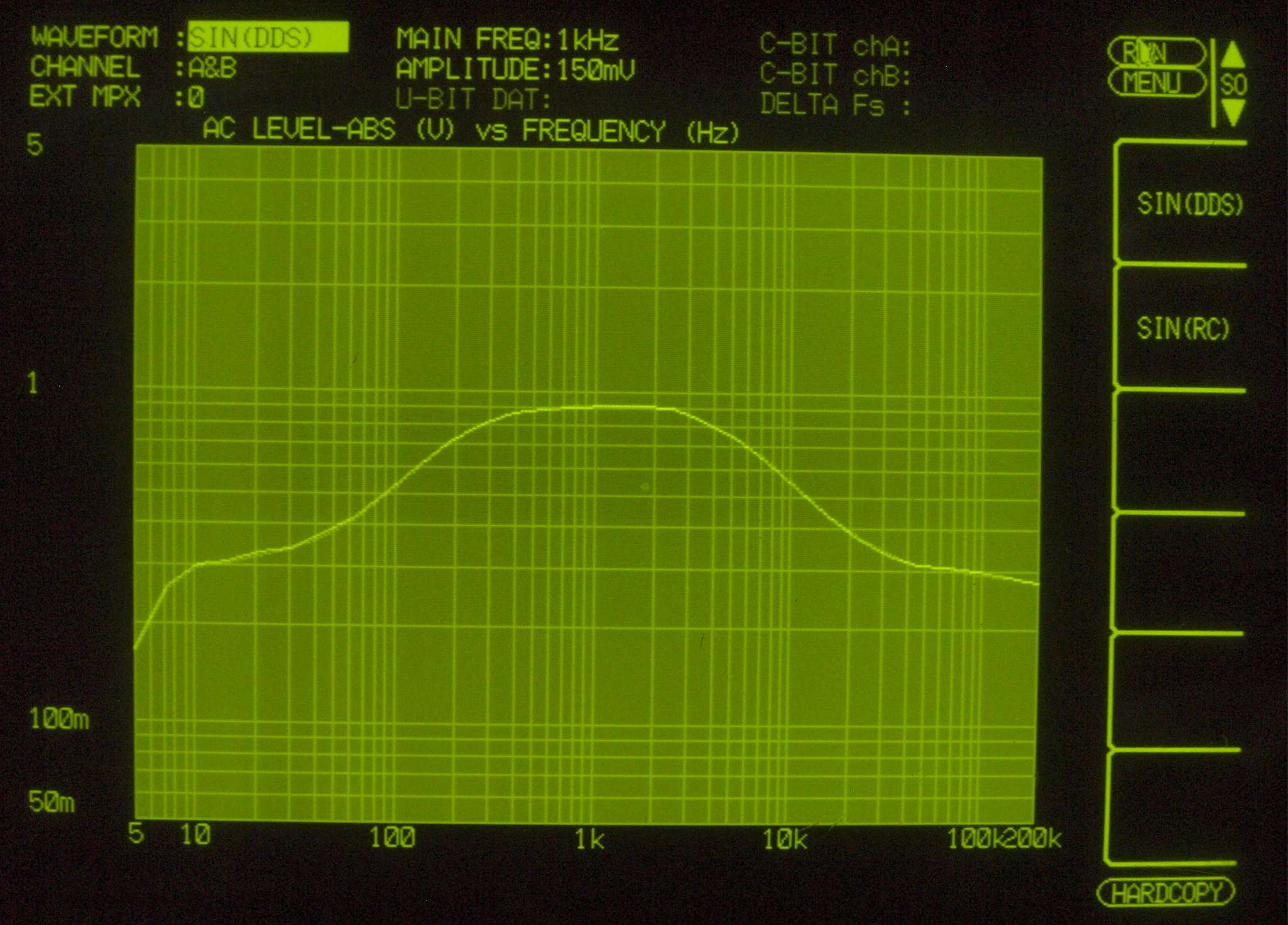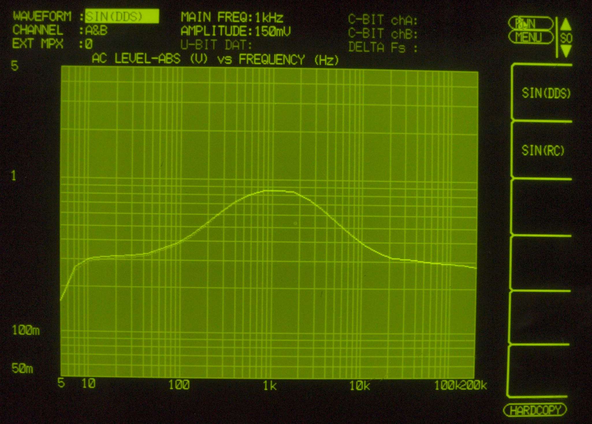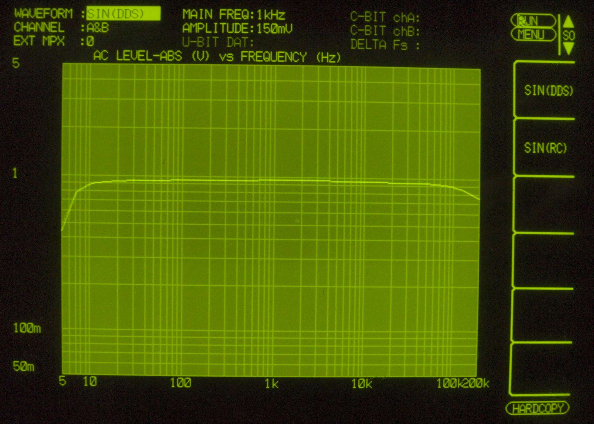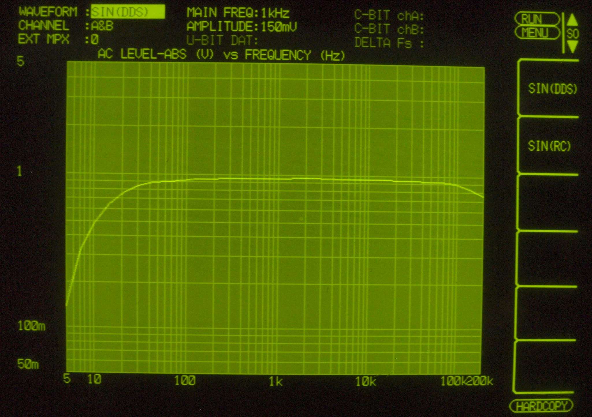 F7. 入出力特性測定(AUX入力)、 BASS(150Hz) & TREBLE(3kHz) 最小。