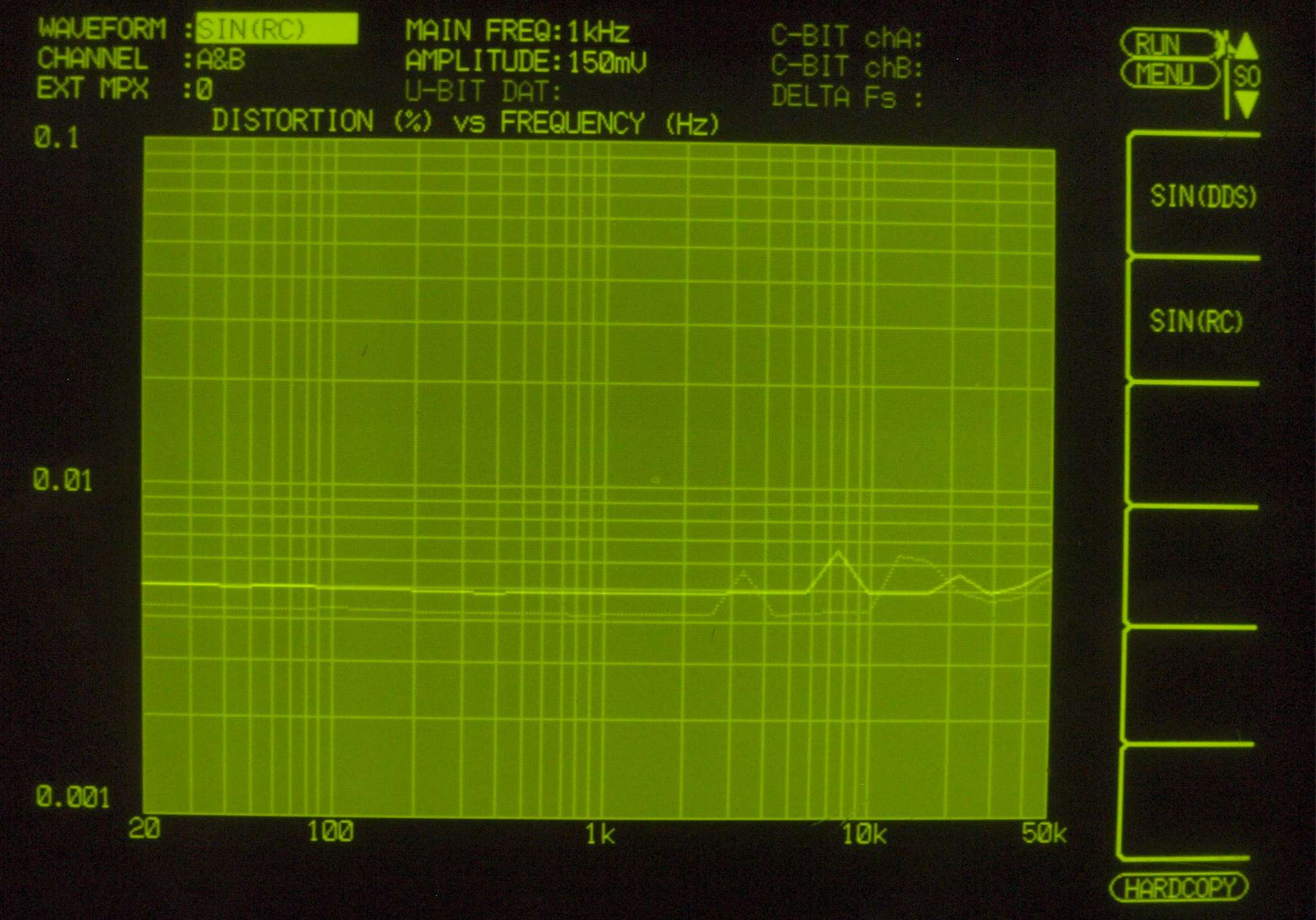 E24. MM、1kHz入力=R側出力電圧2V、 0.00505%歪み。