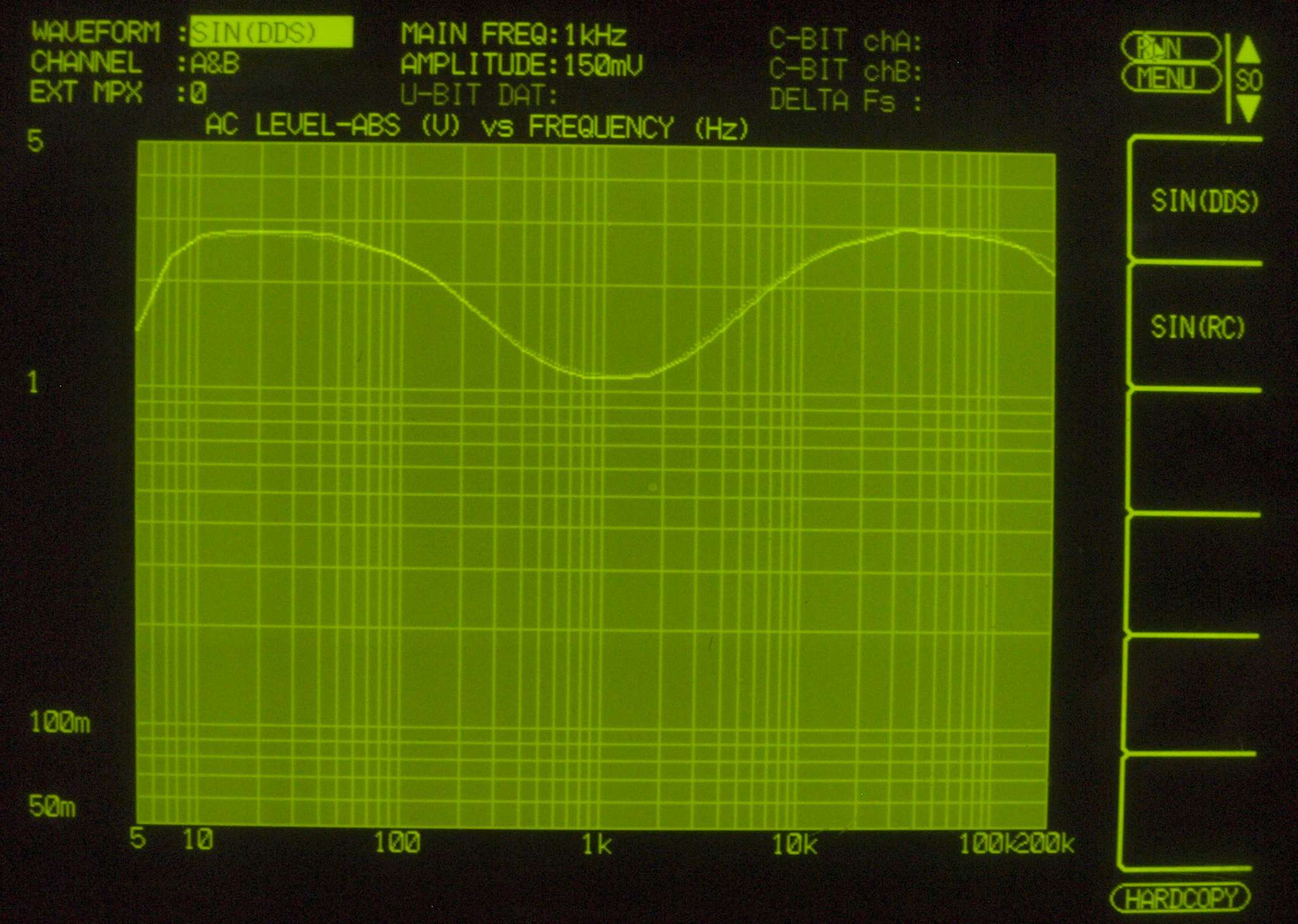 AUX入力端子へ150mV一定入力。VRはmax。