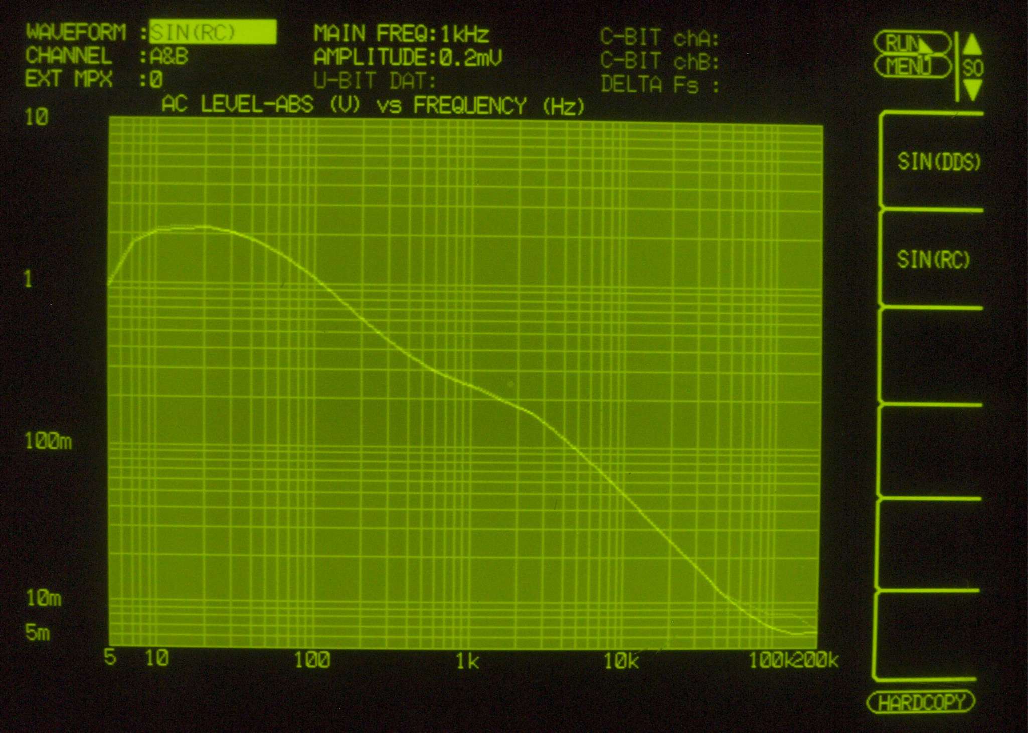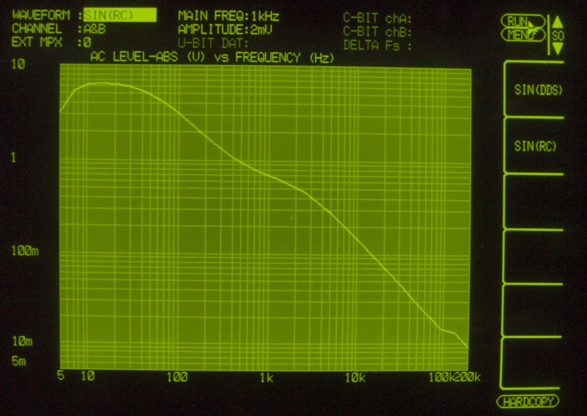 F5. 入出力特性測定(AUX入力)、 BASS(300Hz) & TREBLE(3kHz) 最小。
