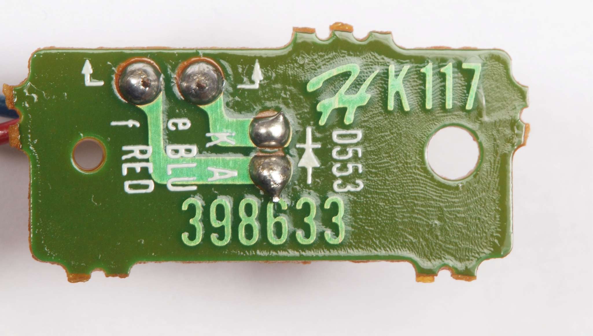 | C62. 修理(交換)後 左側メーター照明ランプ基板。本来のランプに交換する。 | ||||||||||||||||||||||||