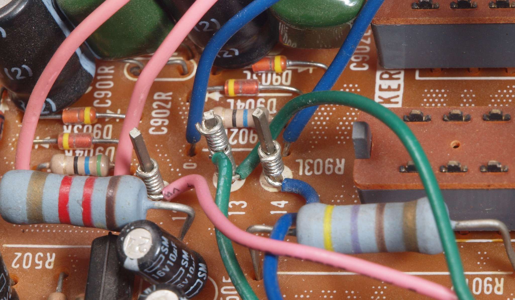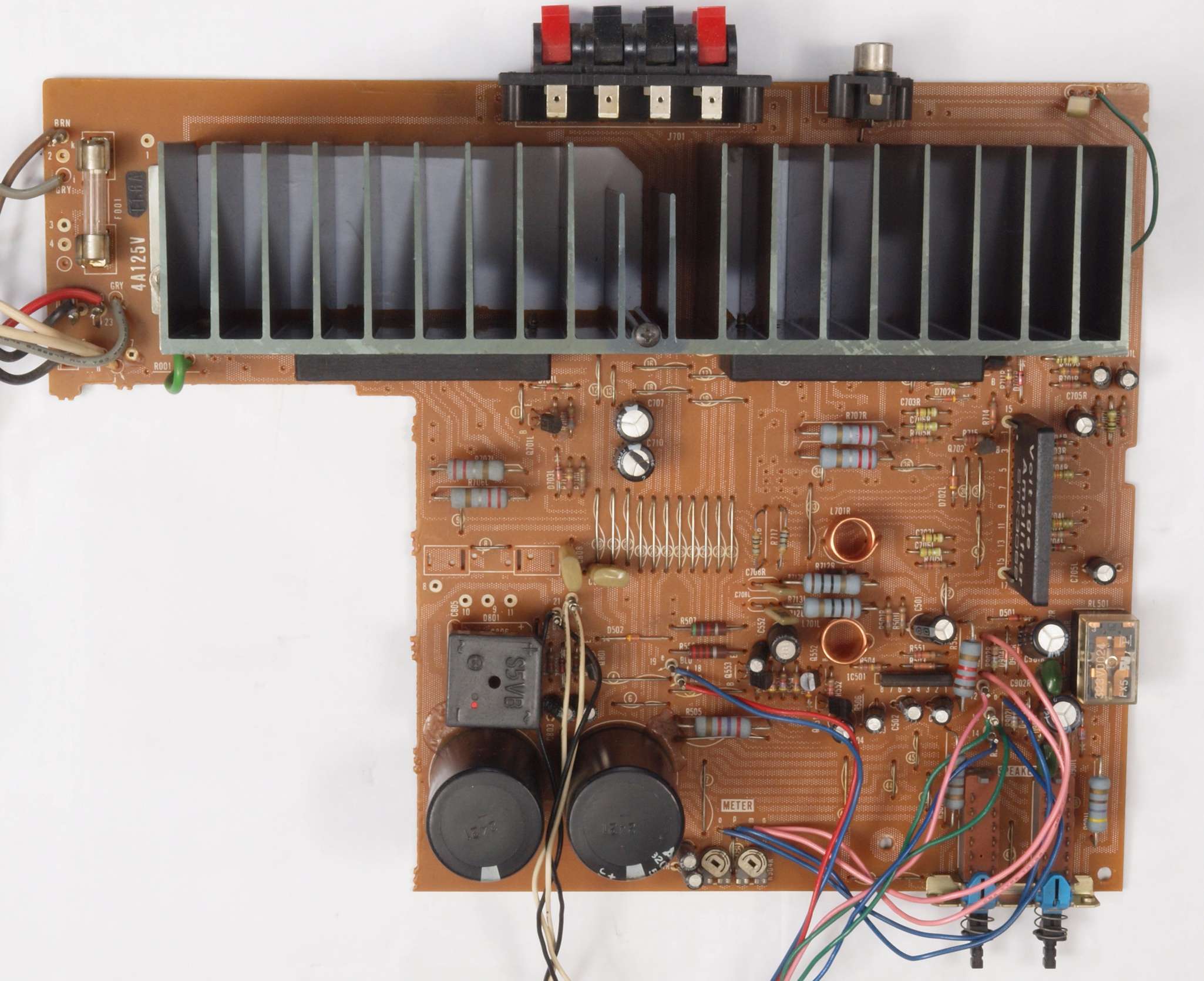 | C14. 修理後 メイン基板。 半固定VR2個、ヒューズ抵抗2個、電解コンデンサー21個交換。 | ||||||||||||||||||||||||