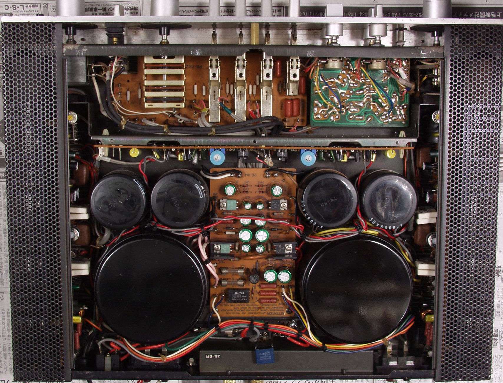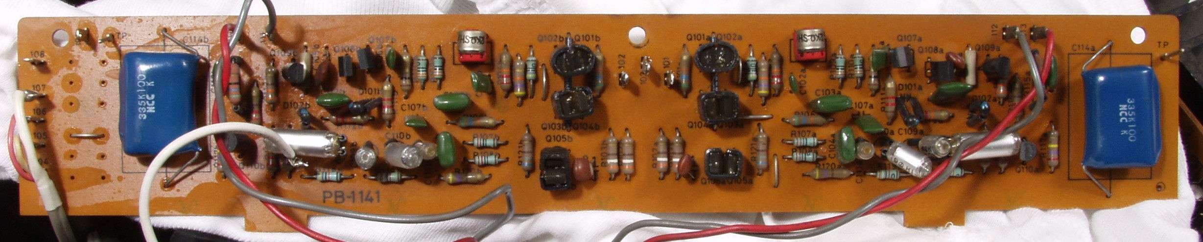 | C4B.修理後 EQ−AMP基盤 半固定VR2個、TR(トランジスタ−)12個、フイルムコンデンサー12個、FET2個交換 | ||||||||||||||||||||||||||||||||||||||