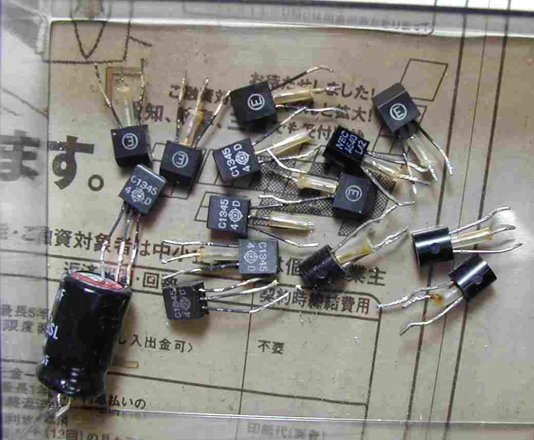 | 7.交換したTR(トランジスタ−)類、皆足が真っ黒に酸化している。 |