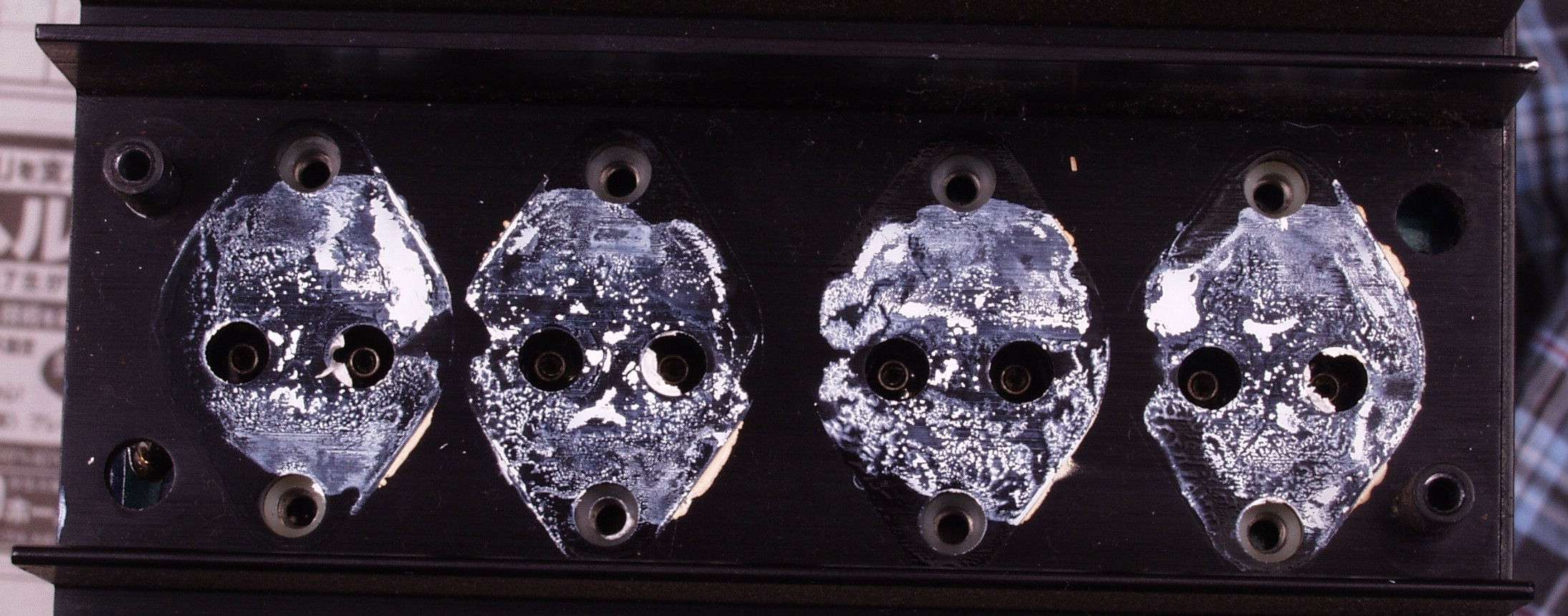 | C−1A−1. 修理中 R側終段TR(トランジスター)を外した所、シリコングリスが少ない | ||||||||||||||||||||||||||||||