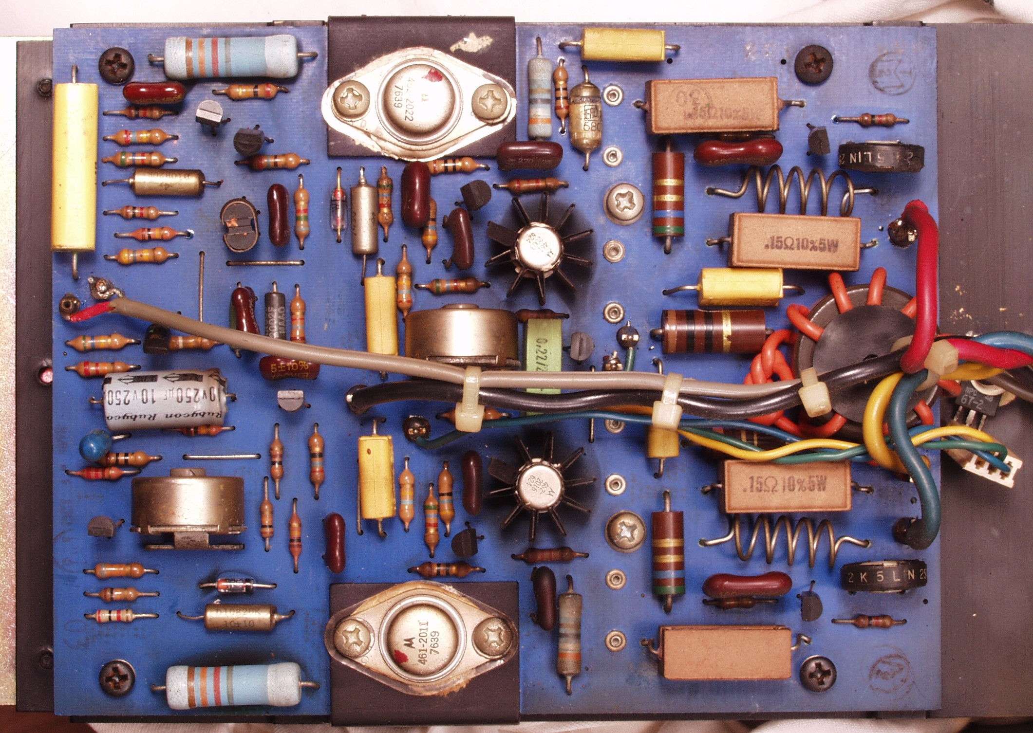 | C−1D. 修理後 R側AMP基板 TR(トランジスター)2個、電解コンンサー4個、半固定VR2個、フイルムコンデンンサー2個交換 | ||||||||||||||||||||||||||||||