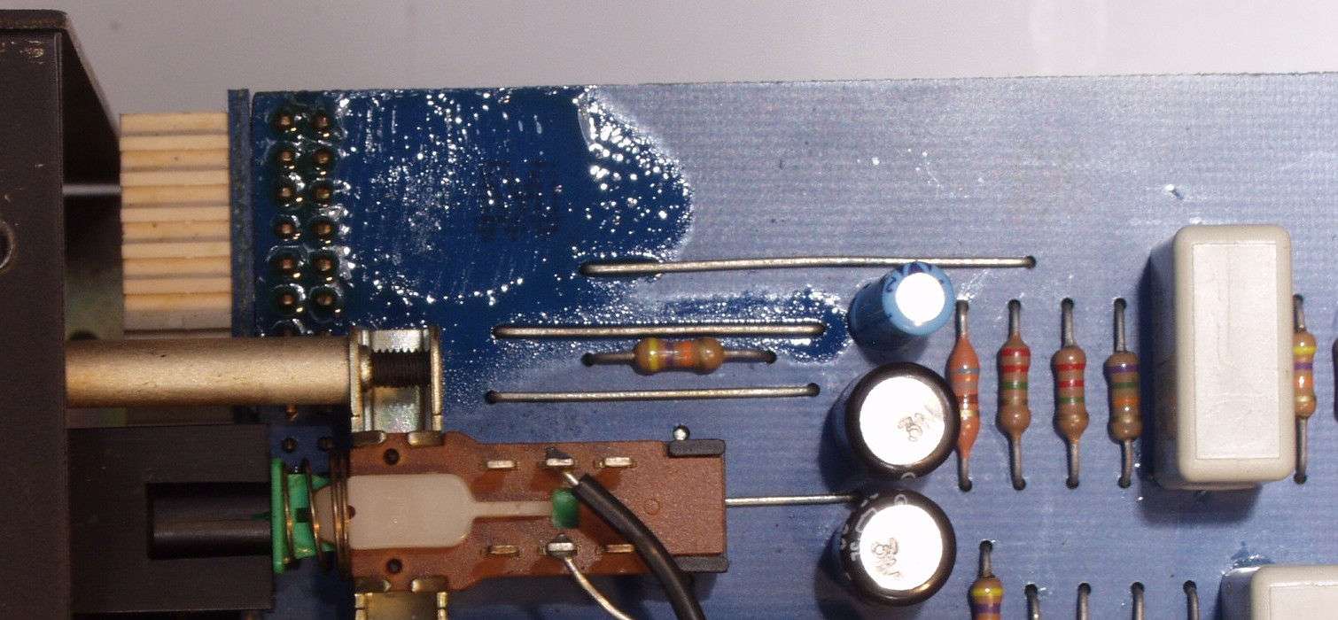| C. 修理状況 C−1A. 修理前 RCA端子基板 接点復活材が「ベットリ」と残っている |