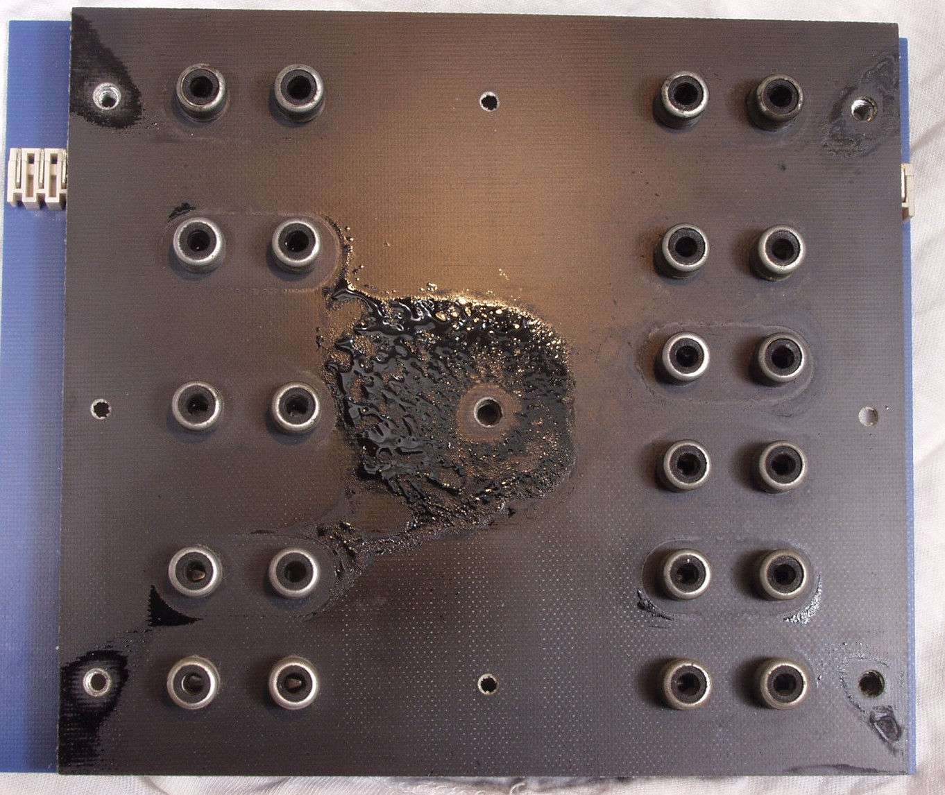 | A−2A. 修理前 基盤場に電解コンデンサーの液漏れ? | ||||||||||||||||||||||||||
