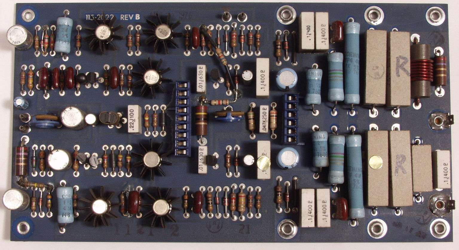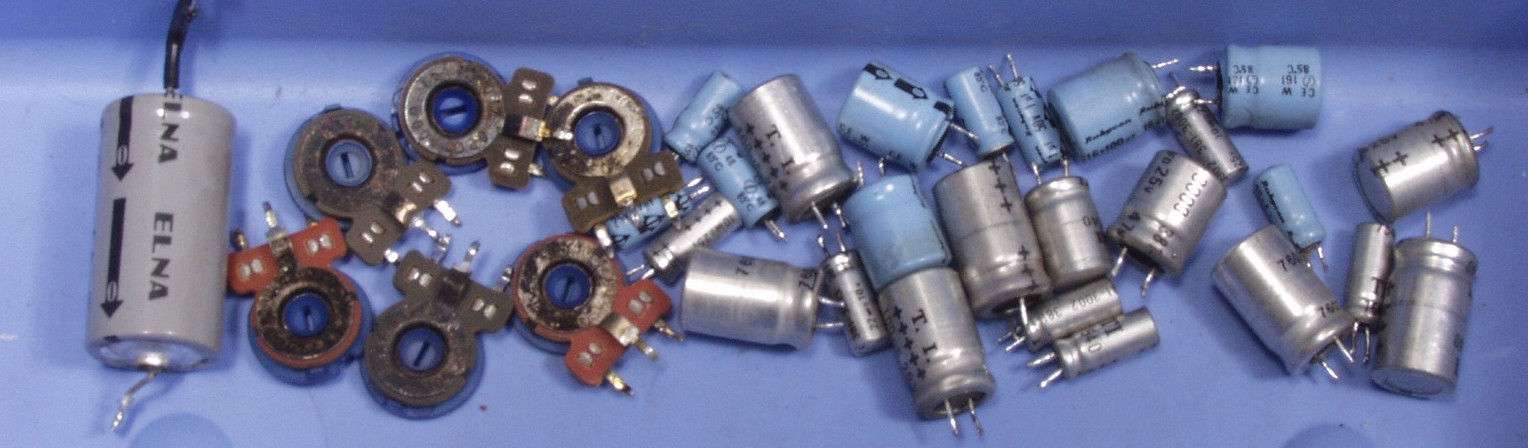 C1B. 修理後  R側終段基板  電解コンンサー10個、半固定VR2個交換