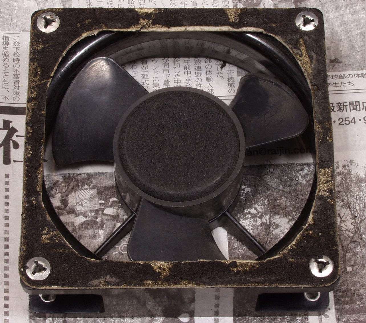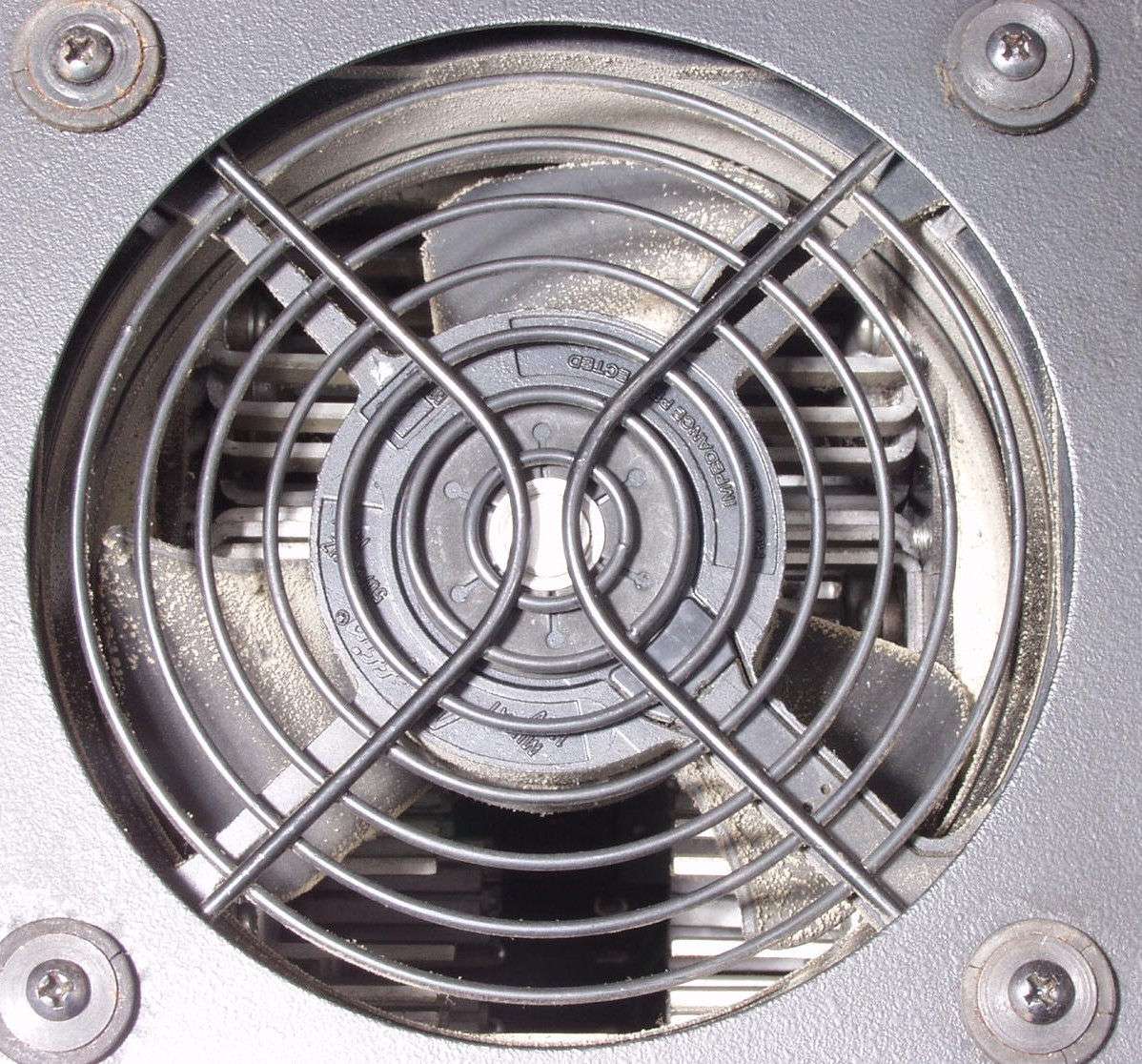 A2B. 点検中 埃でフアンの羽が覆われている、中の冷却フィンも埃が付いている